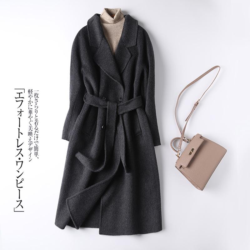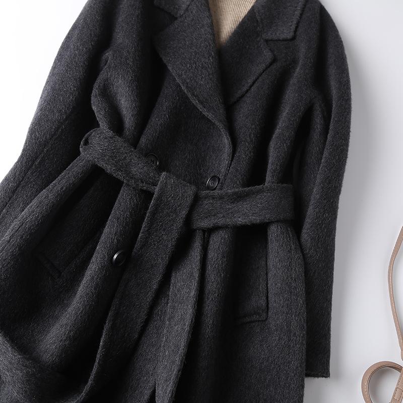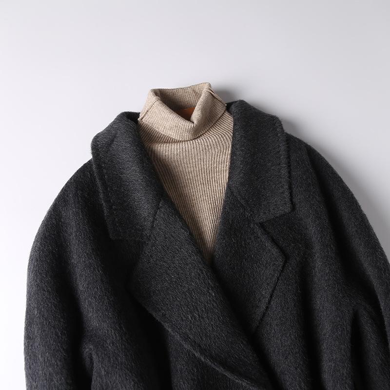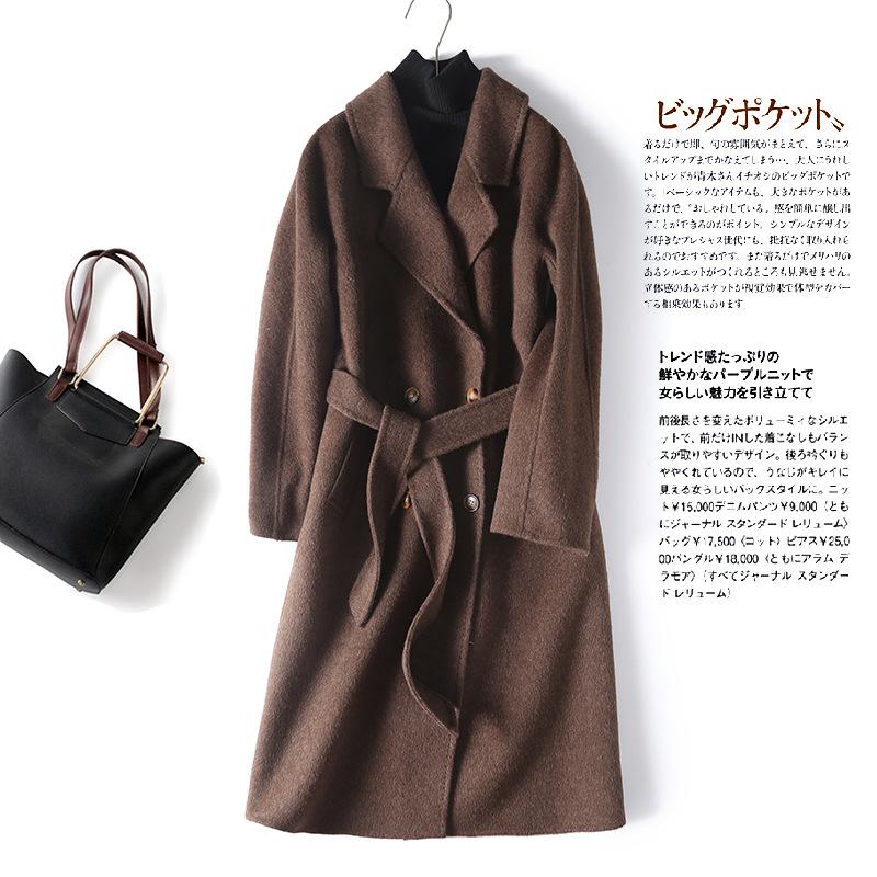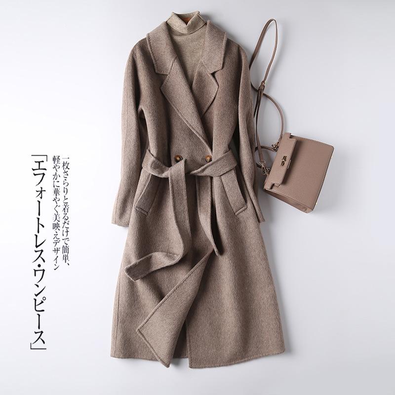 2025 Otoño e Invierno Clásico Abrigo de Lana de Doble Botonadura Largo Lana Color Café Maillard de Doble Cara Cachemira Abrigo para Mujer