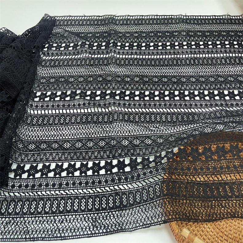Tela de encaje bordado soluble en agua, tela de encaje para vestido de moda con bordado de seda de leche, tela de encaje soluble en agua
