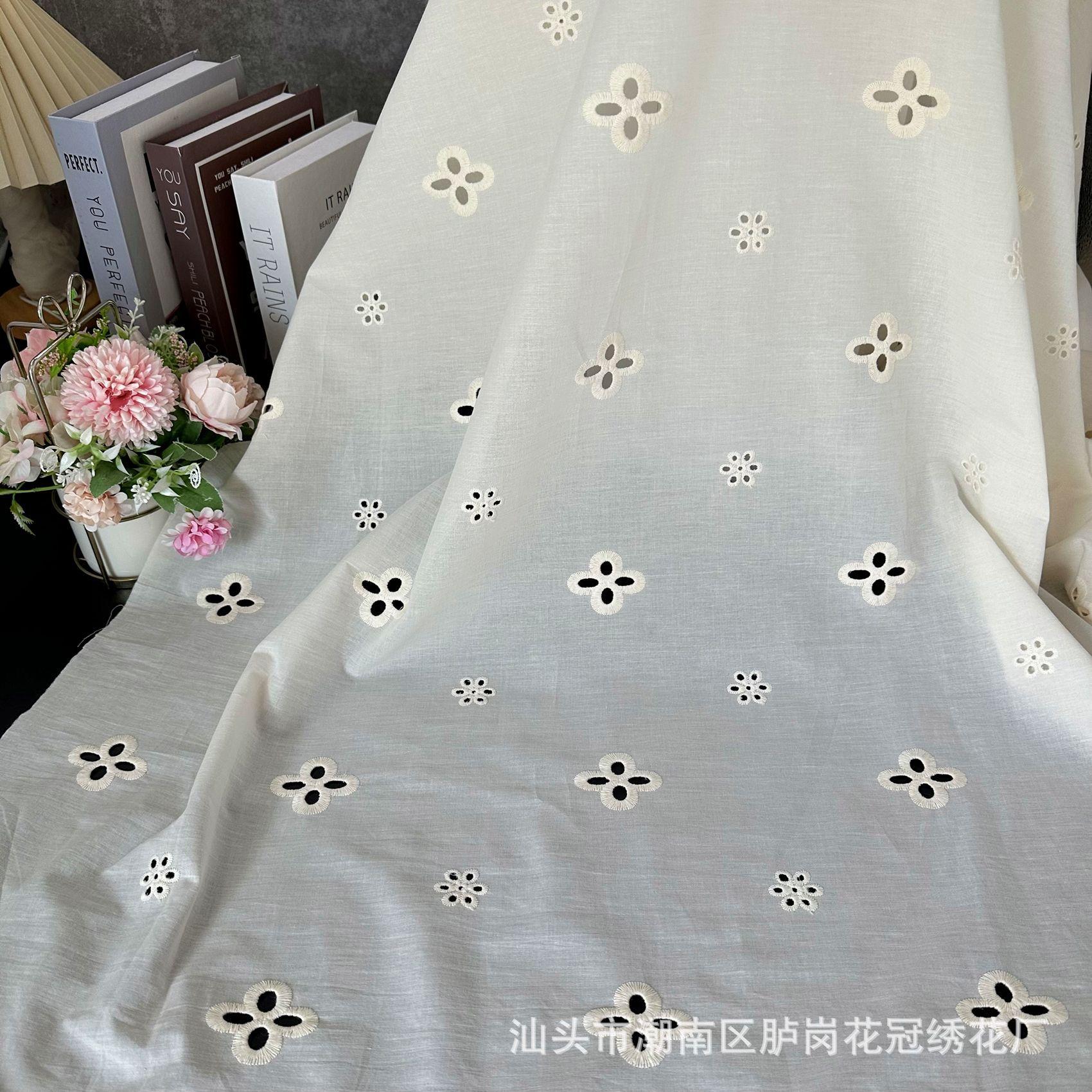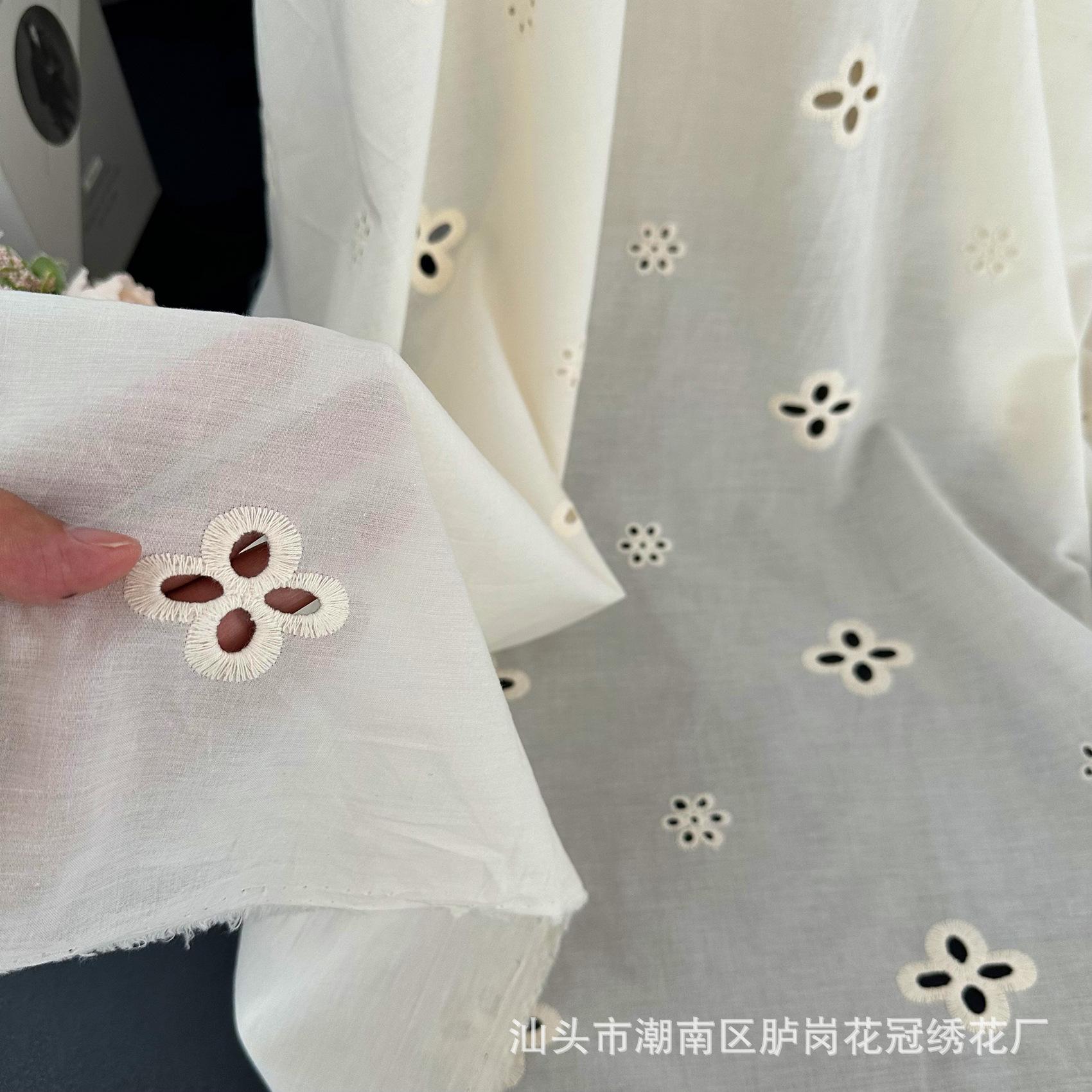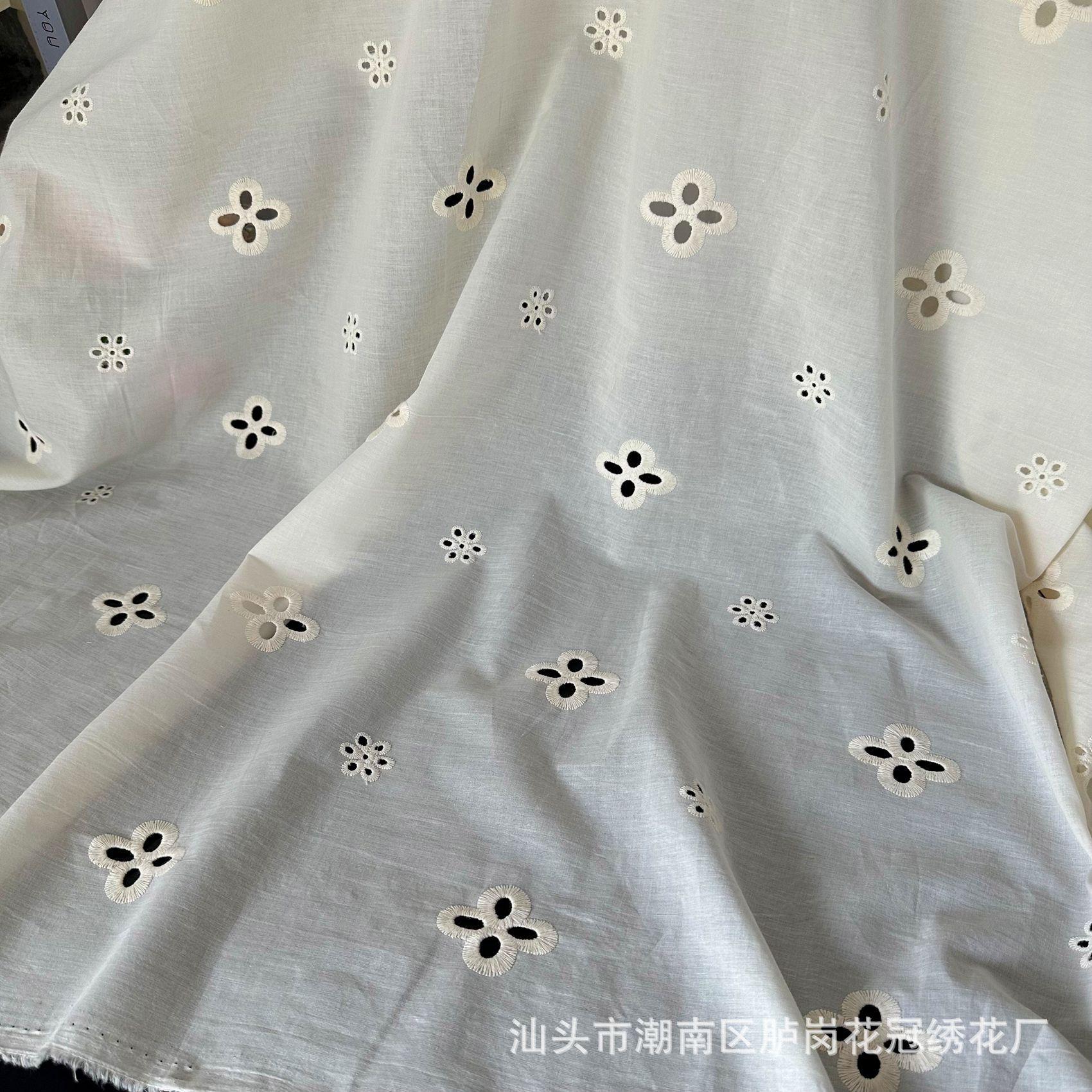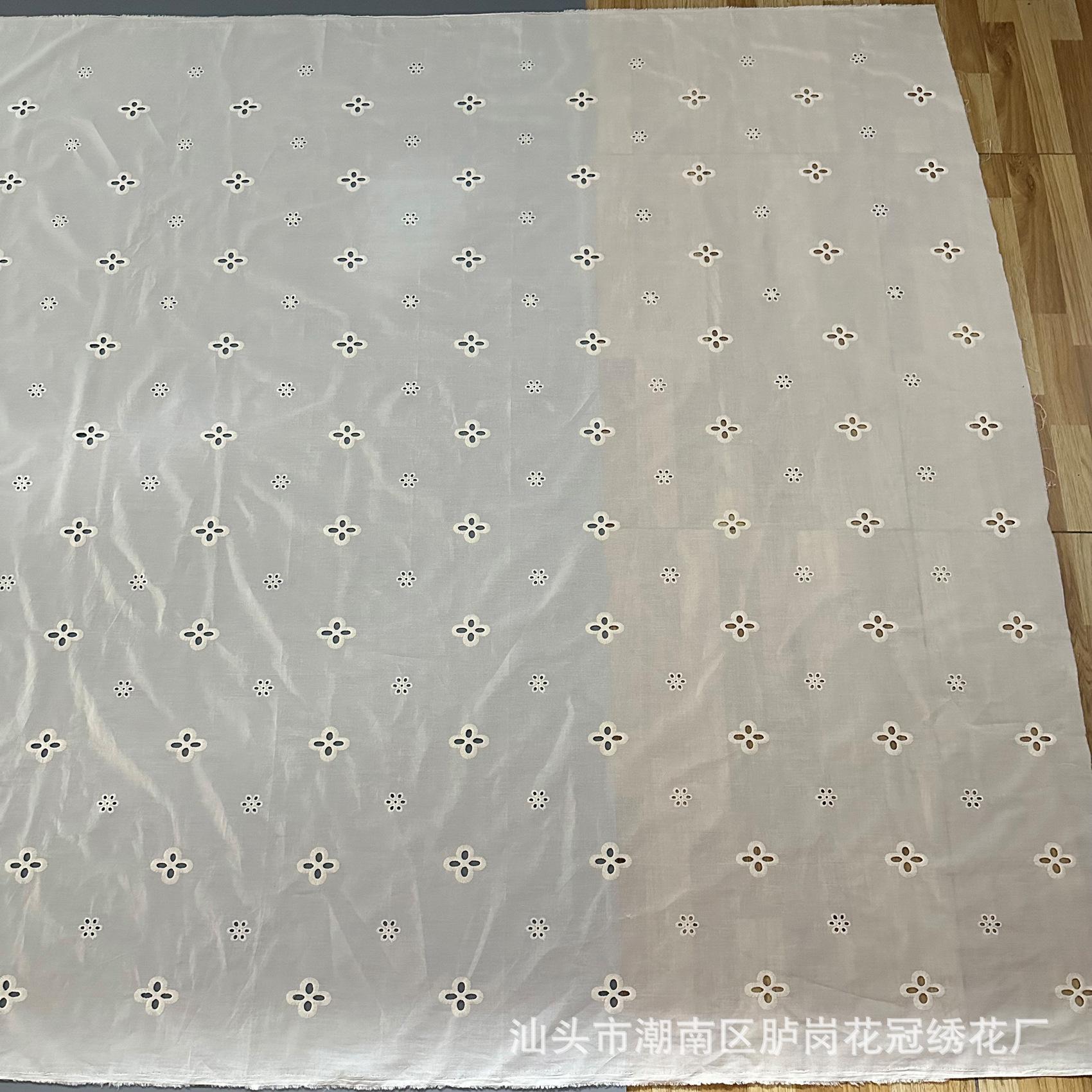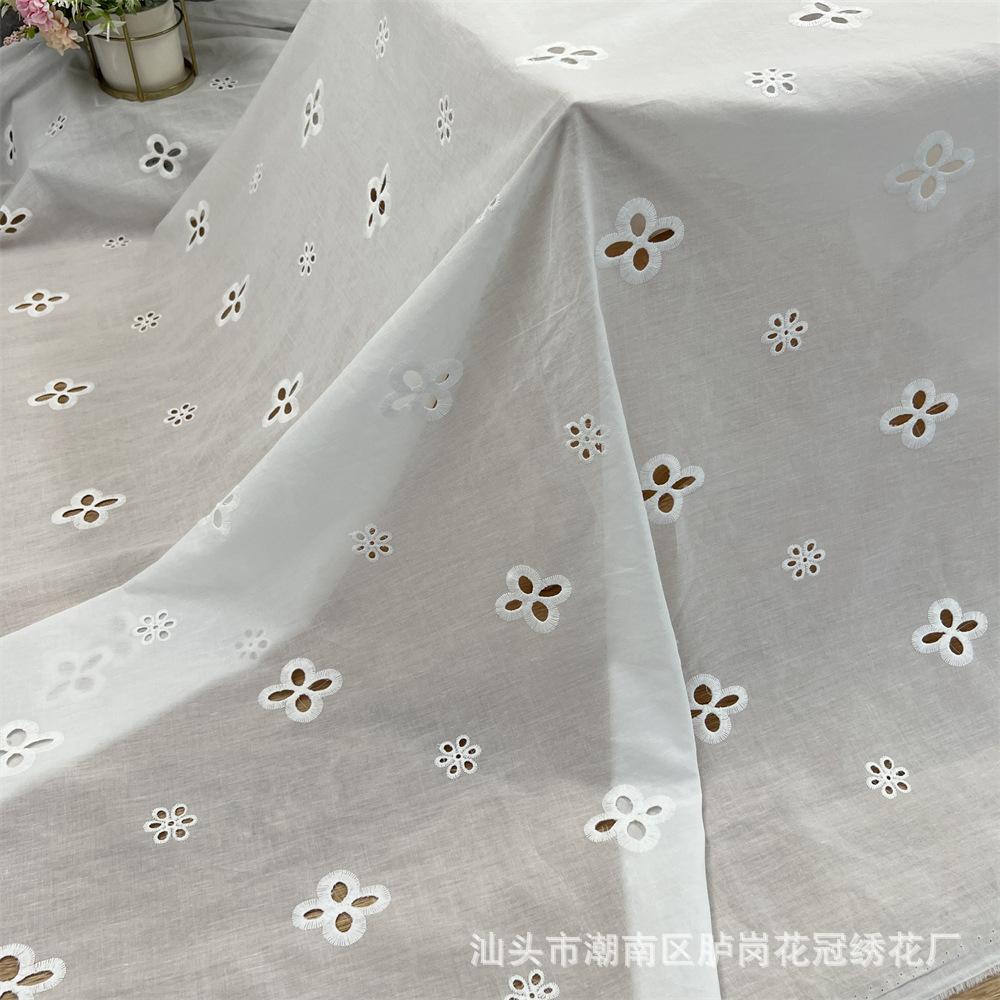 Tela de algodón de ancho completo, encaje bordado con pequeñas flores tridimensionales caladas, tela para vestidos y camisas en stock