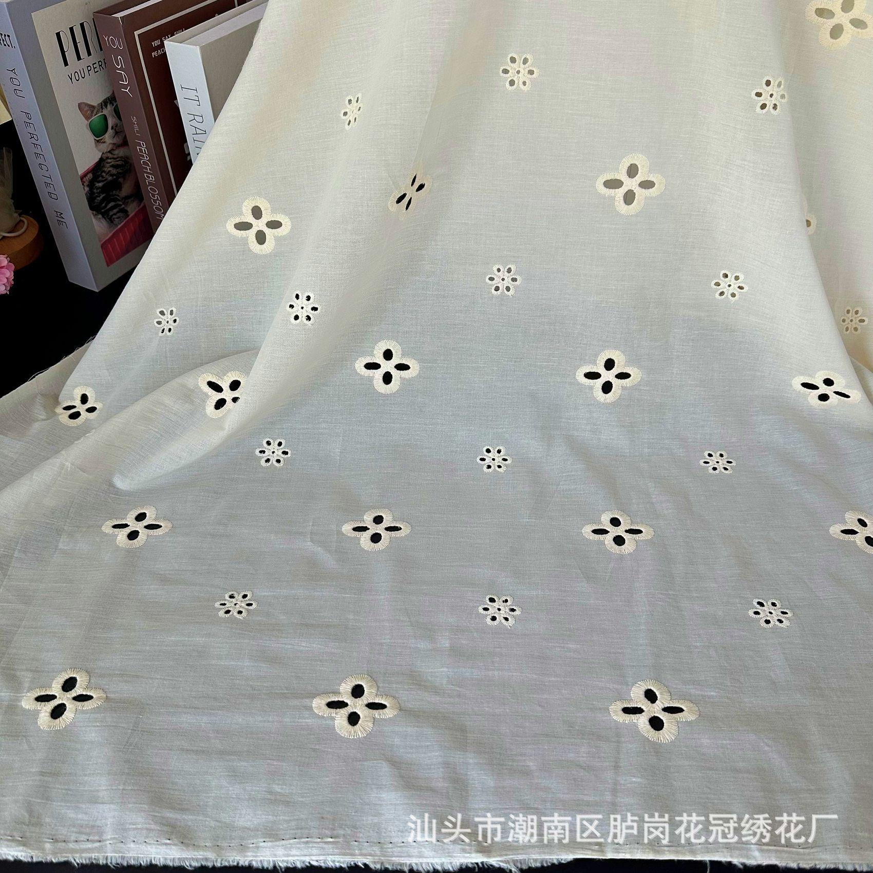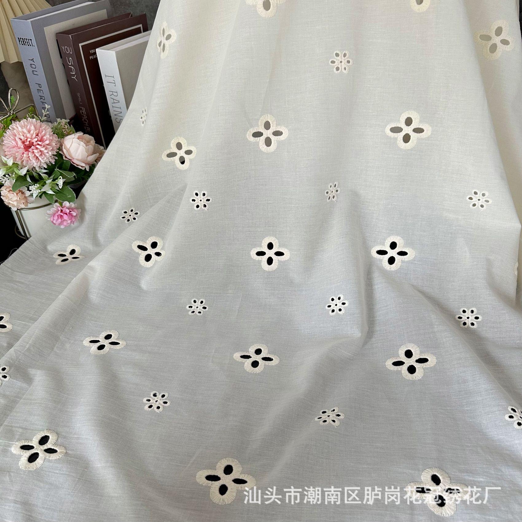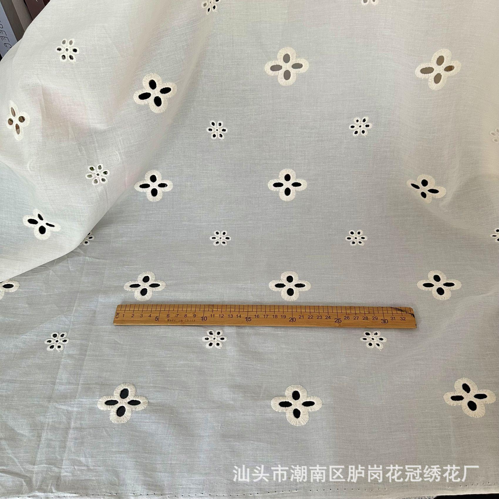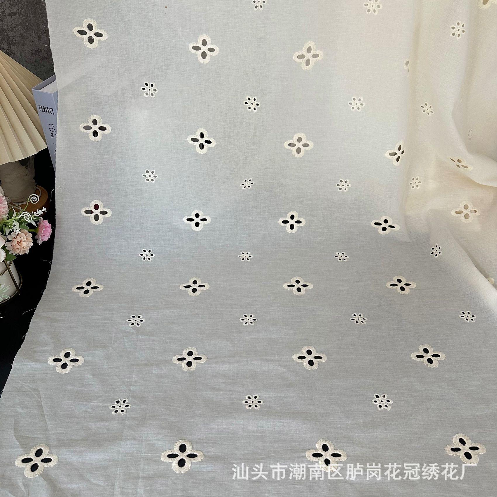 Tela de algodón de ancho completo, encaje bordado con pequeñas flores tridimensionales caladas, tela para vestidos y camisas en stock