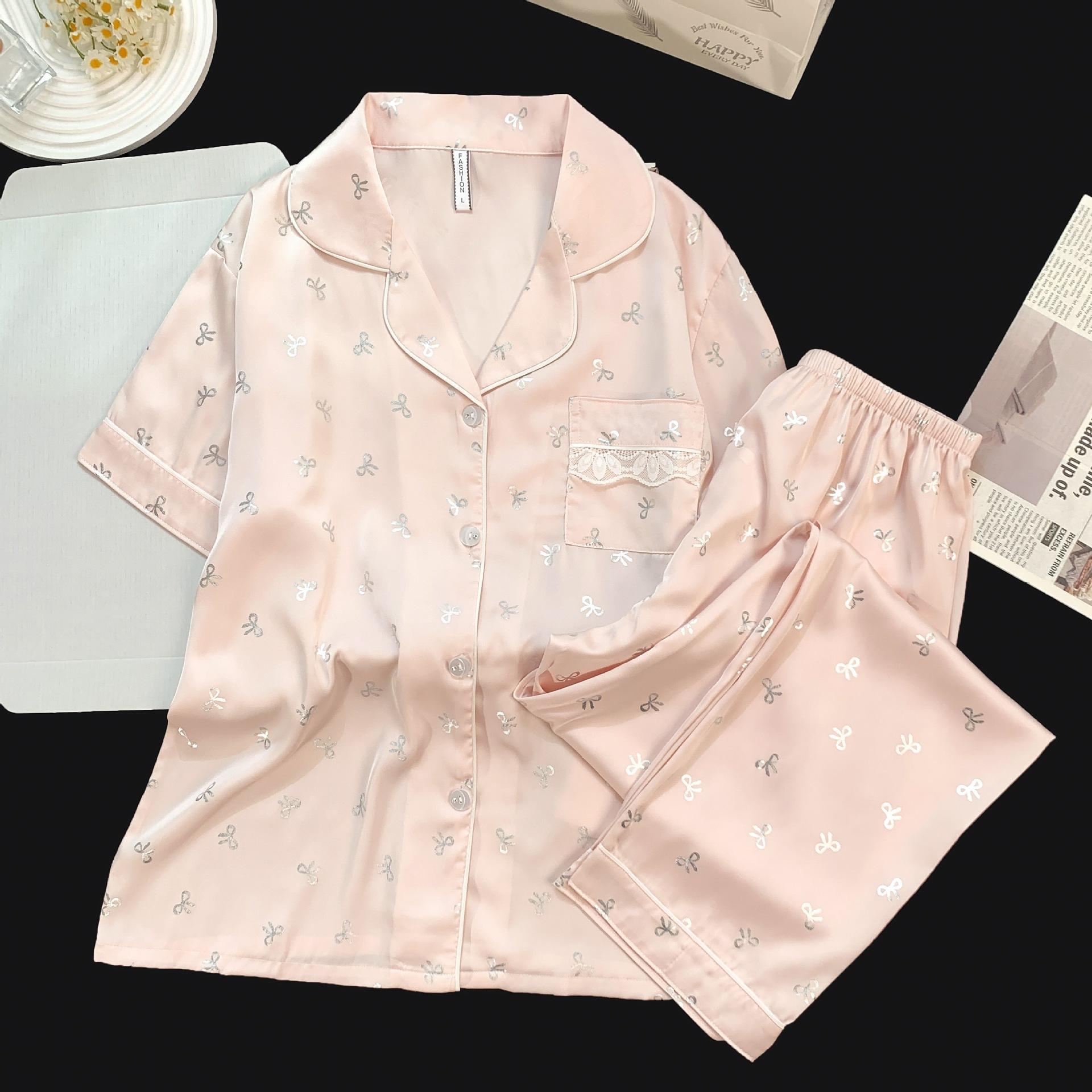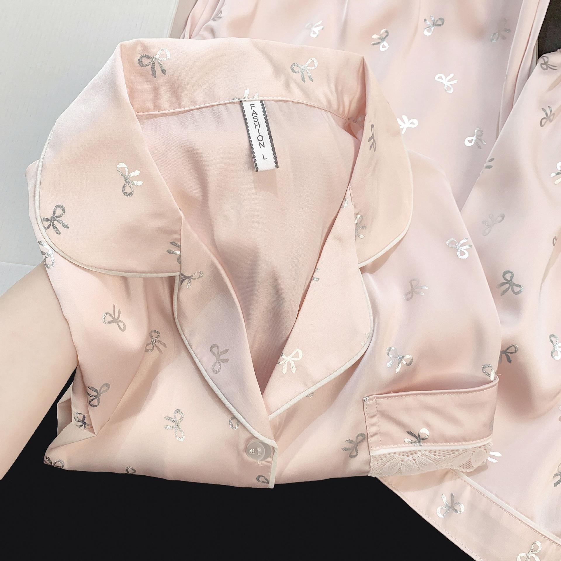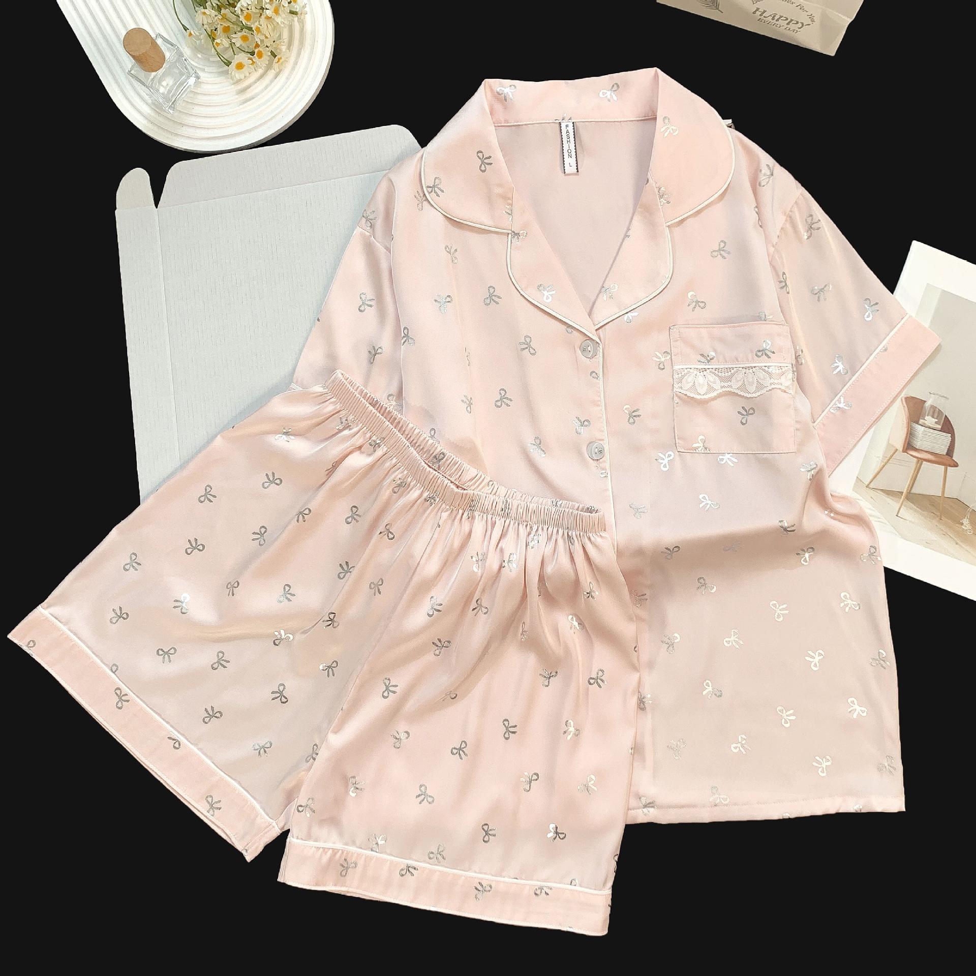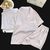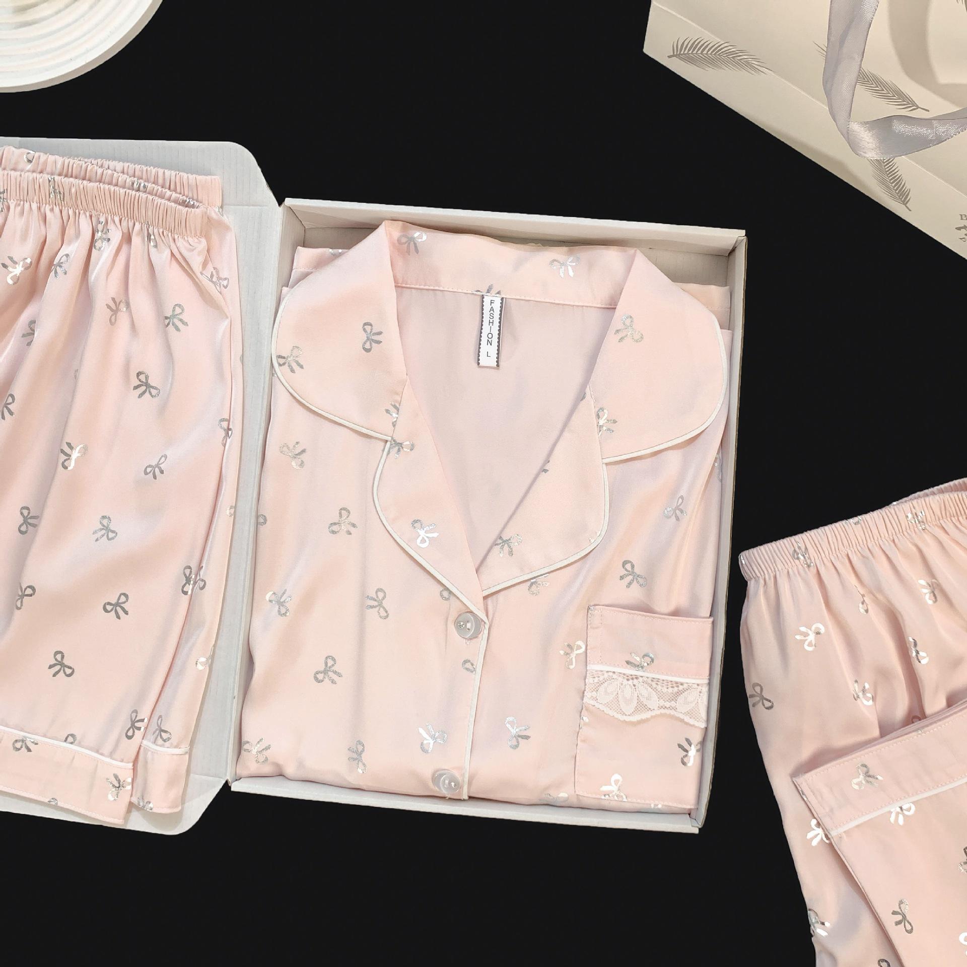 Pijama de Seda de Hielo de Verano para Mujer de Manga Corta de Tres Piezas Conjunto Delgado Estilo Verano 2025 Ropa para el Hogar de Seda de Hielo de Aroma Ligero