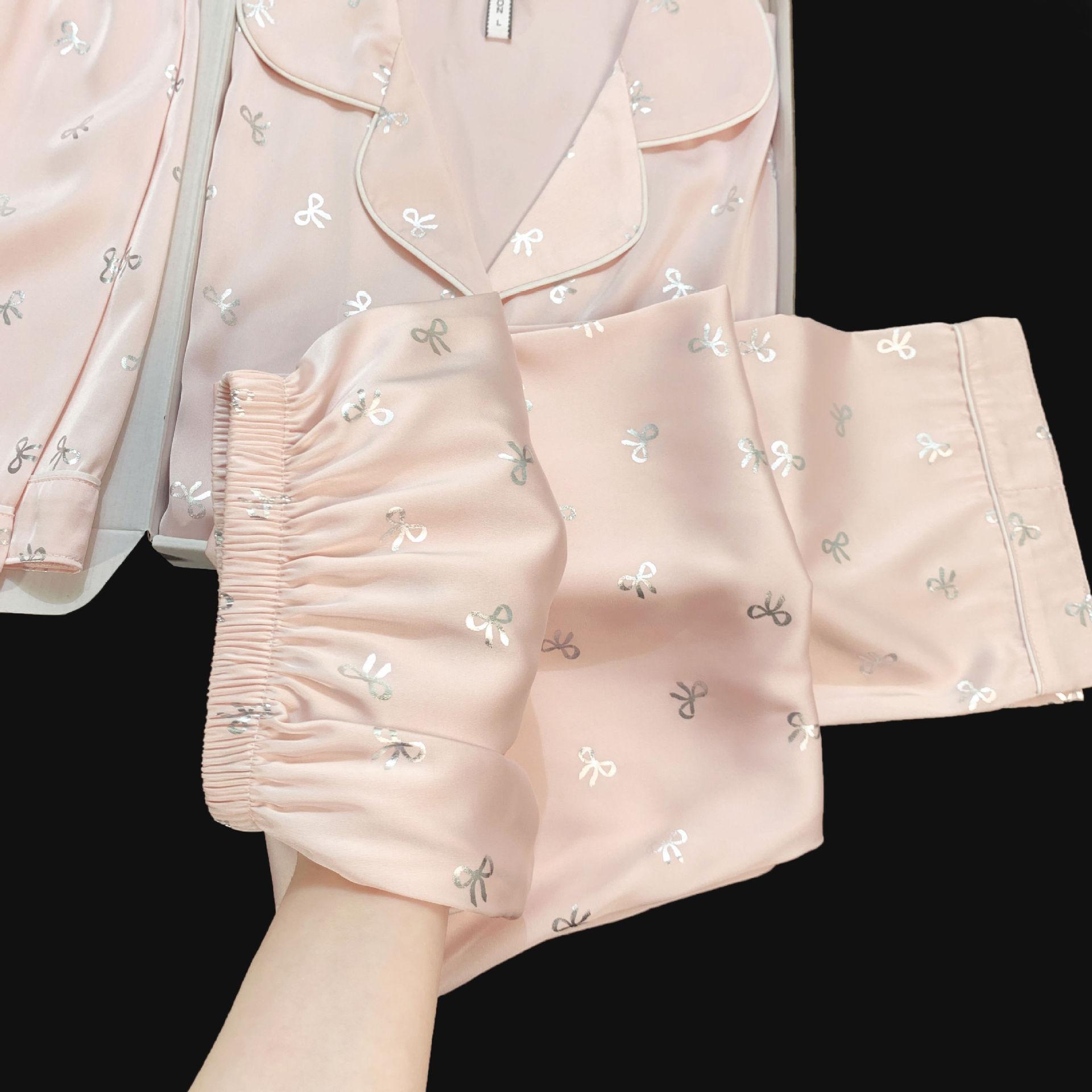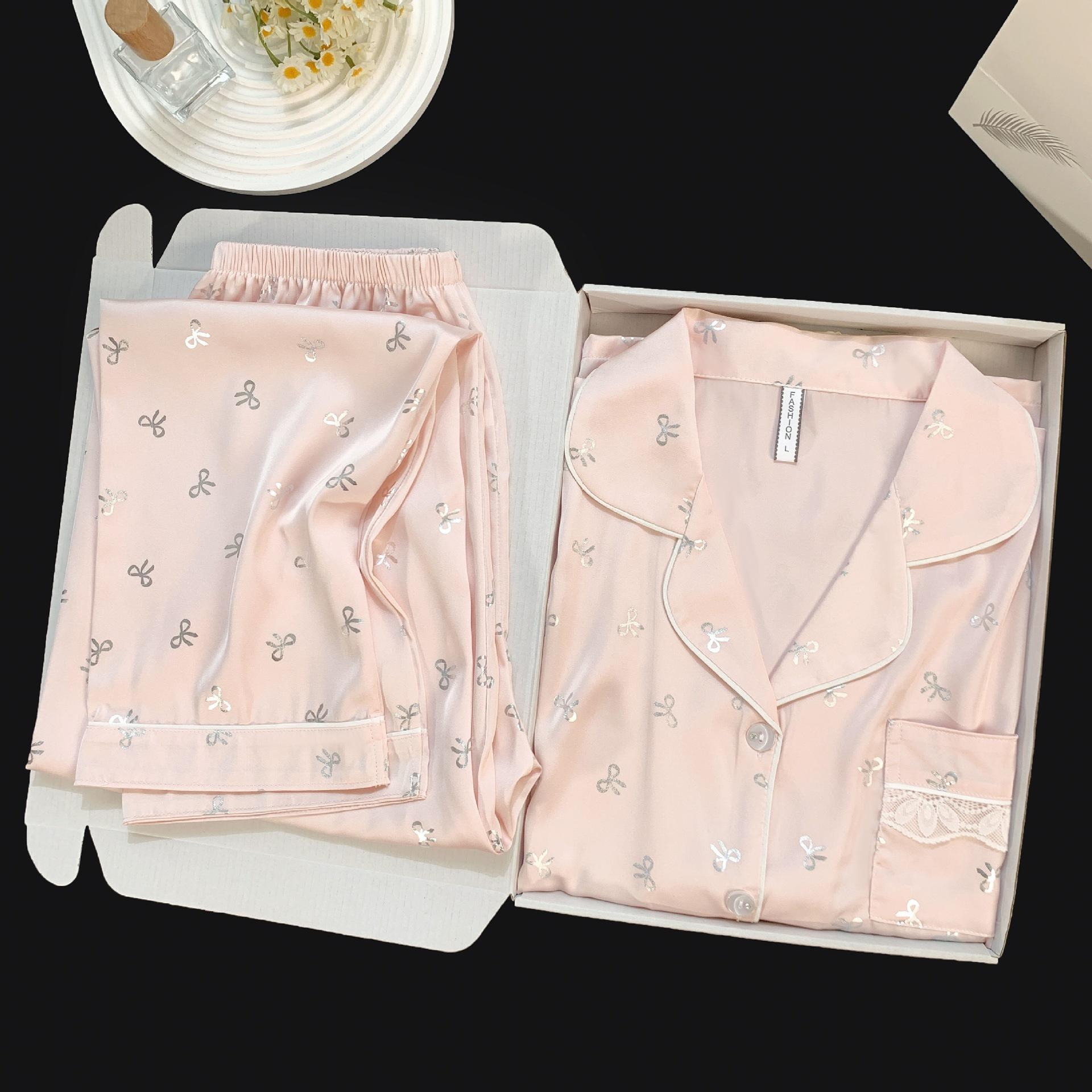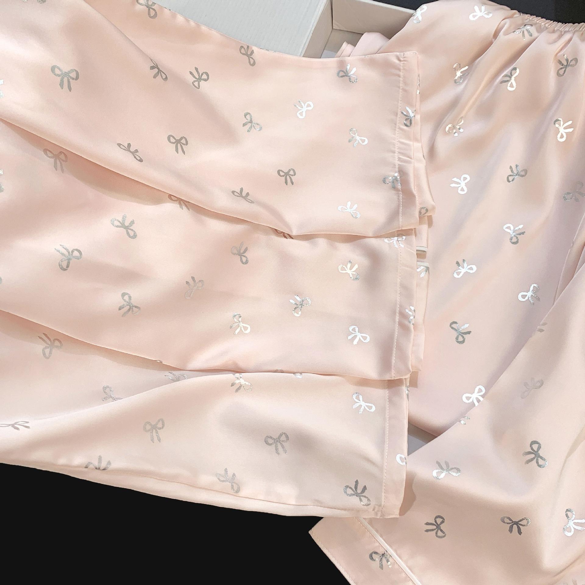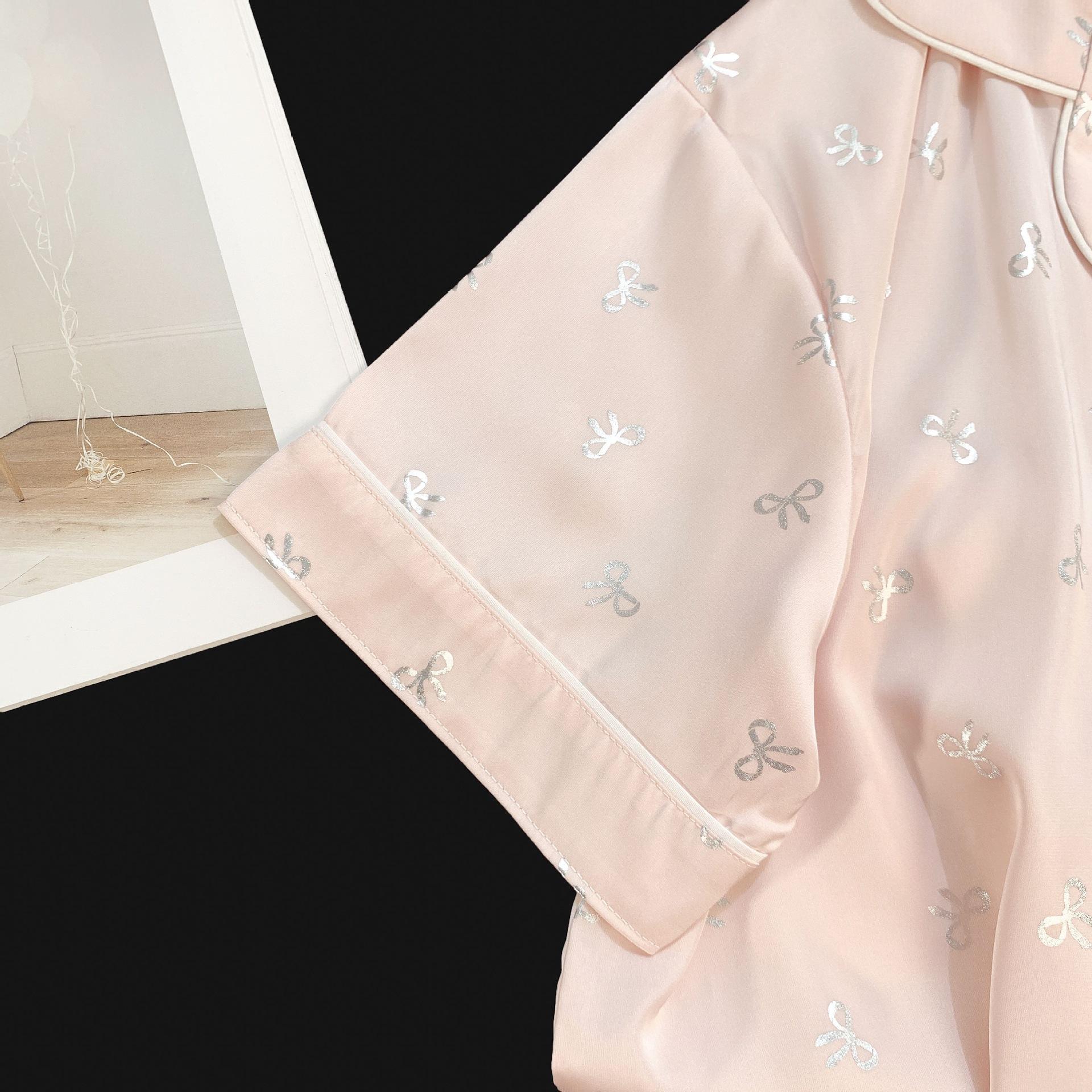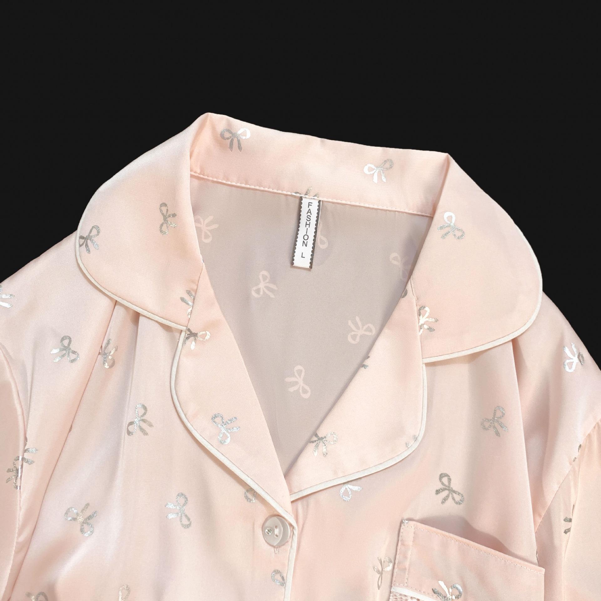 Pijama de Seda de Hielo de Verano para Mujer de Manga Corta de Tres Piezas Conjunto Delgado Estilo Verano 2025 Ropa para el Hogar de Seda de Hielo de Aroma Ligero