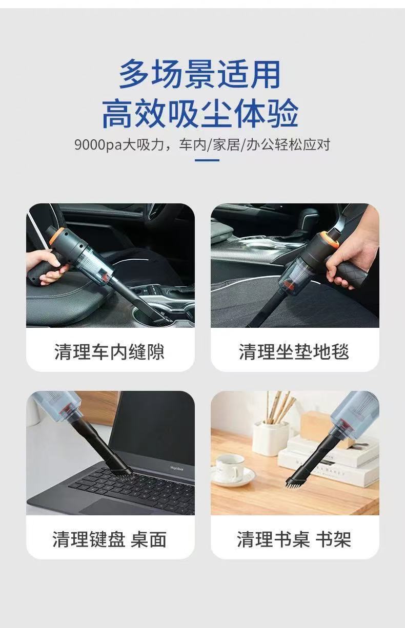 Upgraded car vacuum cleaner + data cable + brush head + long mouth straw + color box outer packaging, Blow-suc...