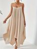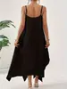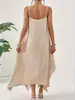 Europeo y Americano Transfronterizo Verano Nuevo Moda Color Sólido Tirantes Espalda Descubierta Irregular Sin Mangas Vestido Holgado Falda Larga