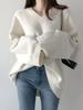 Camiseta de punto de cuello en V estilo perezoso para mujer en otoño e invierno, nuevo suéter pullover de talla grande a la moda que reduce la edad, tops para mujer