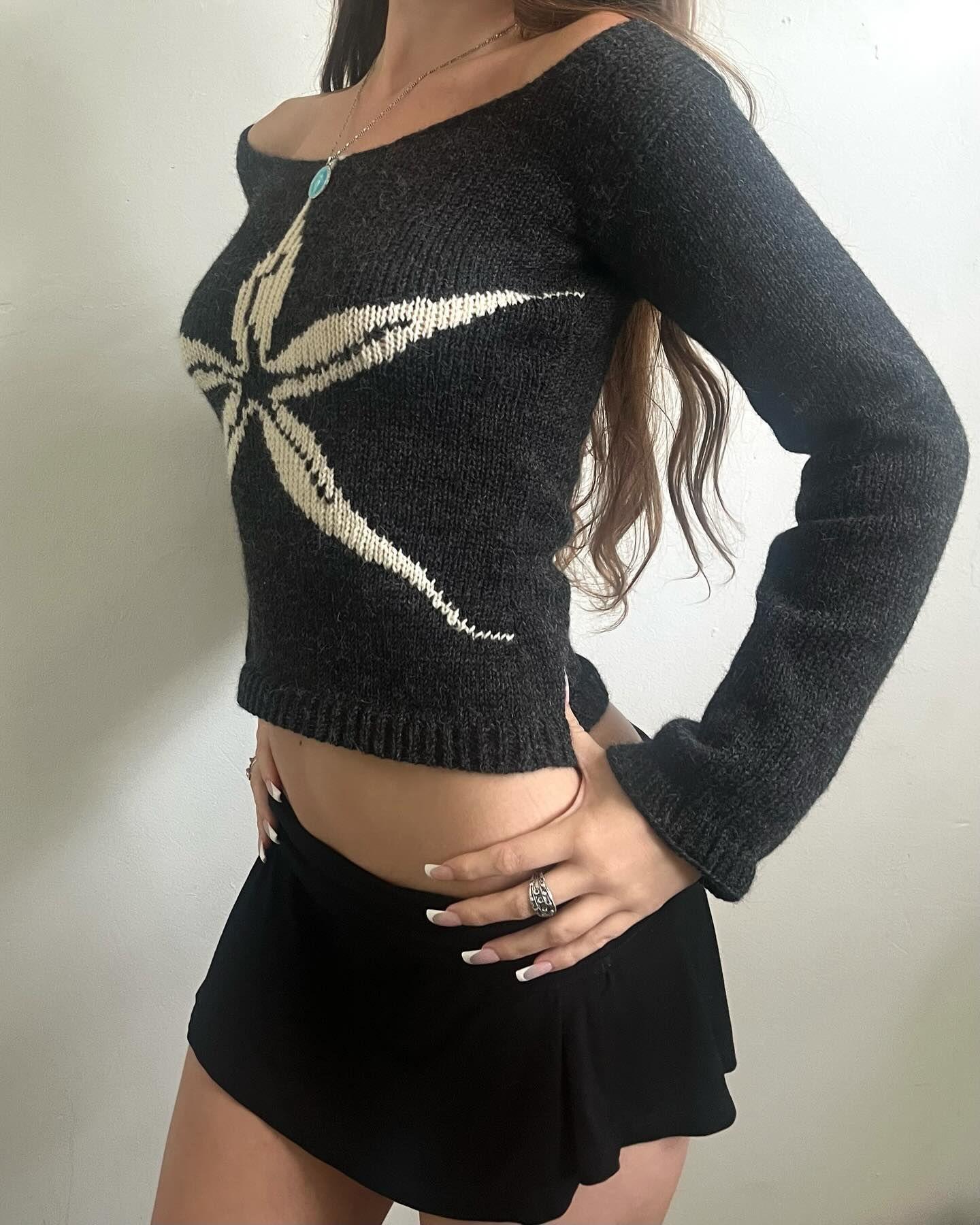 Amazon 2025 Suéter de Punto Transfronterizo Europeo y Americano Otoño/Invierno Temperamento Jacquard Manga Larga Un Hombro Ajustado Suéter al por Mayor