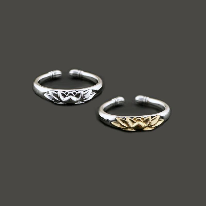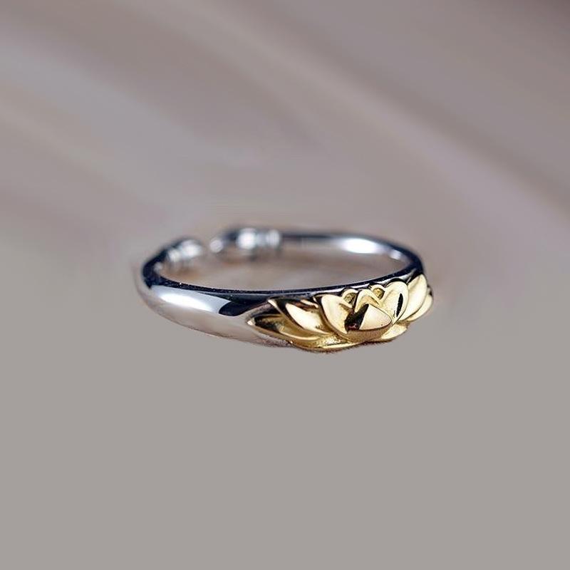 Anillo de loto creativo diseño de estilo nacional INS temperamento damas anillo de dedo abierto de loto dorado suministro de comercio electrónico