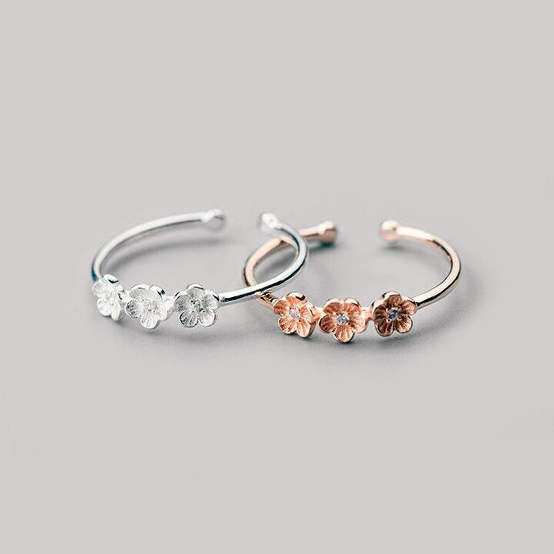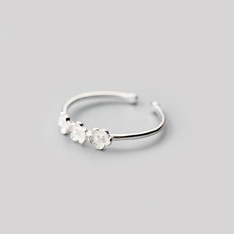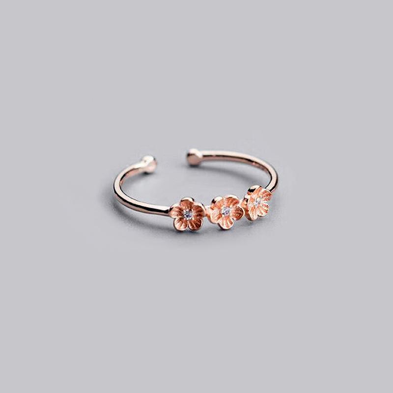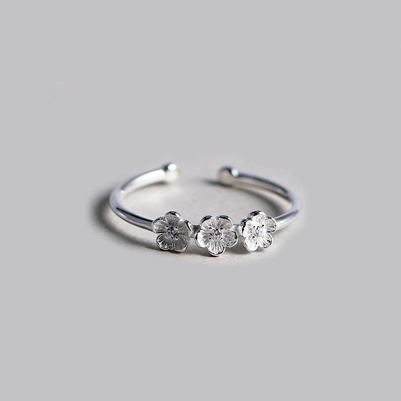 Anillo de flor abierta personalidad temperamento estudiantil Mori pequeño fresco dulce anillo de tres flores pequeñas suministro transfronterizo