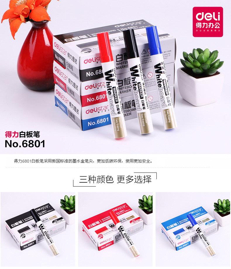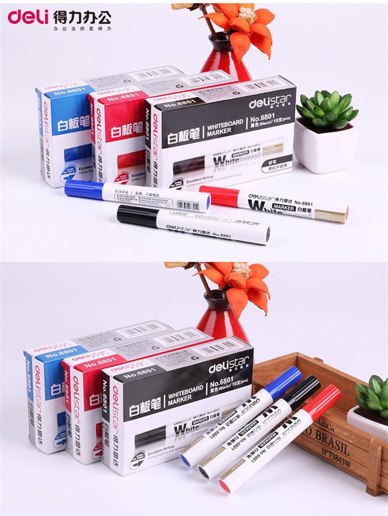 Deli Marcador para Pizarrón Blanco 6801 Borrable de Gran Capacidad Base Agua Punta Gruesa Marcador para Pizarrón 10 Piezas/Caja Marcador para Pizarrón Blanco Envío Directo
