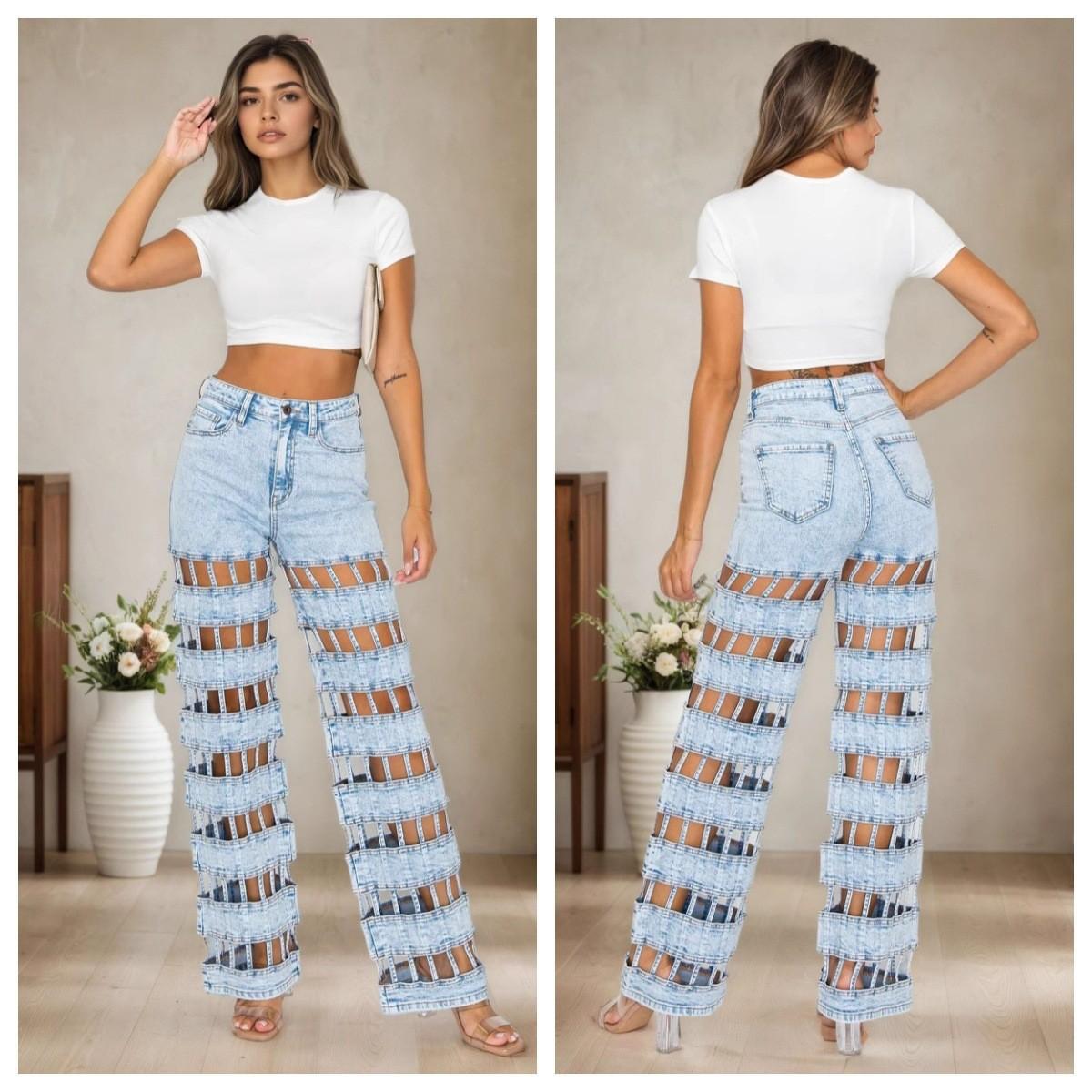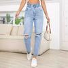 Vaqueros rotos para mujer de Europa y América, ropa transfronteriza de Amazon para mujer, nueva moda urbana, pantalones rectos de cintura alta con agujeros
