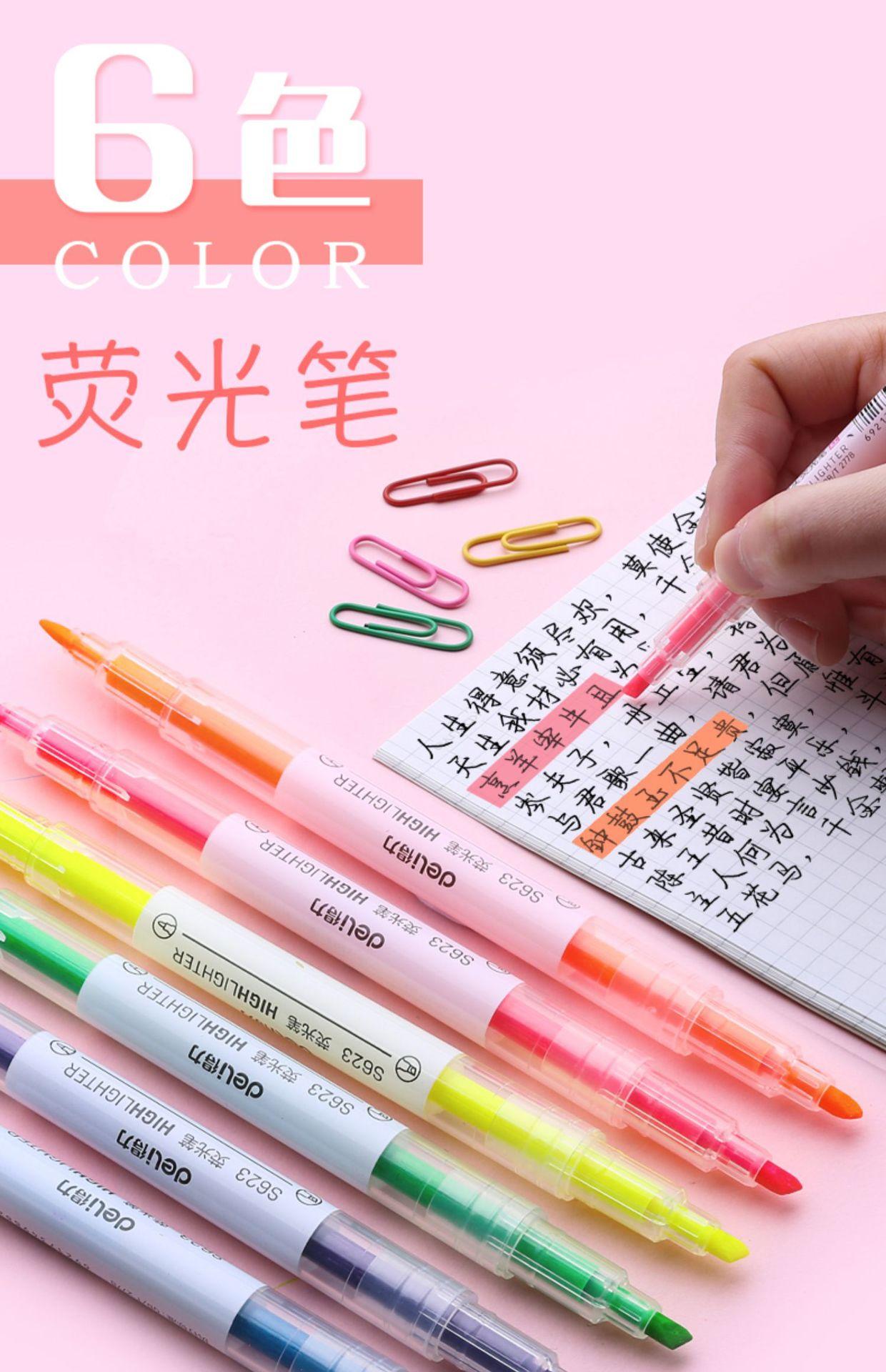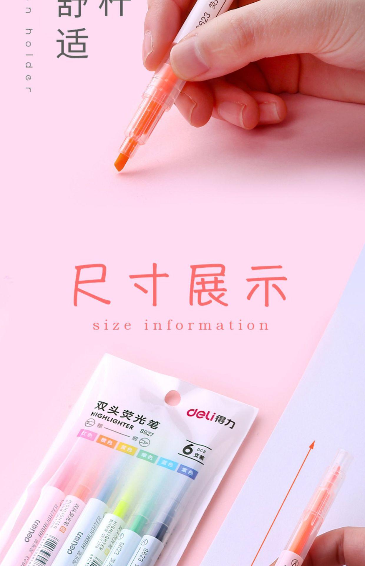 Resaltador Deli de Doble Punta S627 para Estudiantes, Paquete Mixto de 6 Colores, Marcador de Colores para Estudiantes, Dropshipping