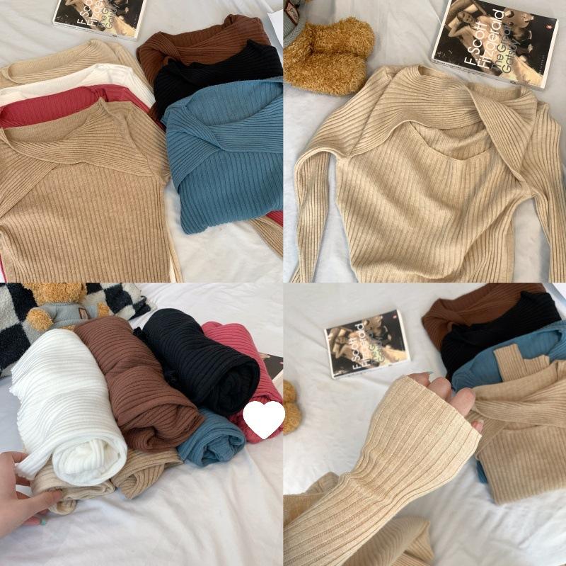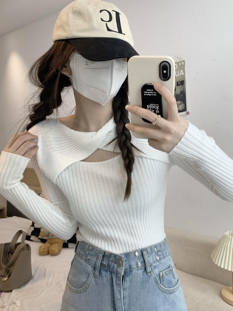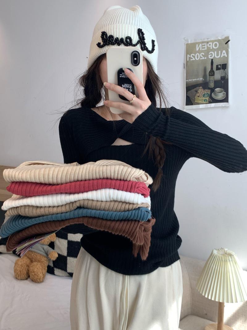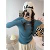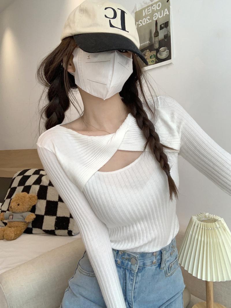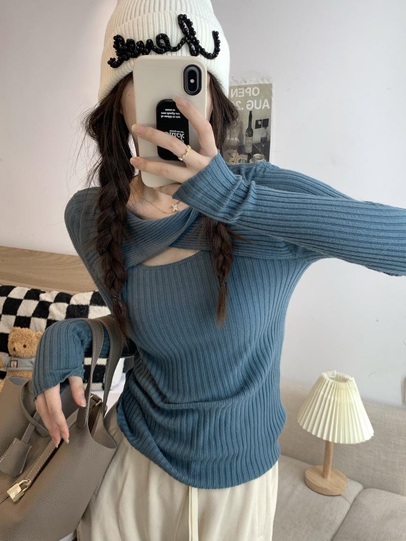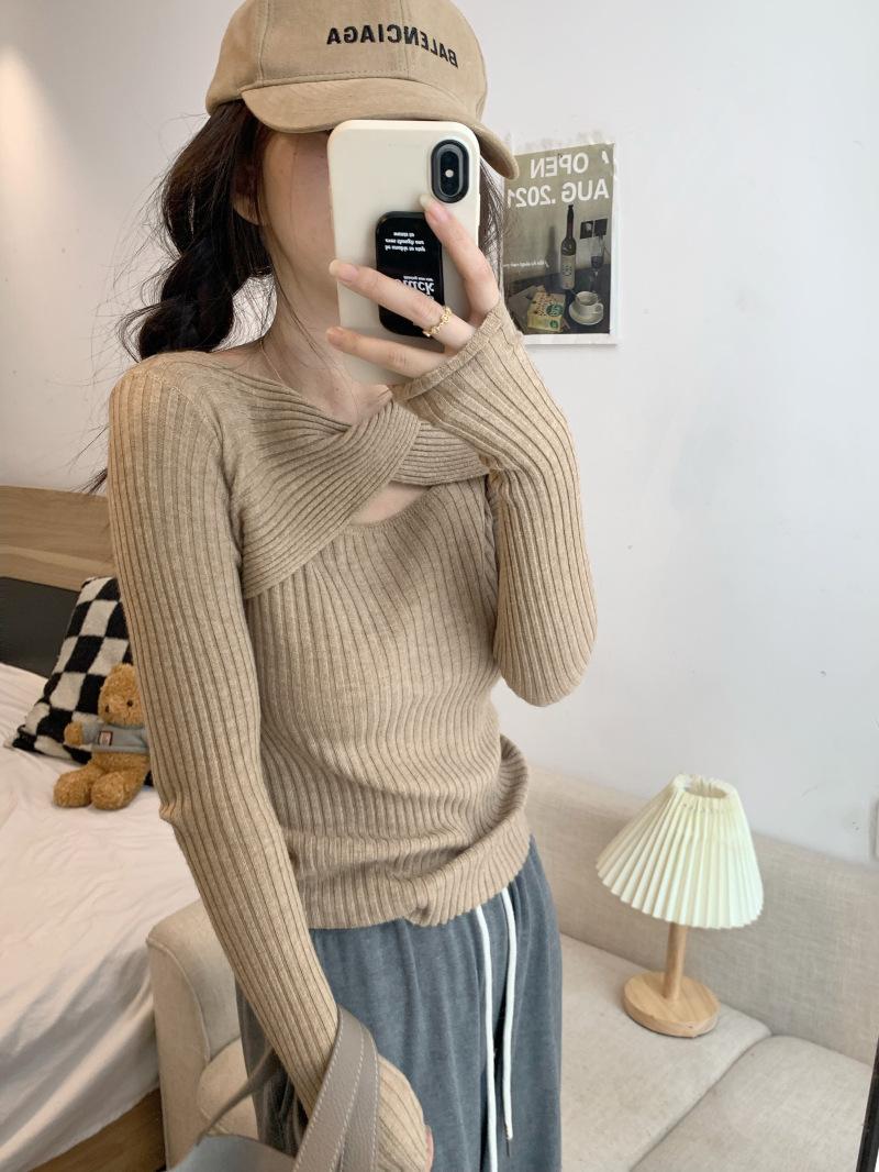 Suéter de Mujer Calado Manga Larga Tejido de Punto Otoño Invierno 2025 Nuevo Adelgazante Elástico Capa Base Interior