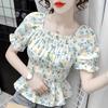 Camisa sencilla y elegante de estilo coreano con mangas abullonadas con cordones, corta, estilo francés, estilo suave, top con tirantes para mujeres pequeñas