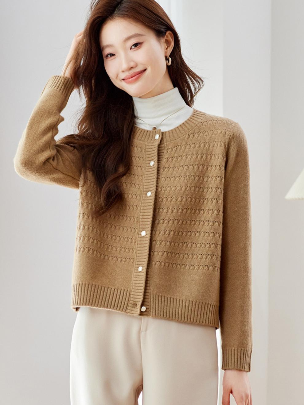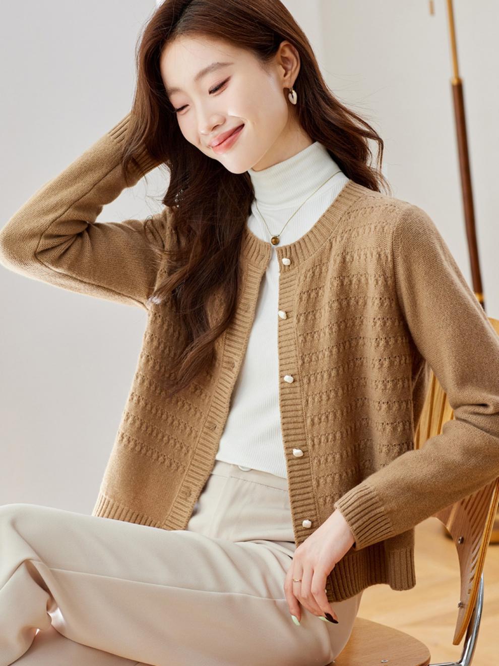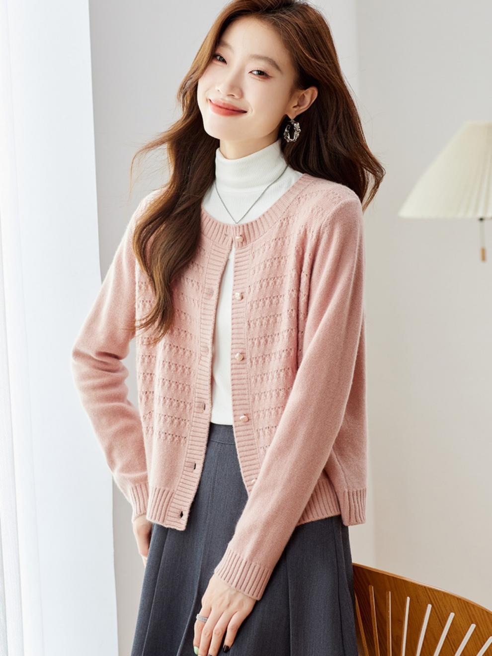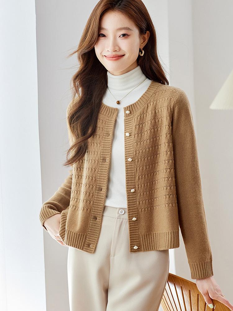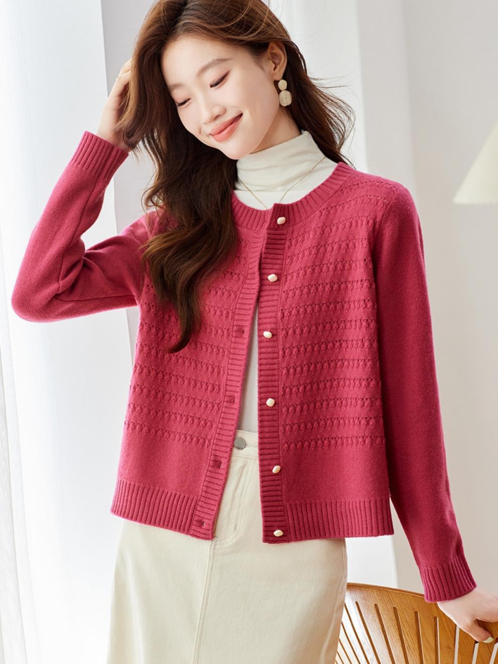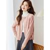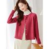 Cárdigan de Punto Jacquard de Cuello Redondo para Mujer 2025 Nuevo Primavera y Otoño Ropa Exterior Corta Color Sólido Suéter Abrigo Top Marea
