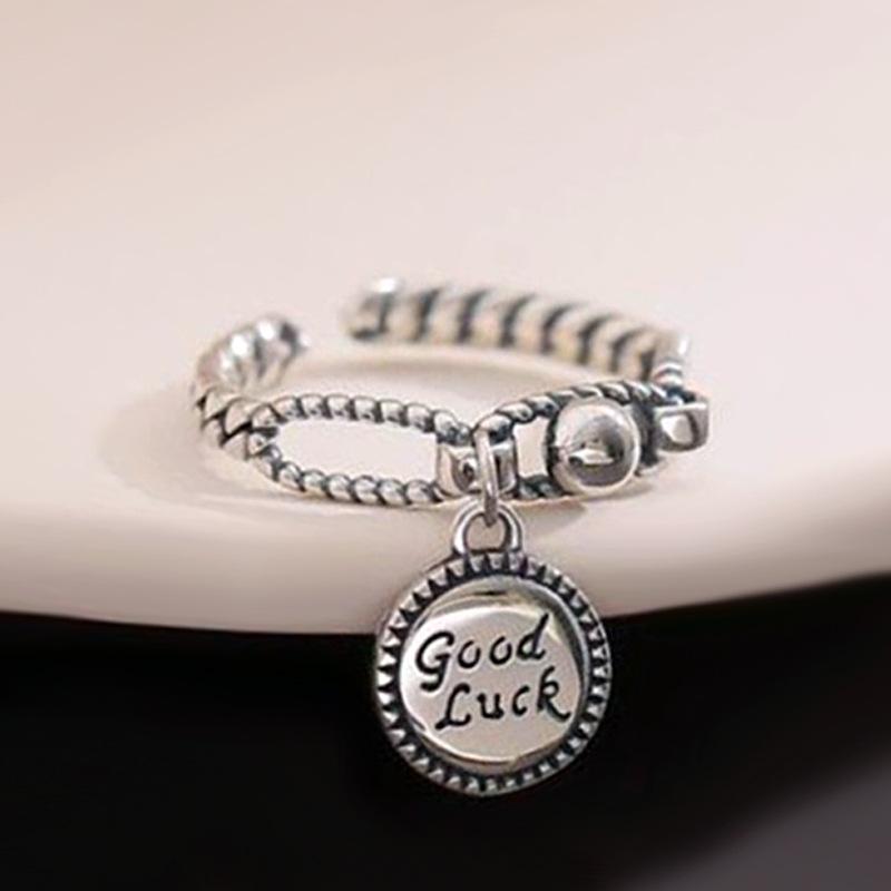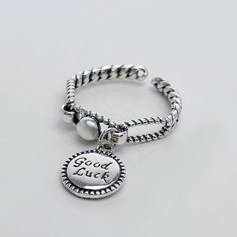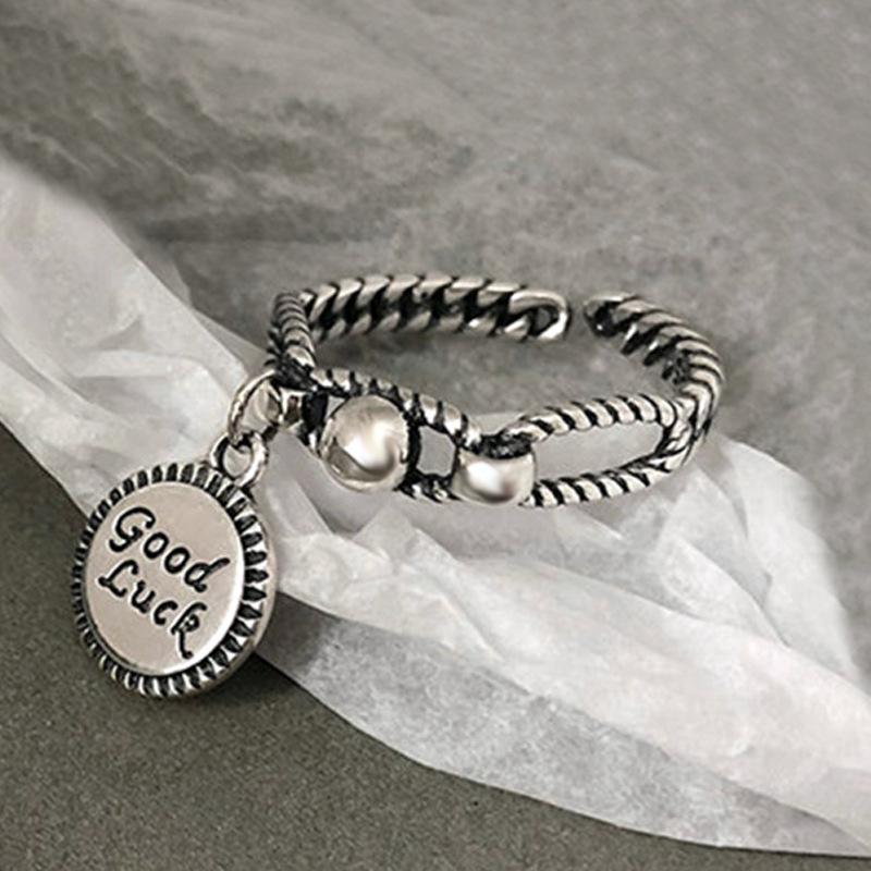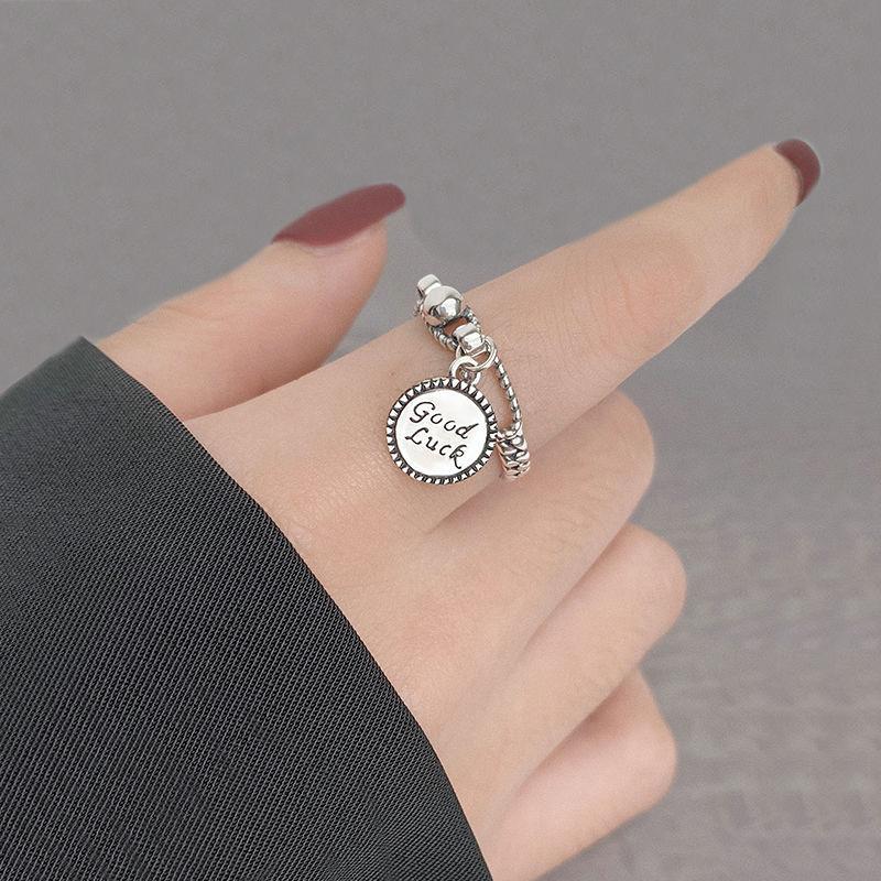 Anillo Abierto de Placa Redonda con Letra Ins Estilosa Chapado en Plata Estilo Retro Cool Popular Buena Suerte Anillo para Dedo Índice Accesorios