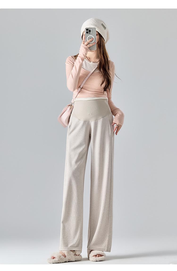 Pantalones de Maternidad 2025 Primavera Nuevo Estilo Ropa Exterior Pantalones de Pierna Ancha Soporte Abdominal Ajustable Casual Maternidad Pantalones Rectos