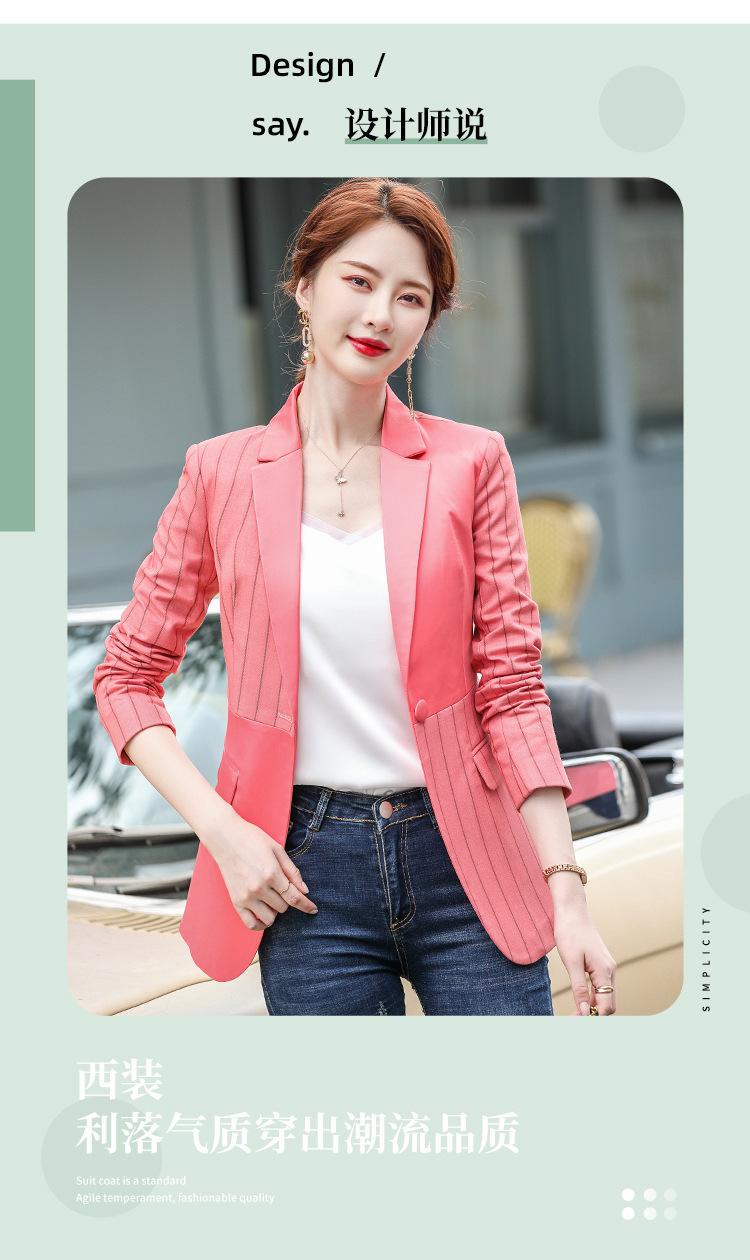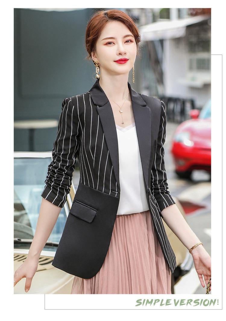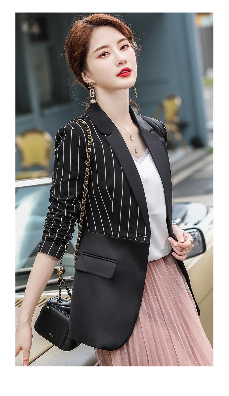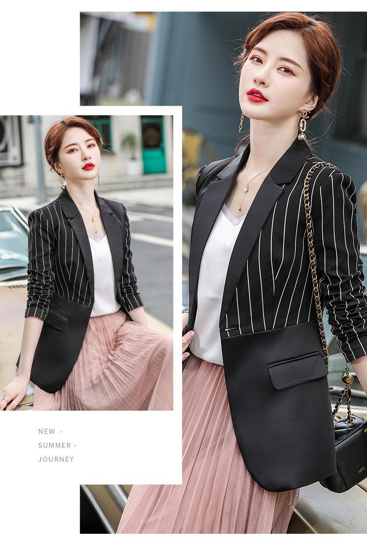 Primavera/Verano 2023 Nuevo Estilo Coreano Moda Raya Traje Pequeño Ropa de Negocios para Mujer Chaqueta de Traje de Manga Larga para Mujer Ajuste Slim