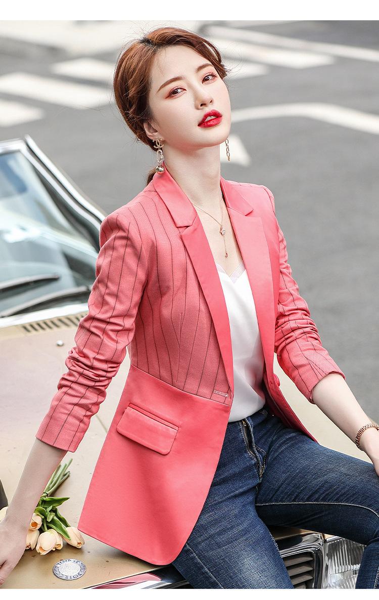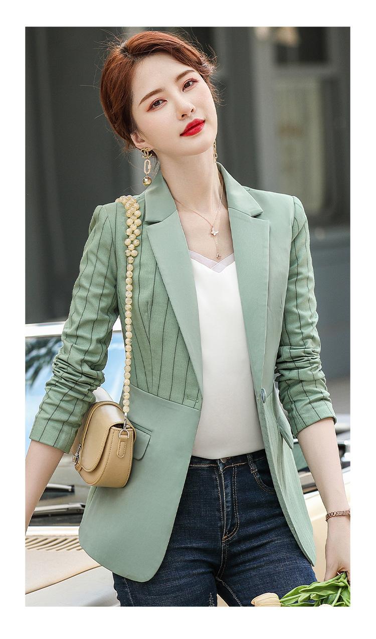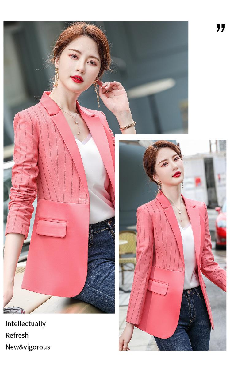 Primavera/Verano 2023 Nuevo Estilo Coreano Moda Raya Traje Pequeño Ropa de Negocios para Mujer Chaqueta de Traje de Manga Larga para Mujer Ajuste Slim