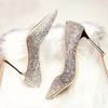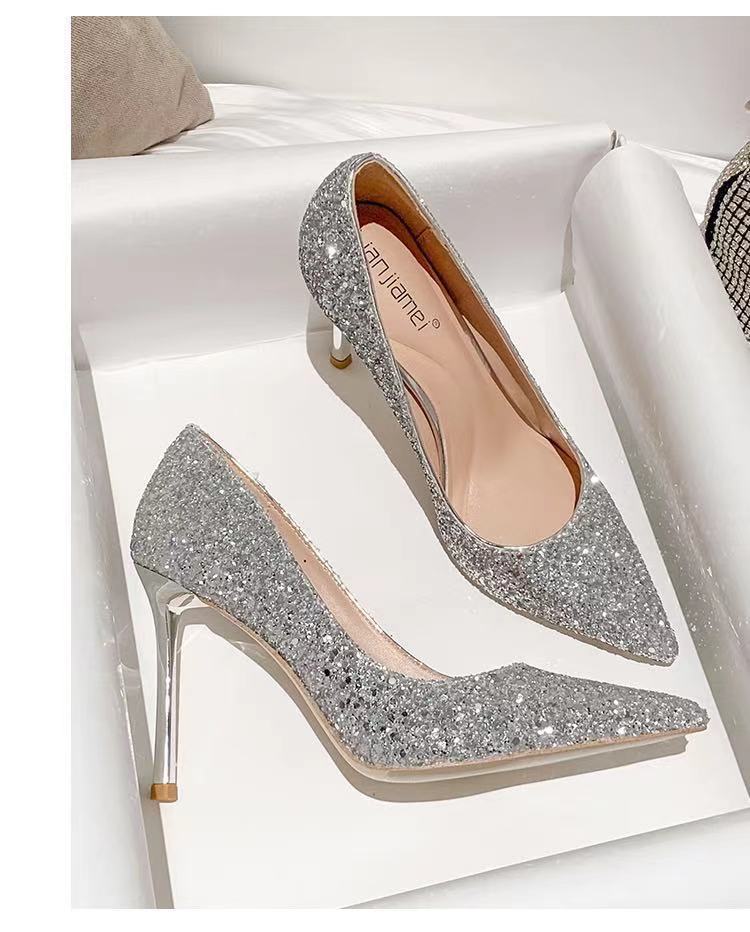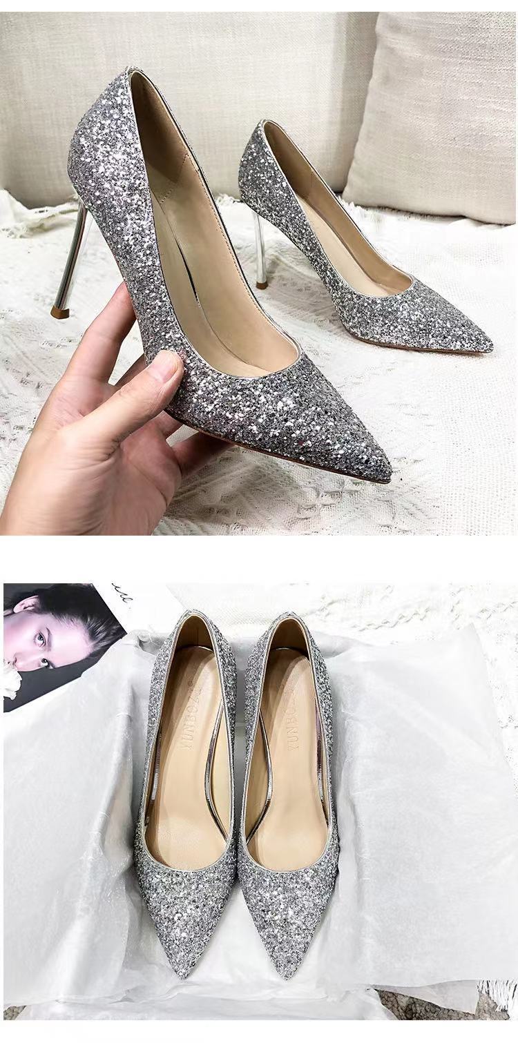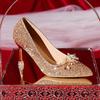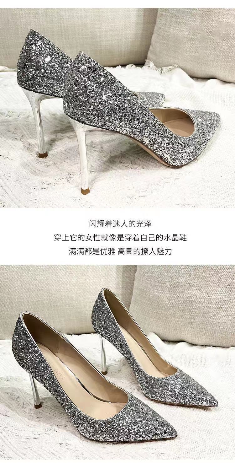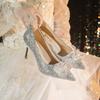 Zapatos de Boda Franceses de Cristal Plateado 2023 Nuevos Zapatos de Boda Principales para Novia No Cansan los Pies Tacones Altos de Princesa para Mujer