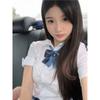 Okanada traje de uniforme jk estilo universitario escuela para el sentido de falda escocesa plisada cintura de chica caliente camisa de manga corta traje de tres piezas
