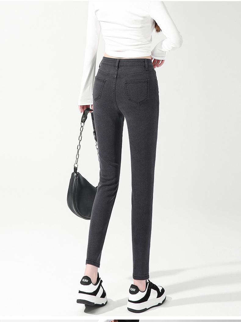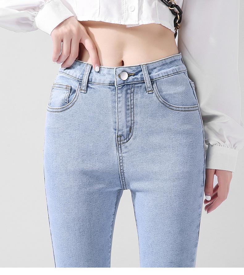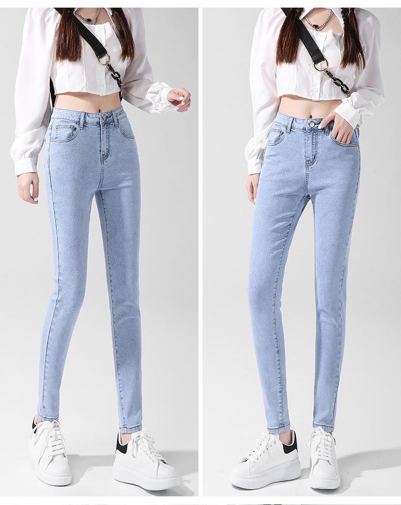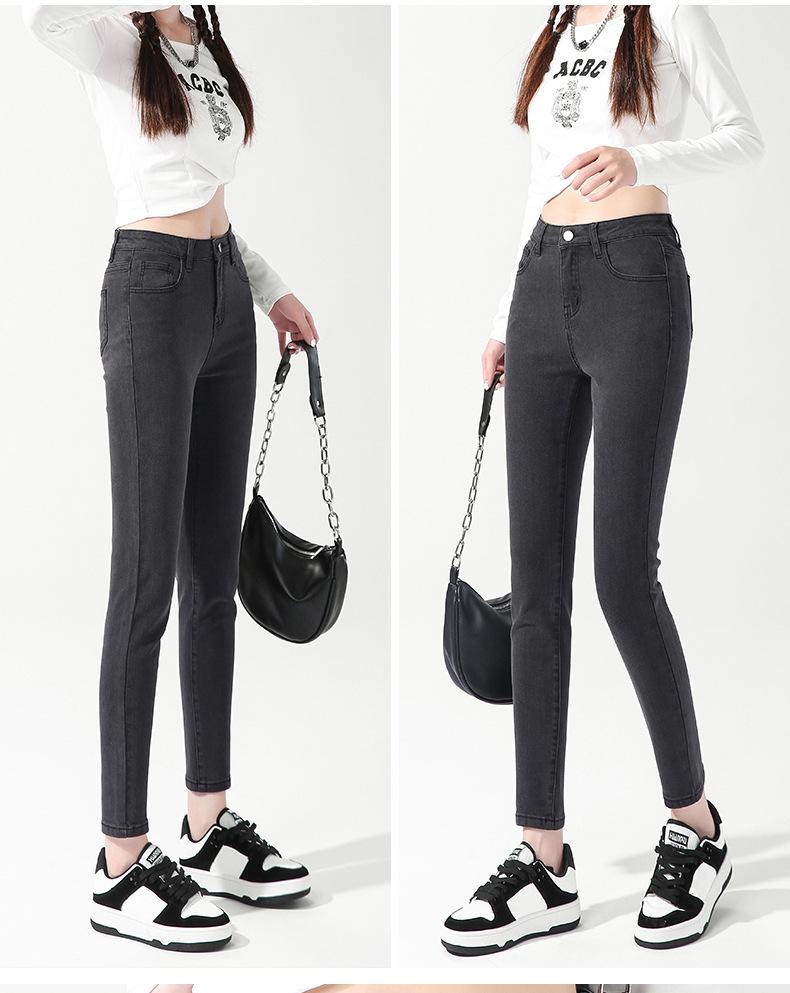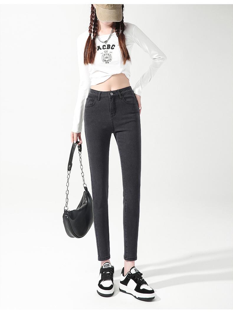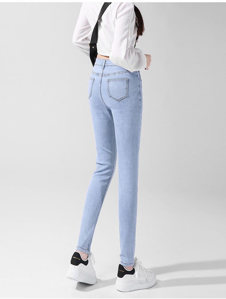 200 Jin Usando Jeans Skinny de Cintura Alta Otoño para Mujer Nuevo Pantalones Skinny Elásticos para Piernas de Cintura Super Alta