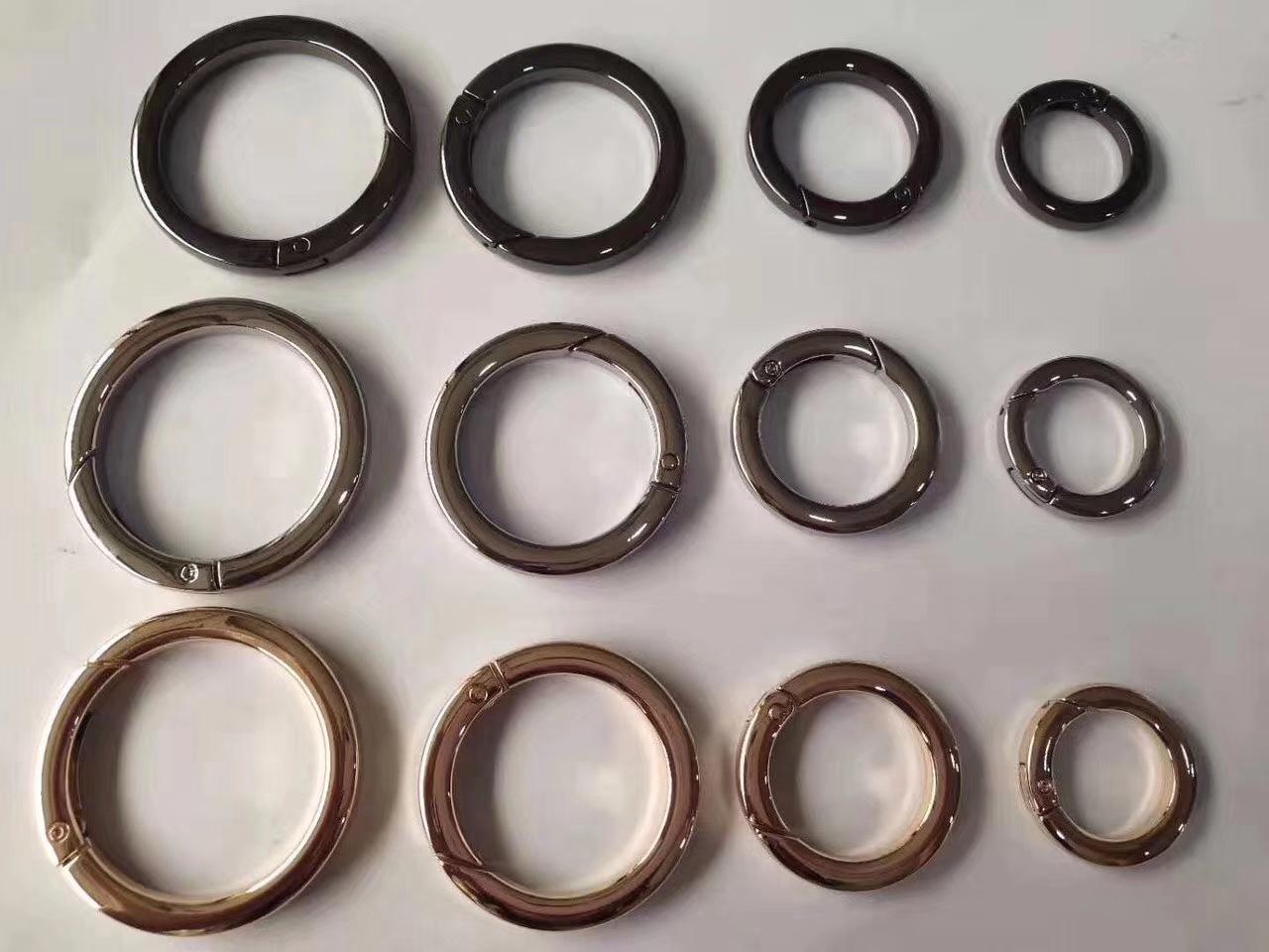 Venta al por mayor de fábrica de alta calidad hebilla de resorte de aleación anillo abierto moda aleación círculo personalizado anillo doble anillo de metal