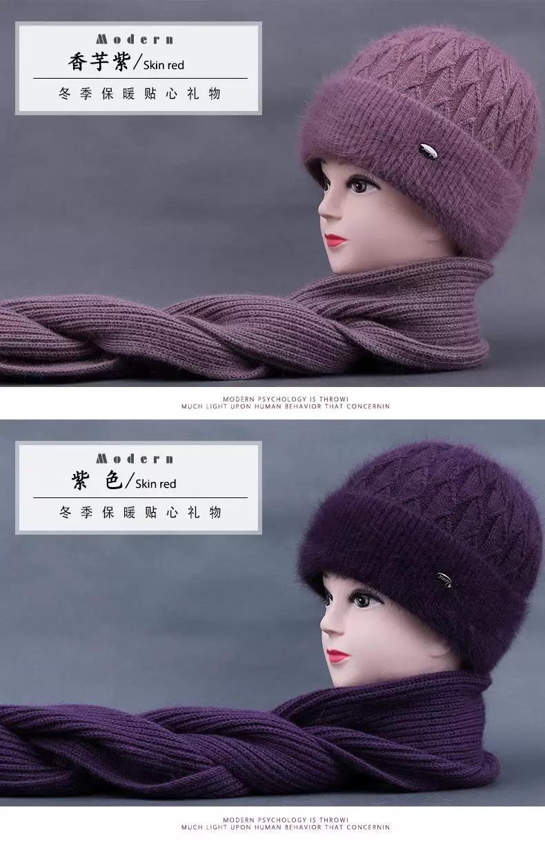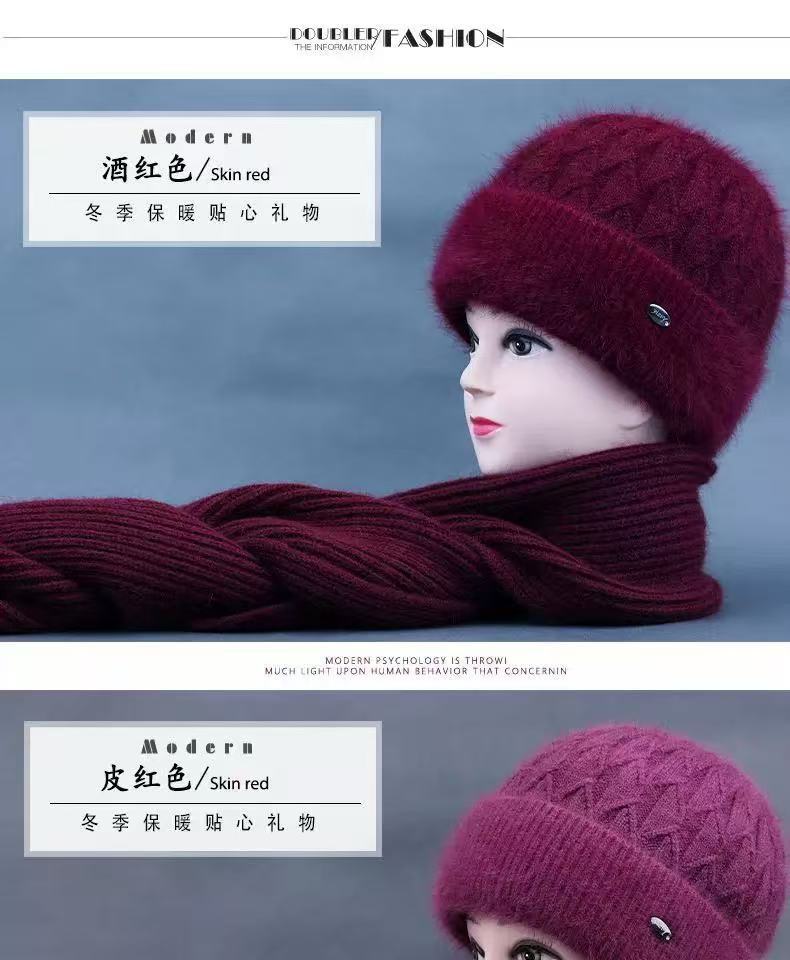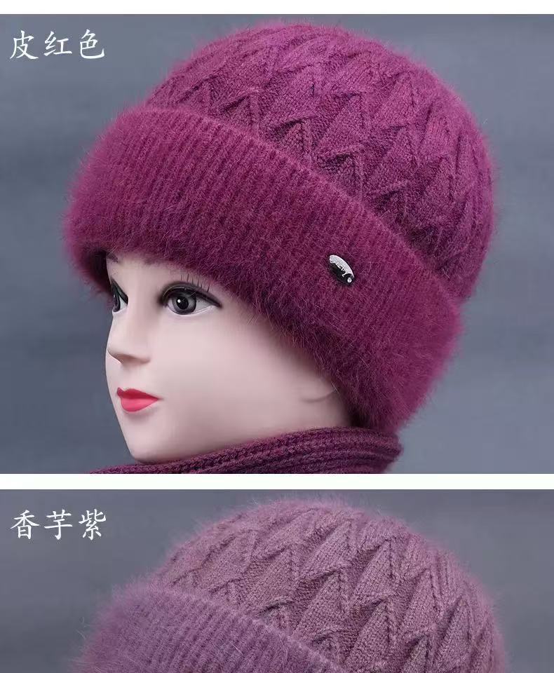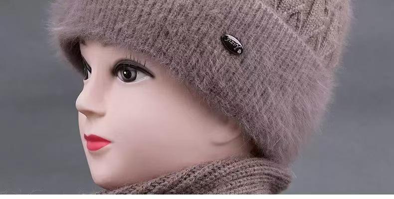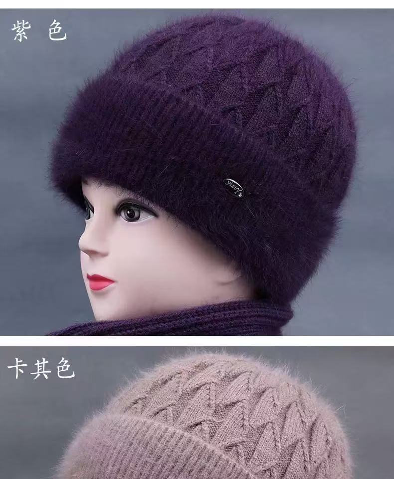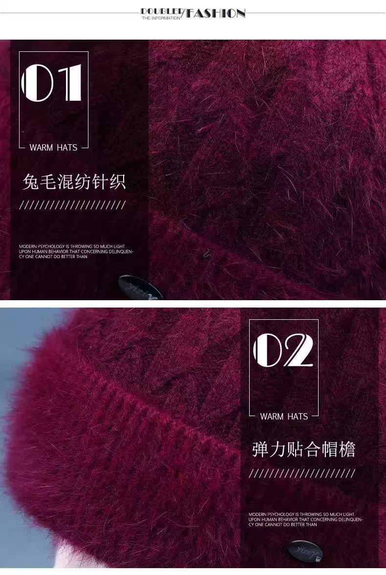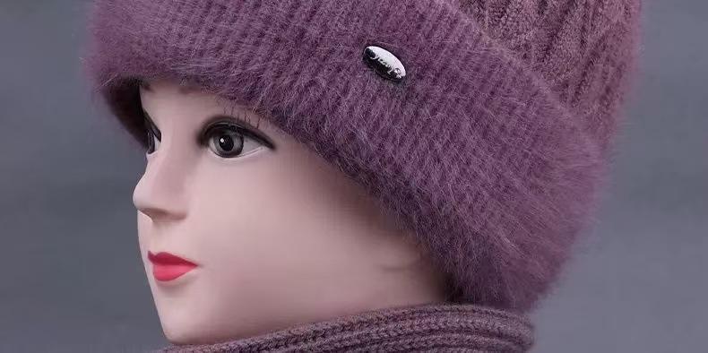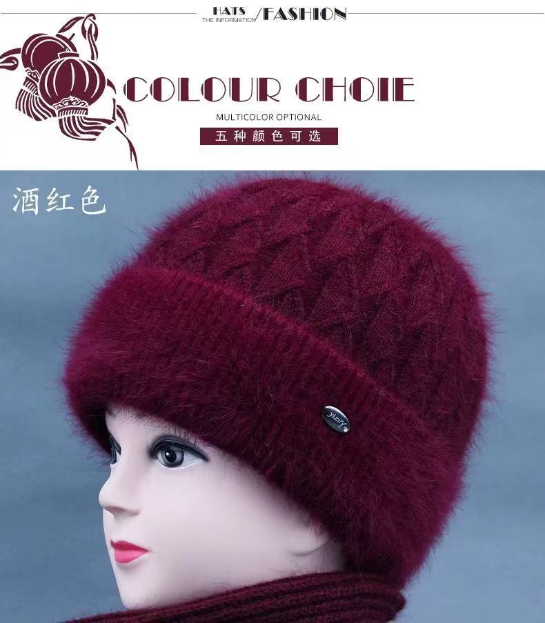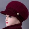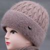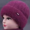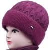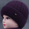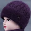 Sombrero de mujer de mediana edad invierno sombrero cálido de punto de piel de conejo sombrero de punto cálido para abuela anciana jersey sombrero de punto con forro polar afelpado