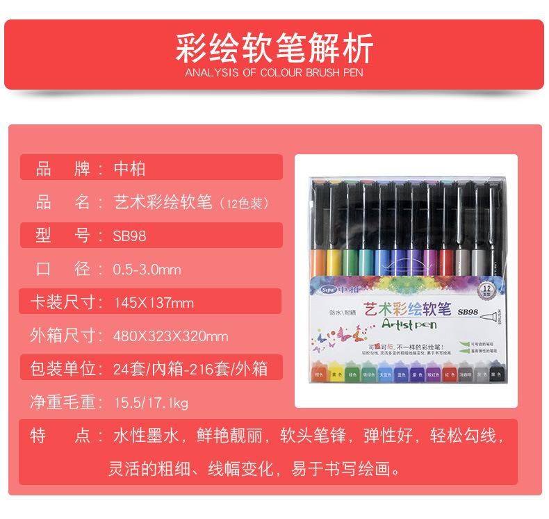 Fábrica directa SB98 arte pluma acuarela pintura graffiti álbum DIY estudiante juego de 12 colores plumas suaves