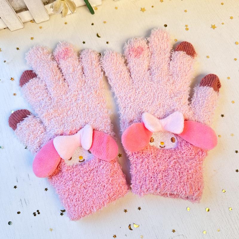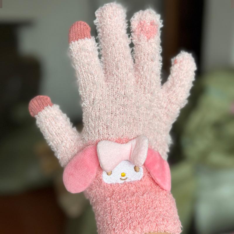 Guantes tridimensionales de tacto en la oreja de aspecto alto cálidos a prueba de frío adulto dedo niña guantes de cinco dedos invierno estudiante