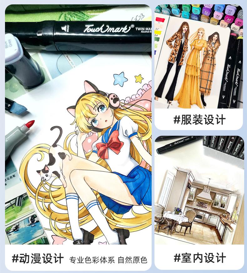 Marcador Touchmark Arte Estudiantil Oleoso Doble Punta Secado Rápido Pluma de Color Pintura de Animación 48/