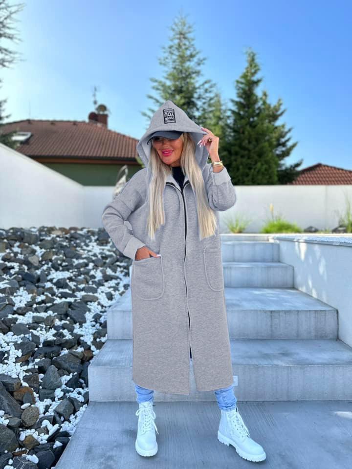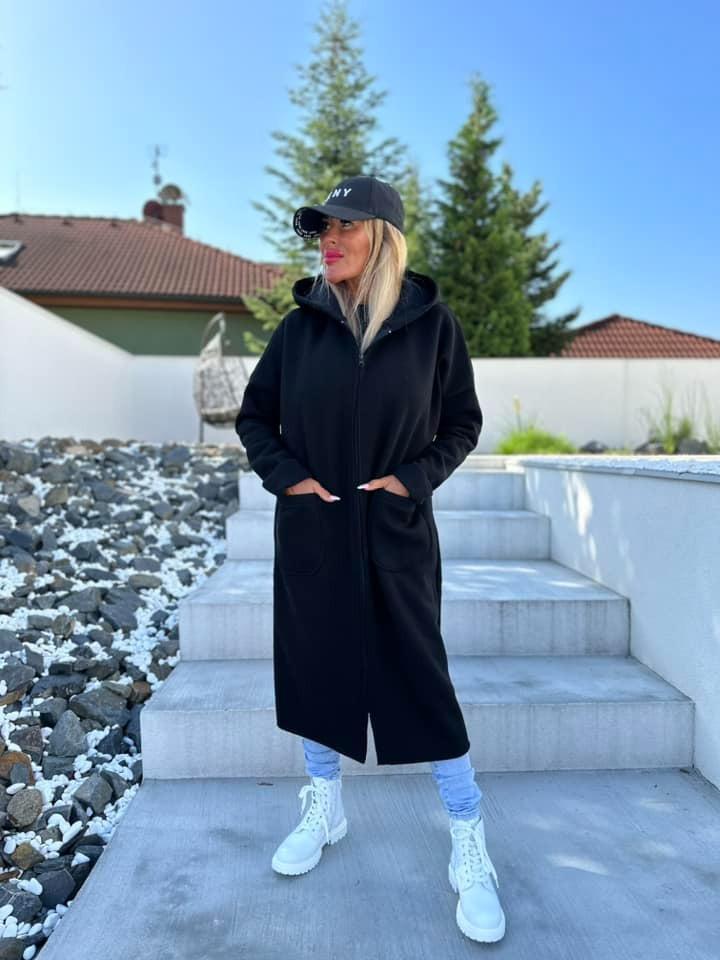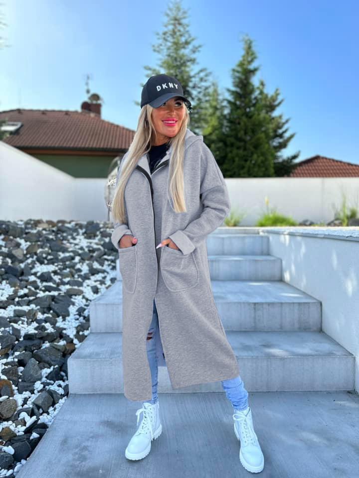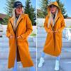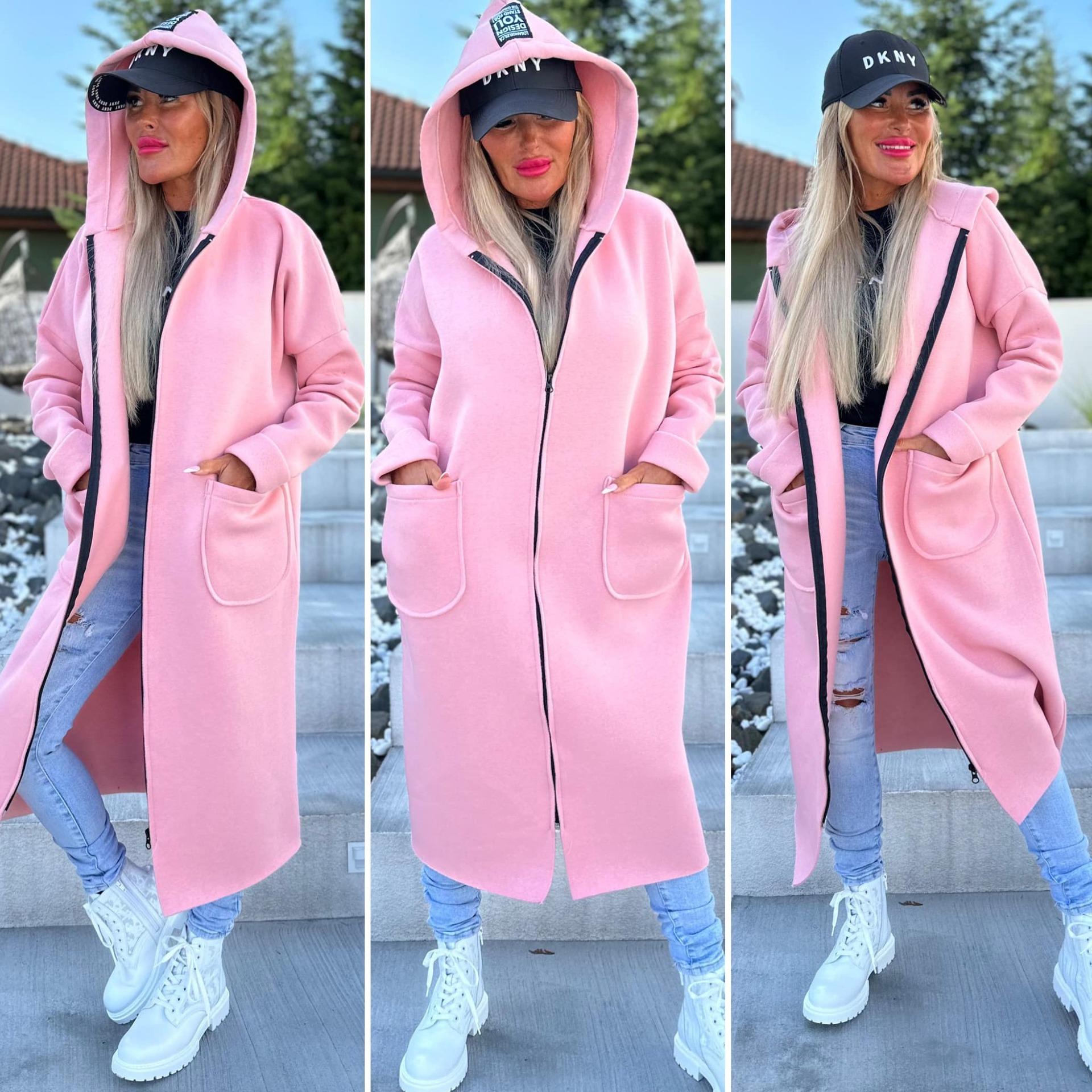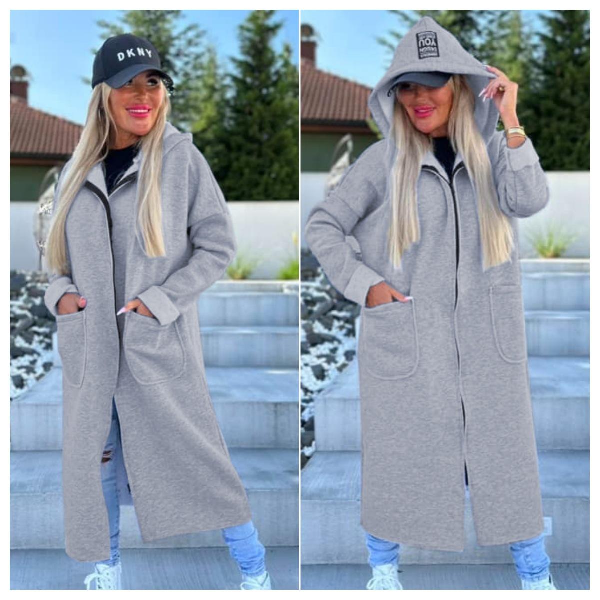 Nuevo Otoño/Invierno Suelto Talla Grande Tejido con Capucha Vestido Largo Sudadera de Felpa Moda Casual Bolsillo Grande Chaqueta con Cierre