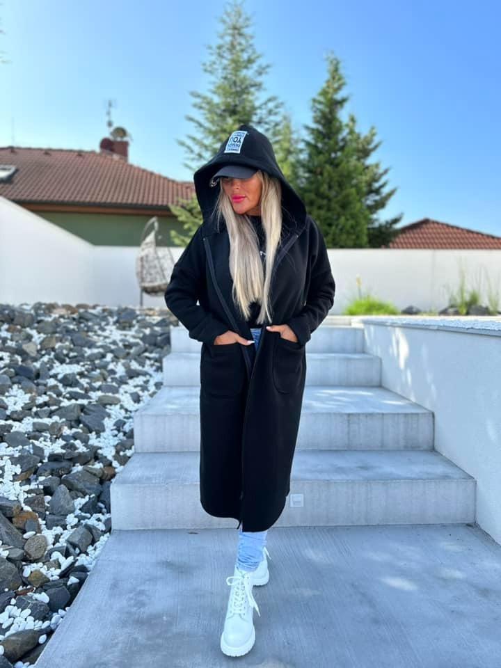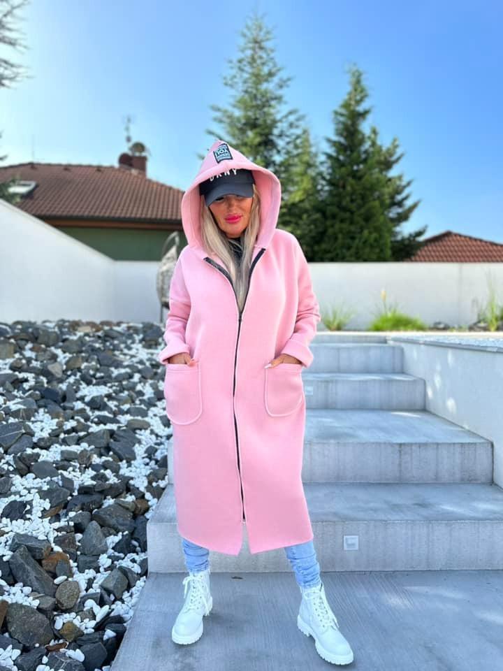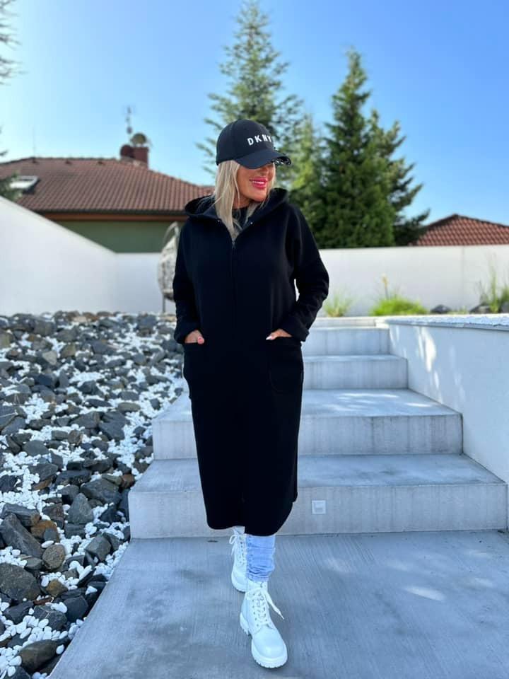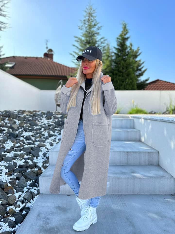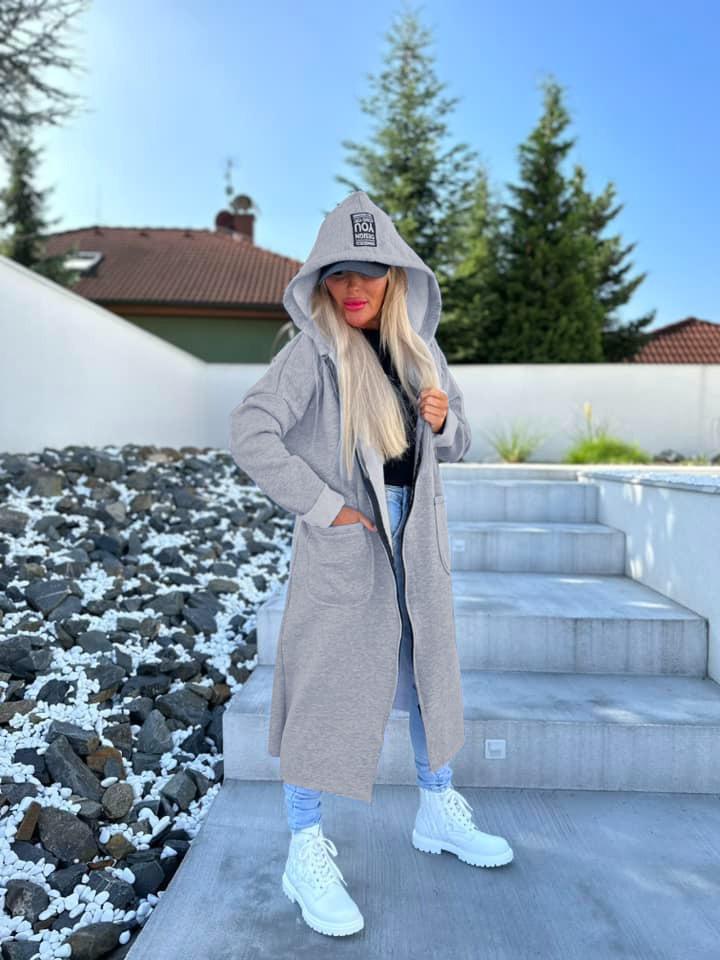 Nuevo Otoño/Invierno Suelto Talla Grande Tejido con Capucha Vestido Largo Sudadera de Felpa Moda Casual Bolsillo Grande Chaqueta con Cierre