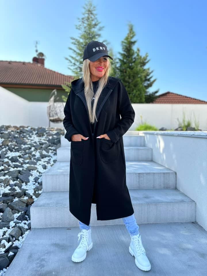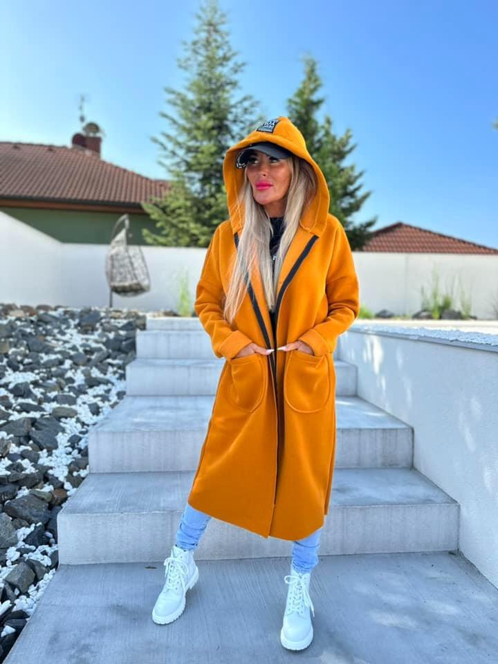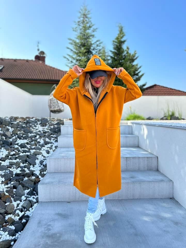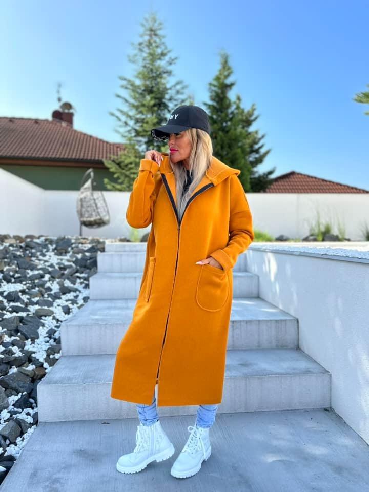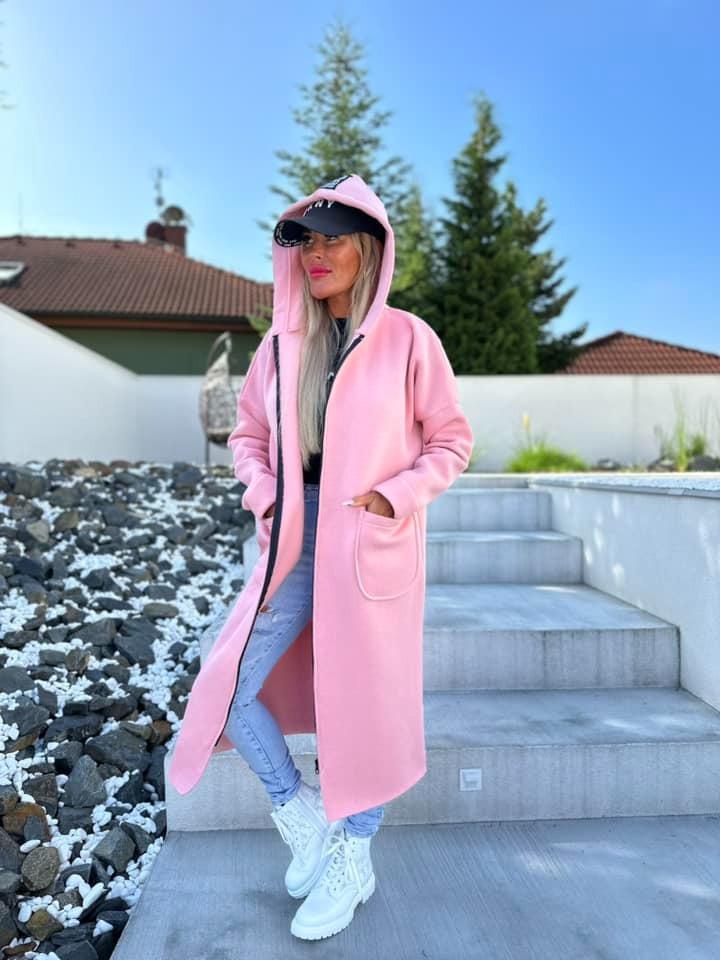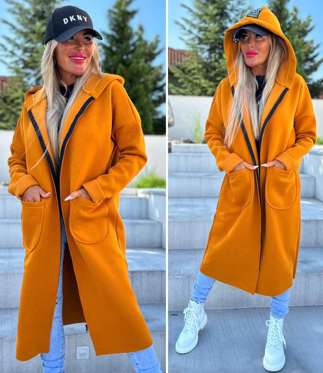 Nuevo Otoño/Invierno Suelto Talla Grande Tejido con Capucha Vestido Largo Sudadera de Felpa Moda Casual Bolsillo Grande Chaqueta con Cierre