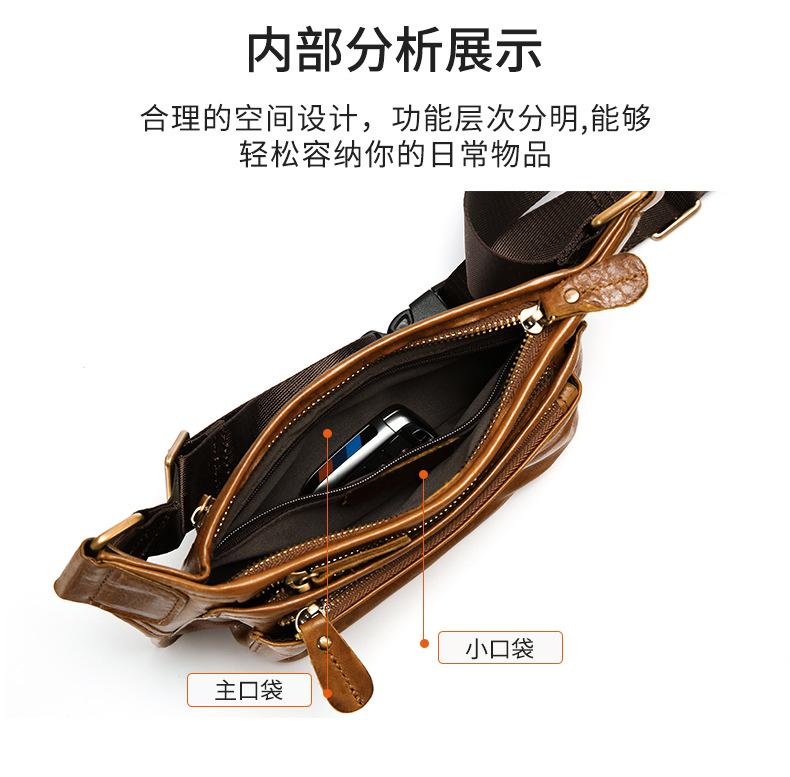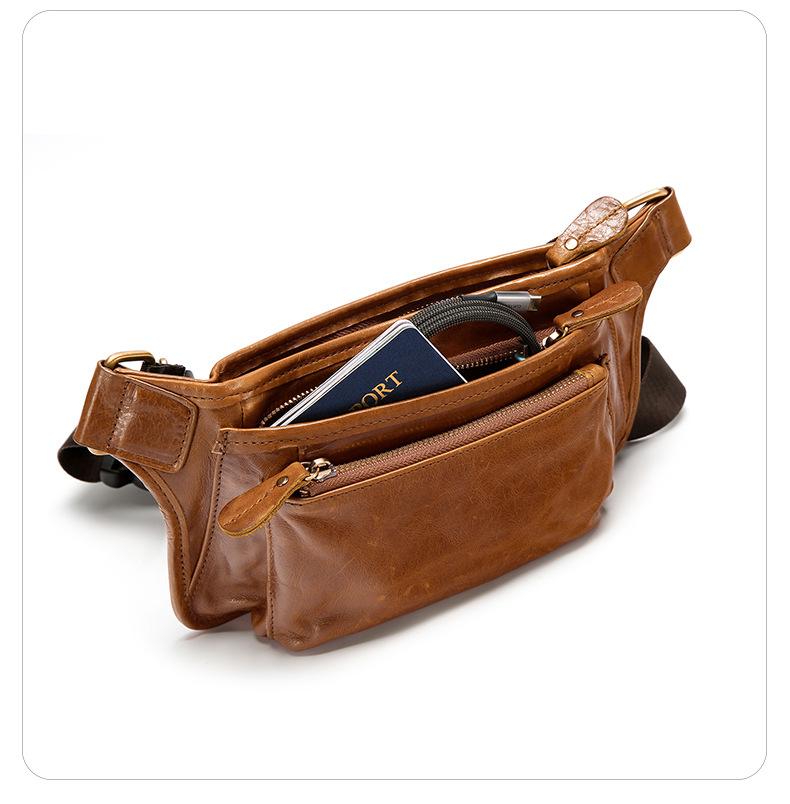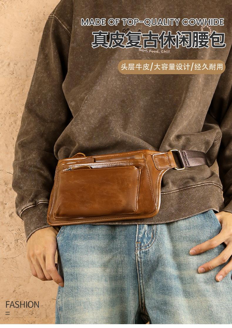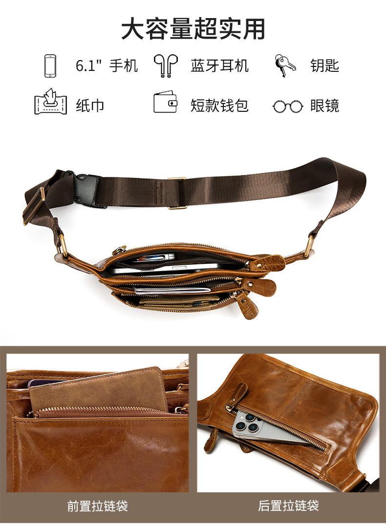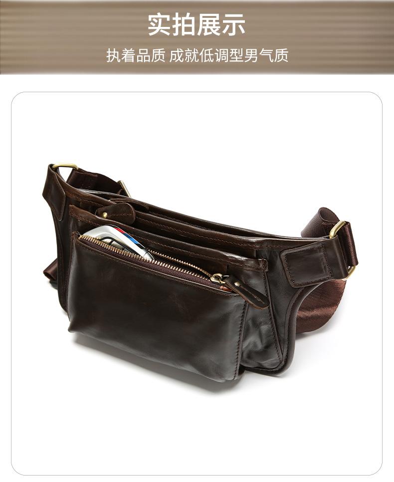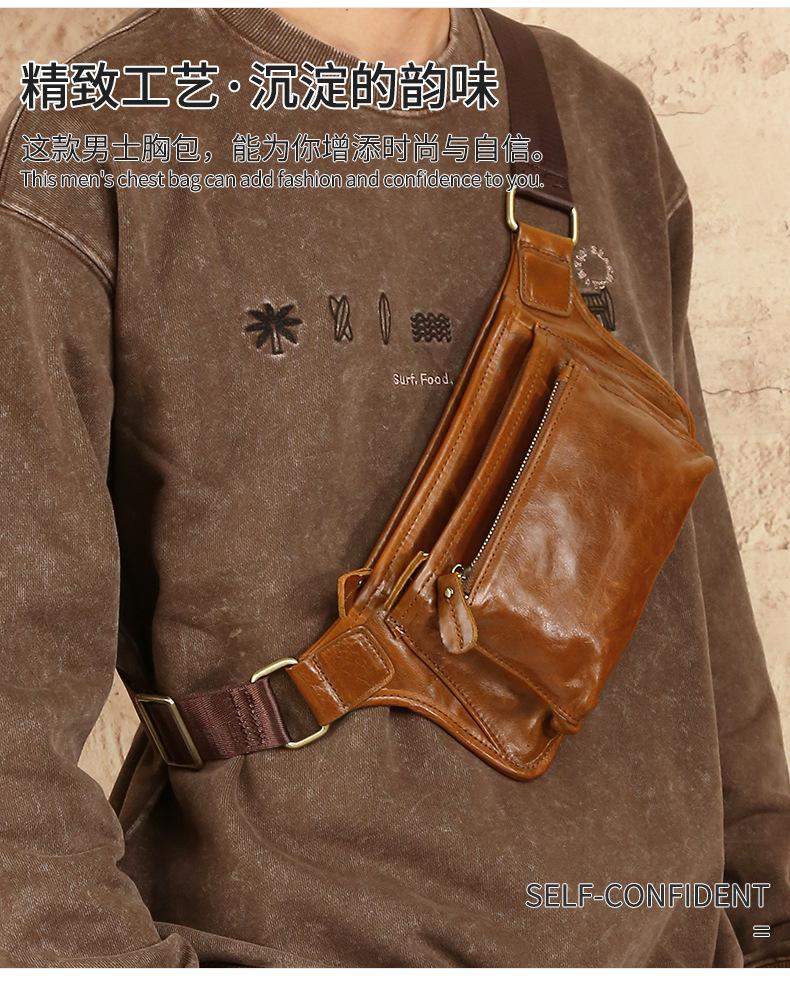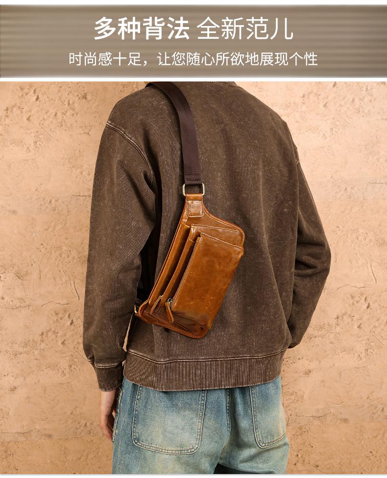 Bolsa de pecho de cuero genuino de venta caliente transfronteriza, capa superior de piel de vaca, bolsa para hombre, bolsa cruzada casual para exteriores, bolsa para hombre de alta gama para ir al trabajo