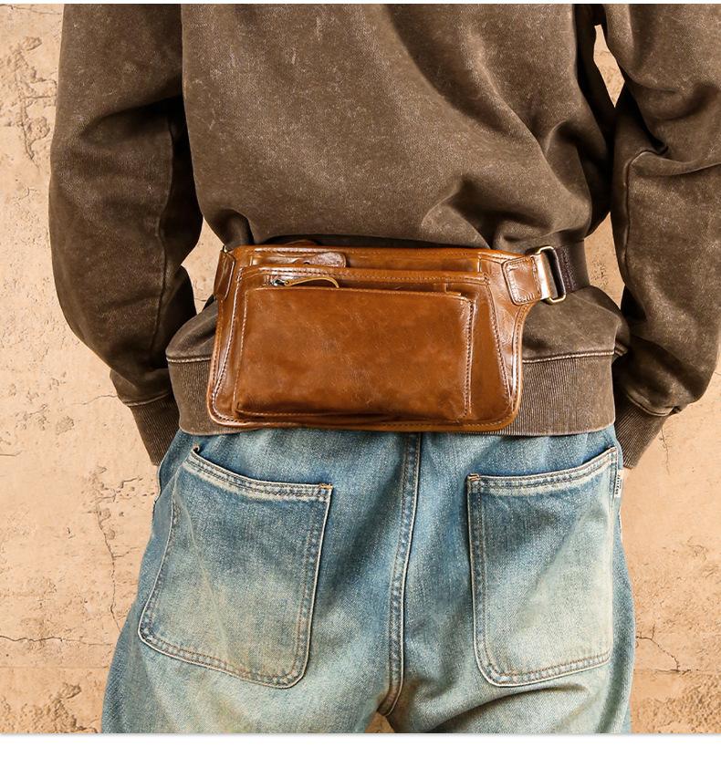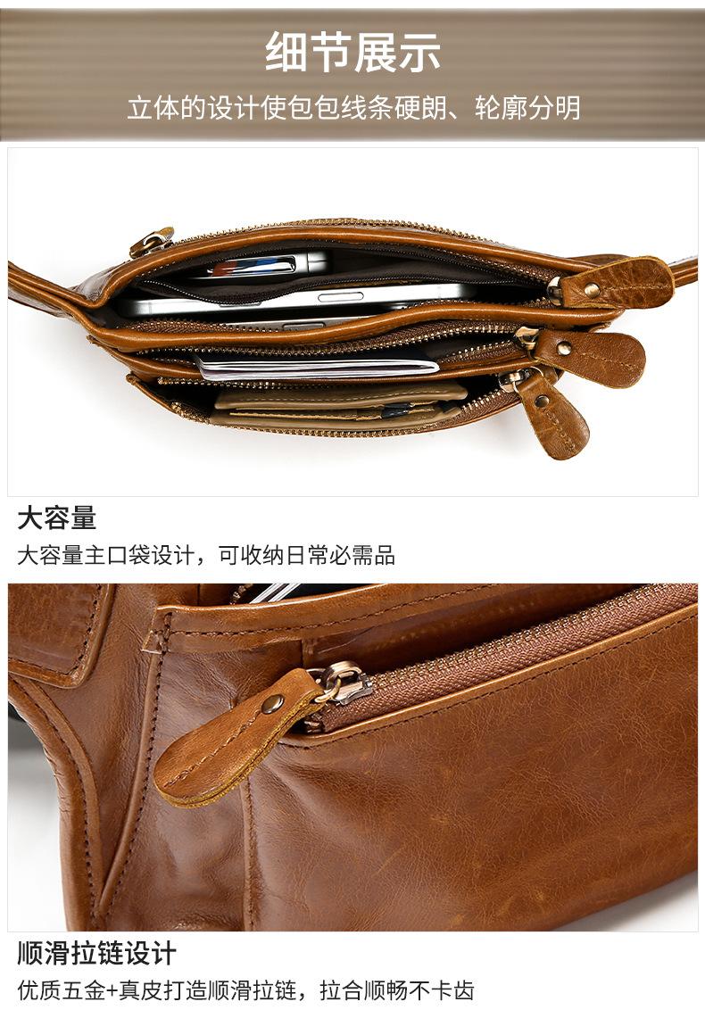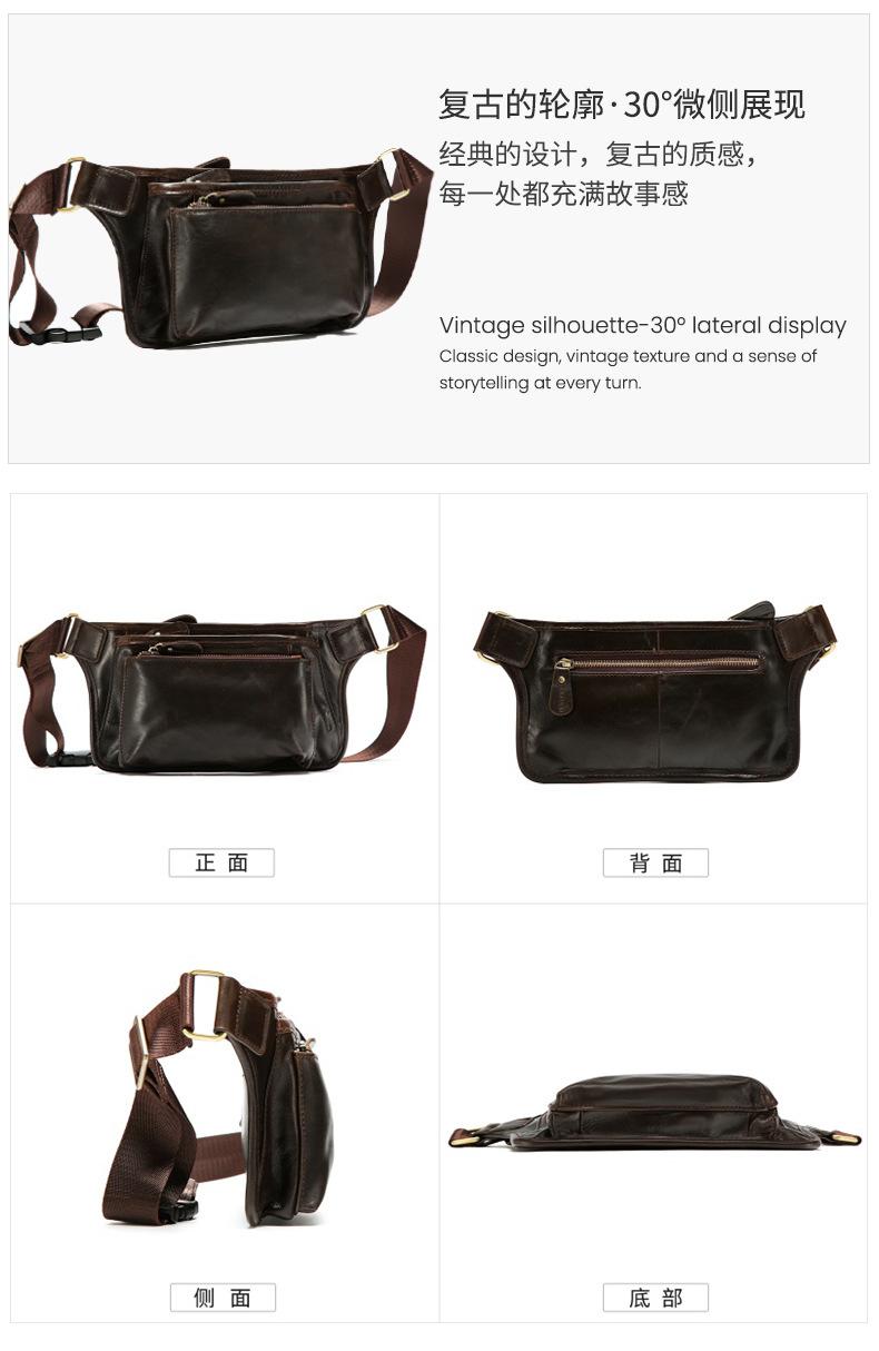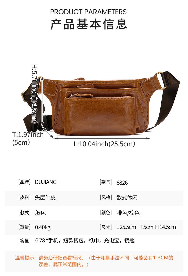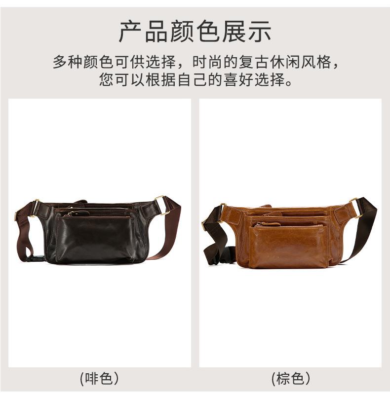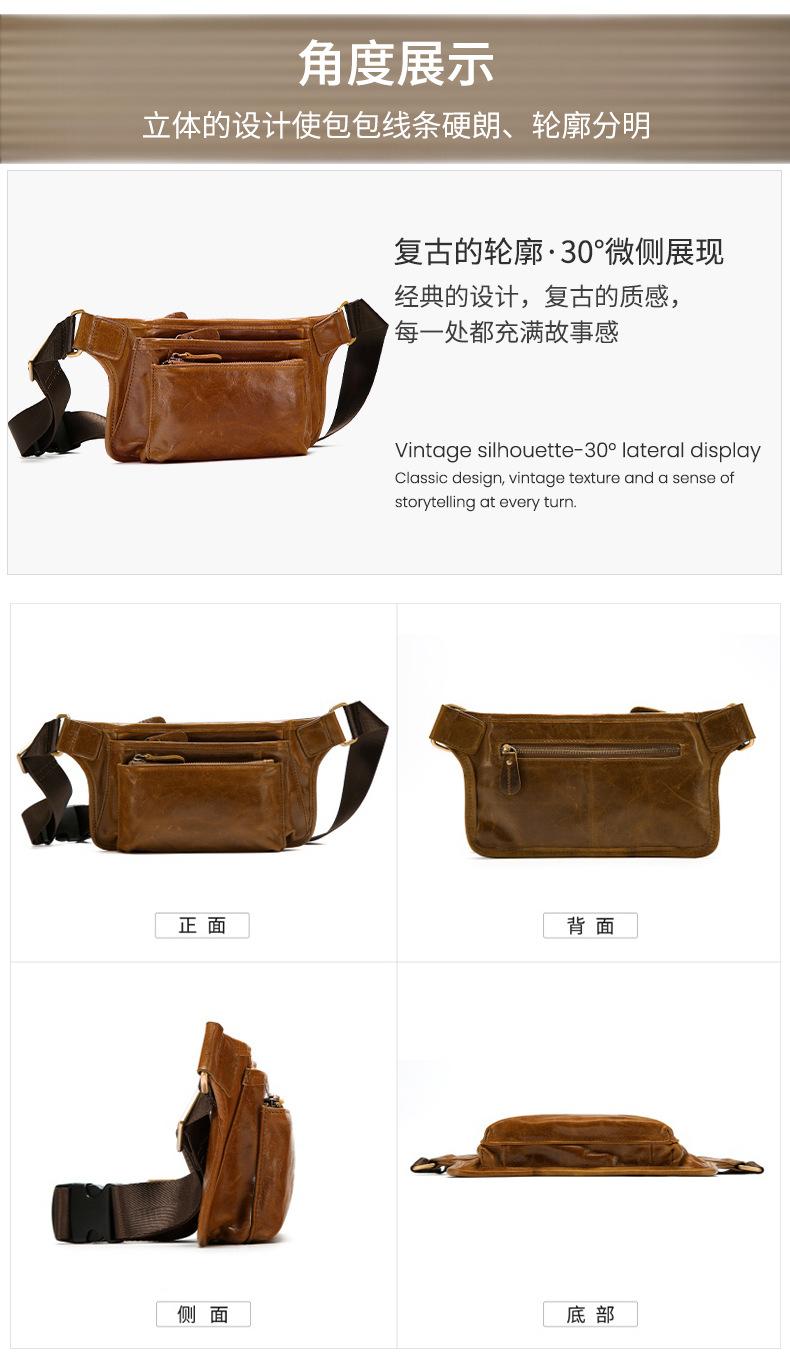Bolsa de pecho de cuero genuino de venta caliente transfronteriza, capa superior de piel de vaca, bolsa para hombre, bolsa cruzada casual para exteriores, bolsa para hombre de alta gama para ir al trabajo