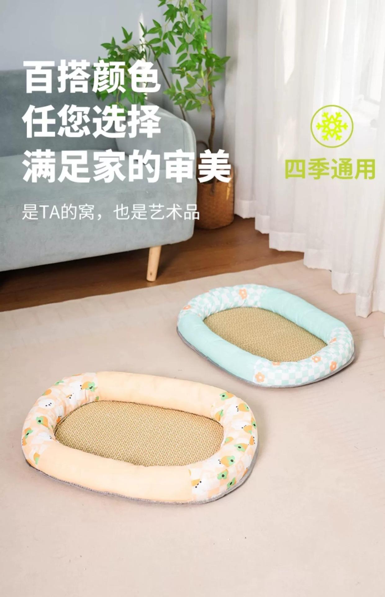 Verano Más Vendido Mascota Rattan Estera Nido Redondo Almohadilla de Hielo Gato y Perro Estera Fresca Removible y Lavable Universal para Cuatro Estaciones Resistente a los Arañazos Resistente al Desgaste Transpirable Nido