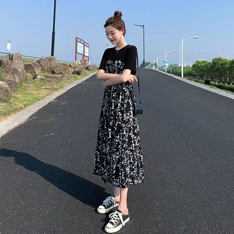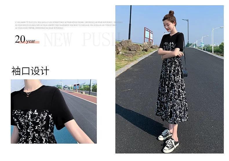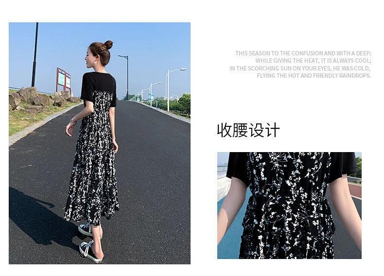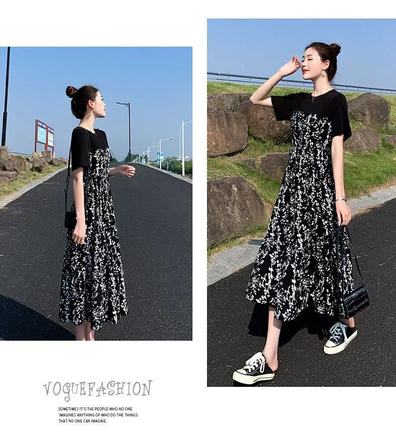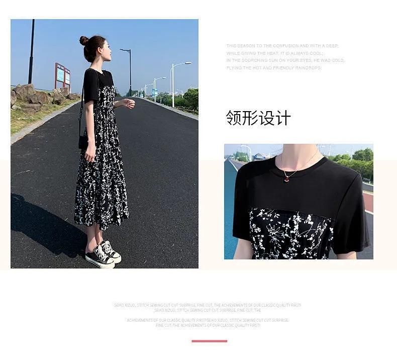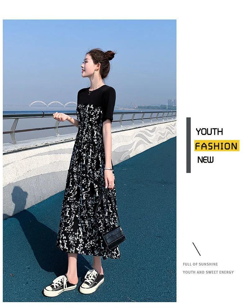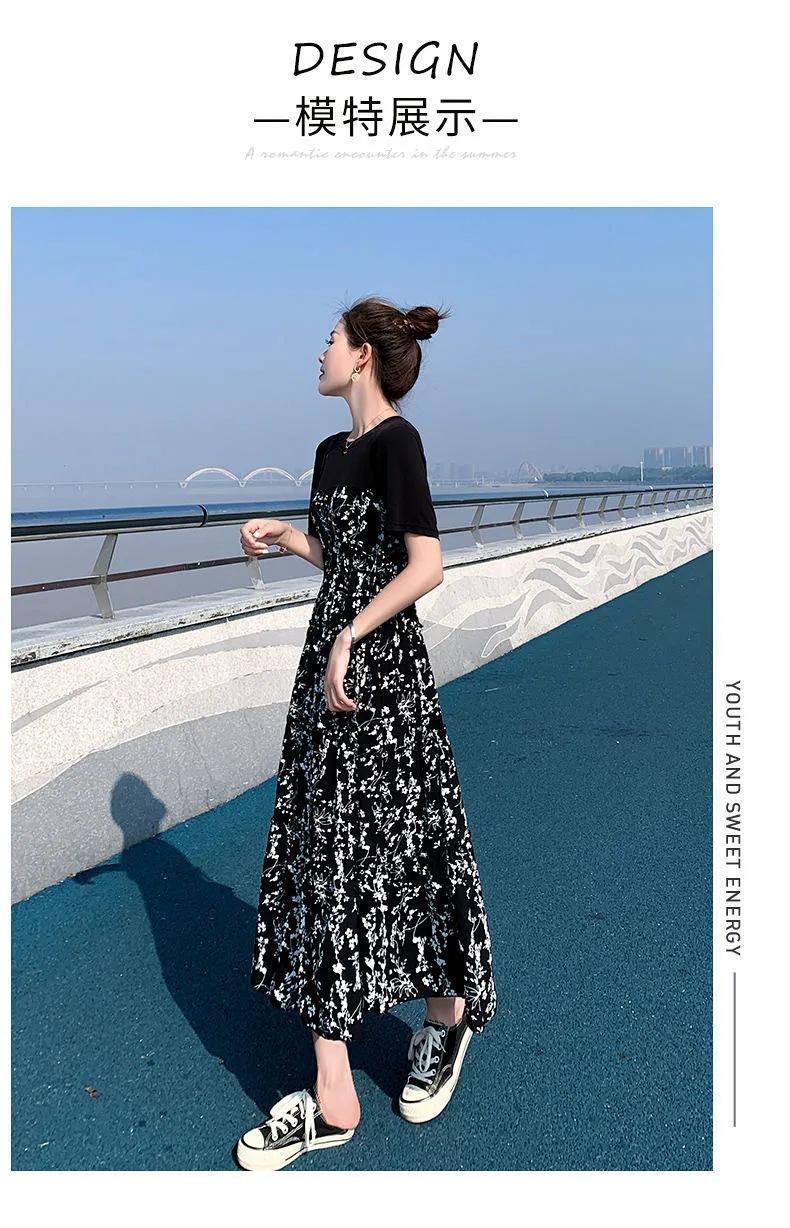 Vestido de Mujer 2023 Verano Nuevo Estilo Hepburn Largo Medio Costura Vestido Floral Cintura Alta Slim Vestido de Playa