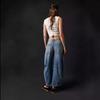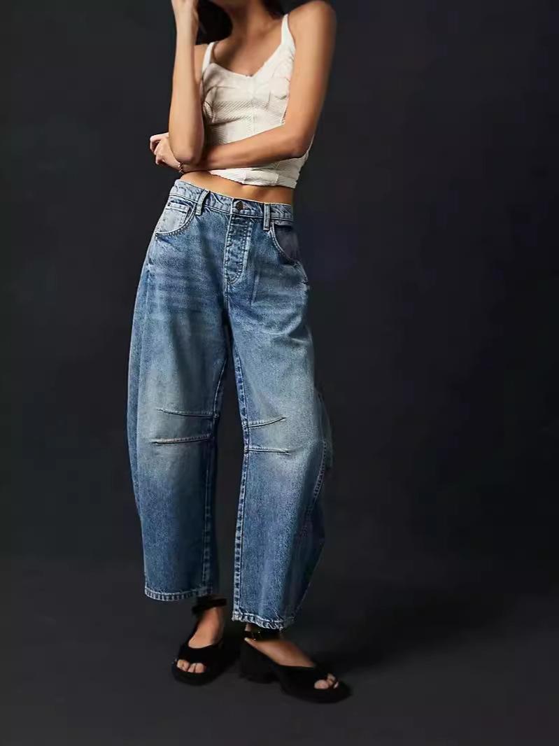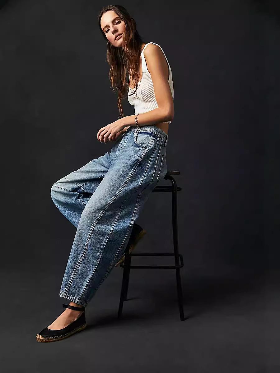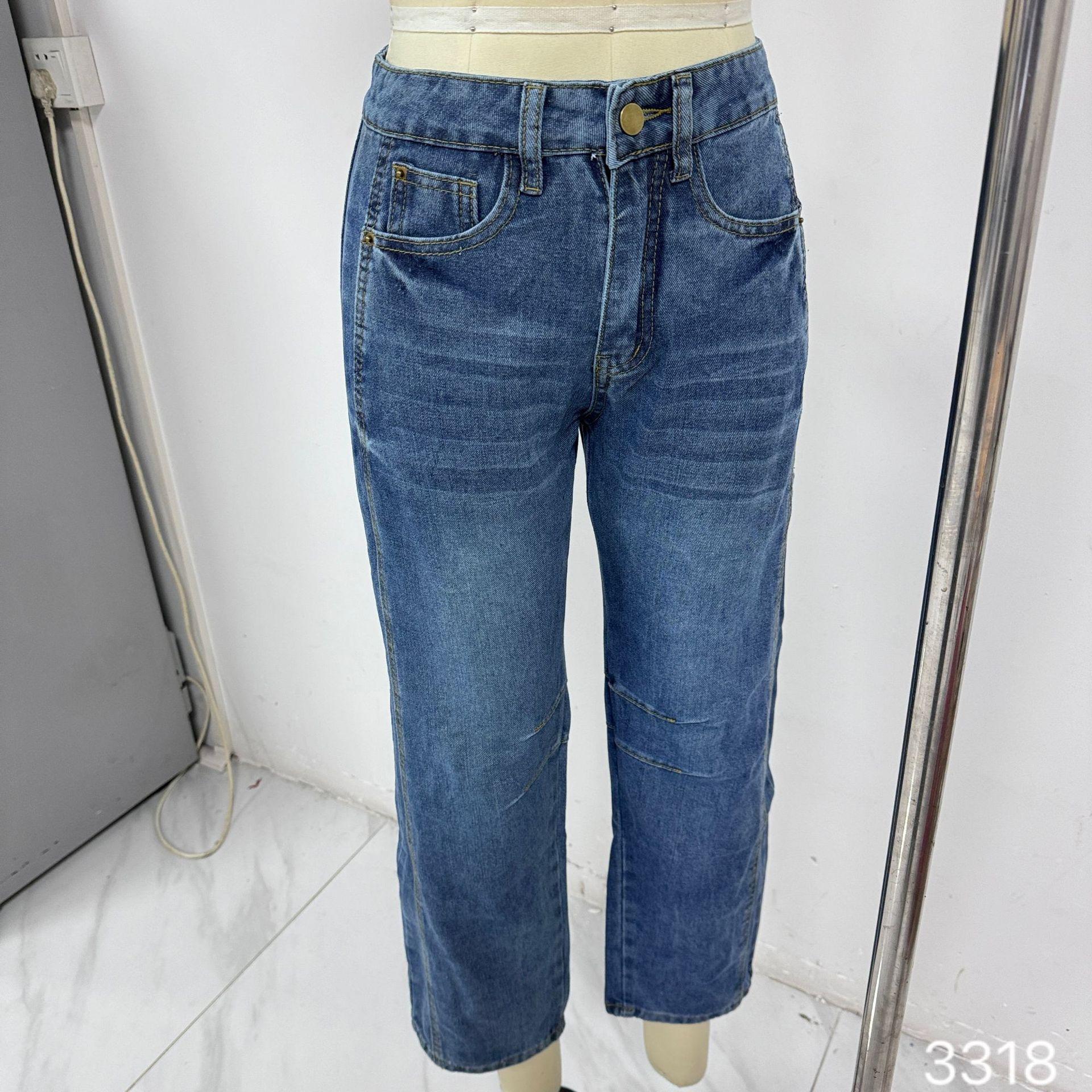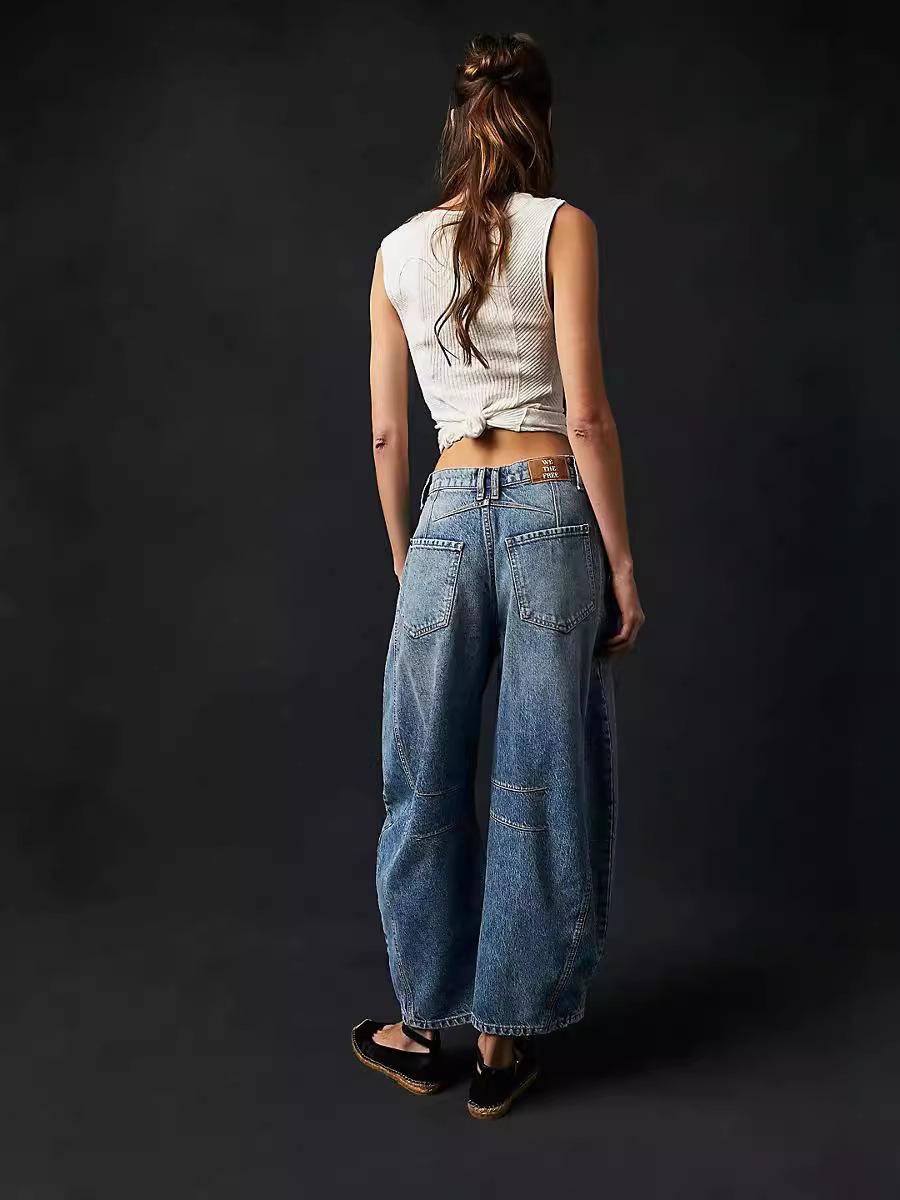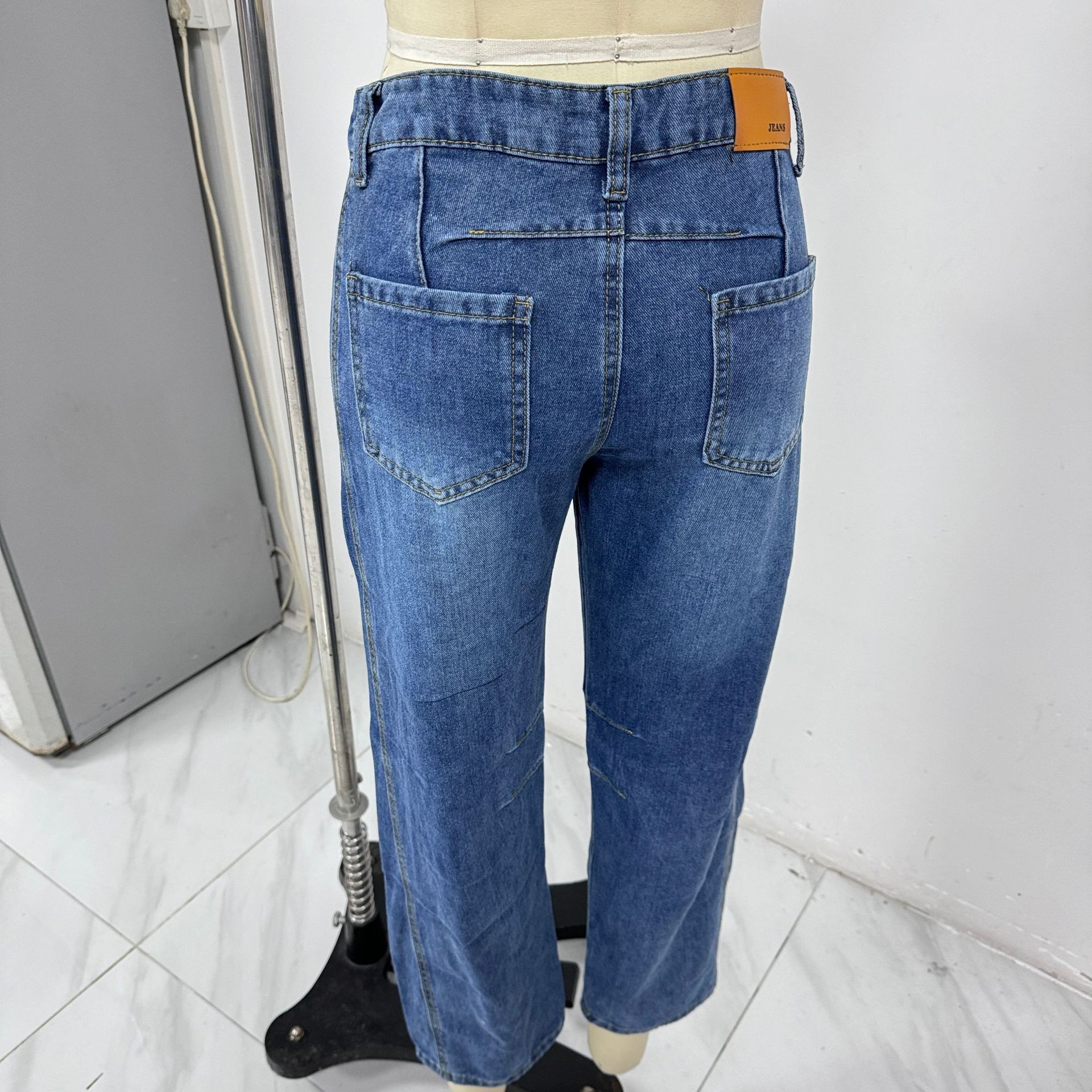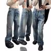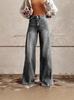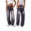 Suministro Transfronterizo Europeo y Americano Comercio Exterior Pantalones Holgados de Pierna Ancha Cintura Media-Baja Pantalones de Mezclilla Lavados para Mujer
