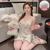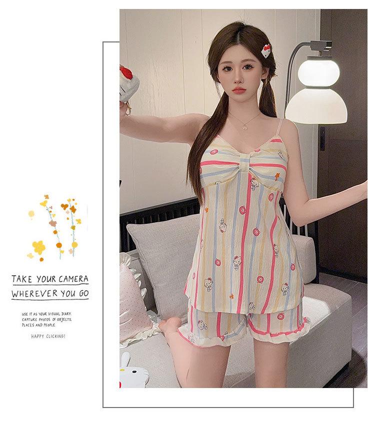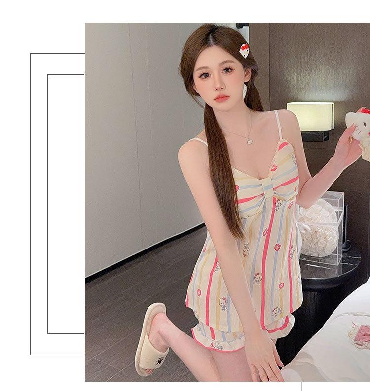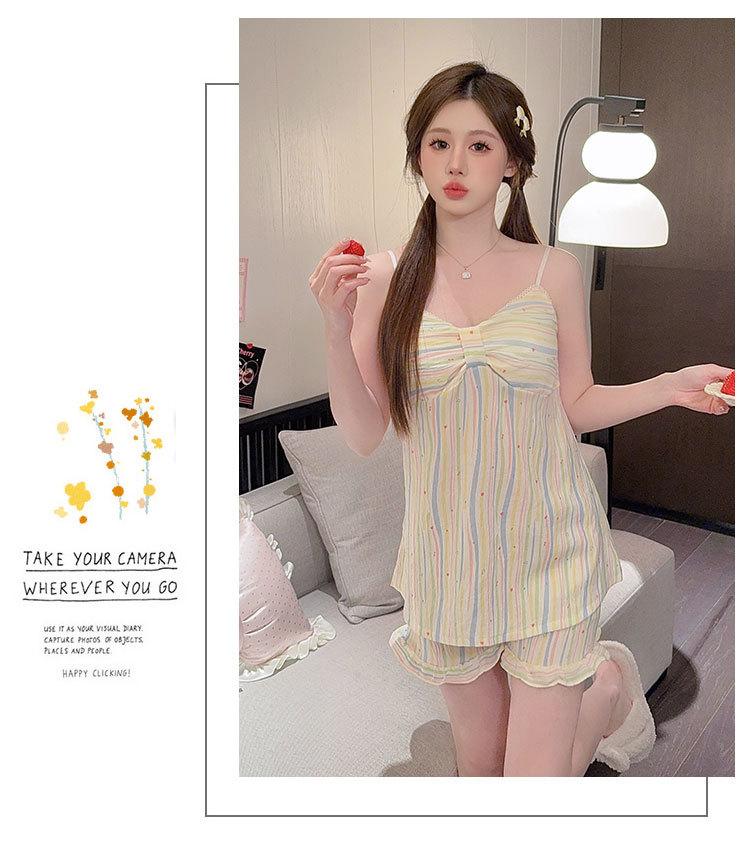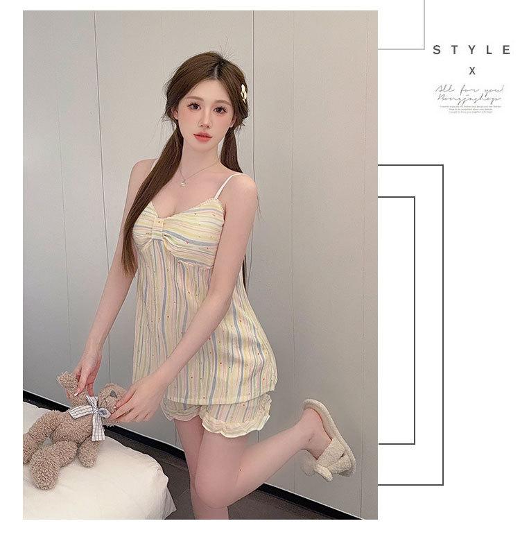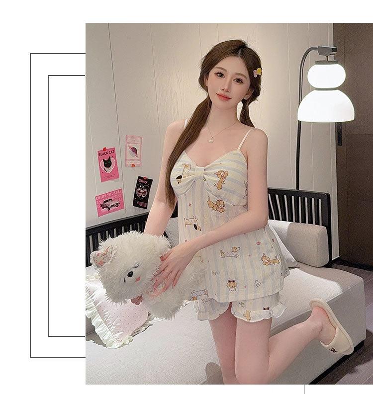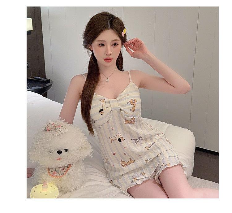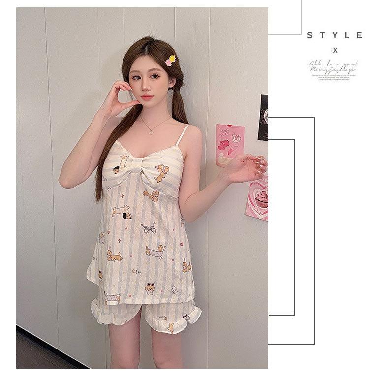 Pijama de Verano para Mujer, Shorts de Tirantes Acolchados de Algodón Nube, Ropa de Dormir Sexy de Algodón Seda de Talla Grande, Conjunto para Estar en Casa