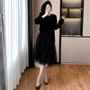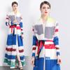 2024 Australia Suelto talla grande Moda Estampado Reductor de edad Elegante Moda Gran Péndulo Vestido Largo Conjunto de dos piezas
