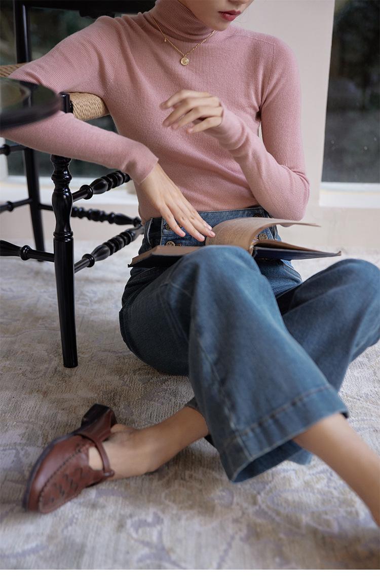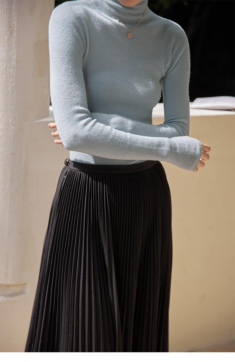 Soligther Lana Sin Costuras Una Pieza Cuello Alto Ropa de Punto Bajo 2025 Otoño e Invierno Nuevo Top Interior Color Puro