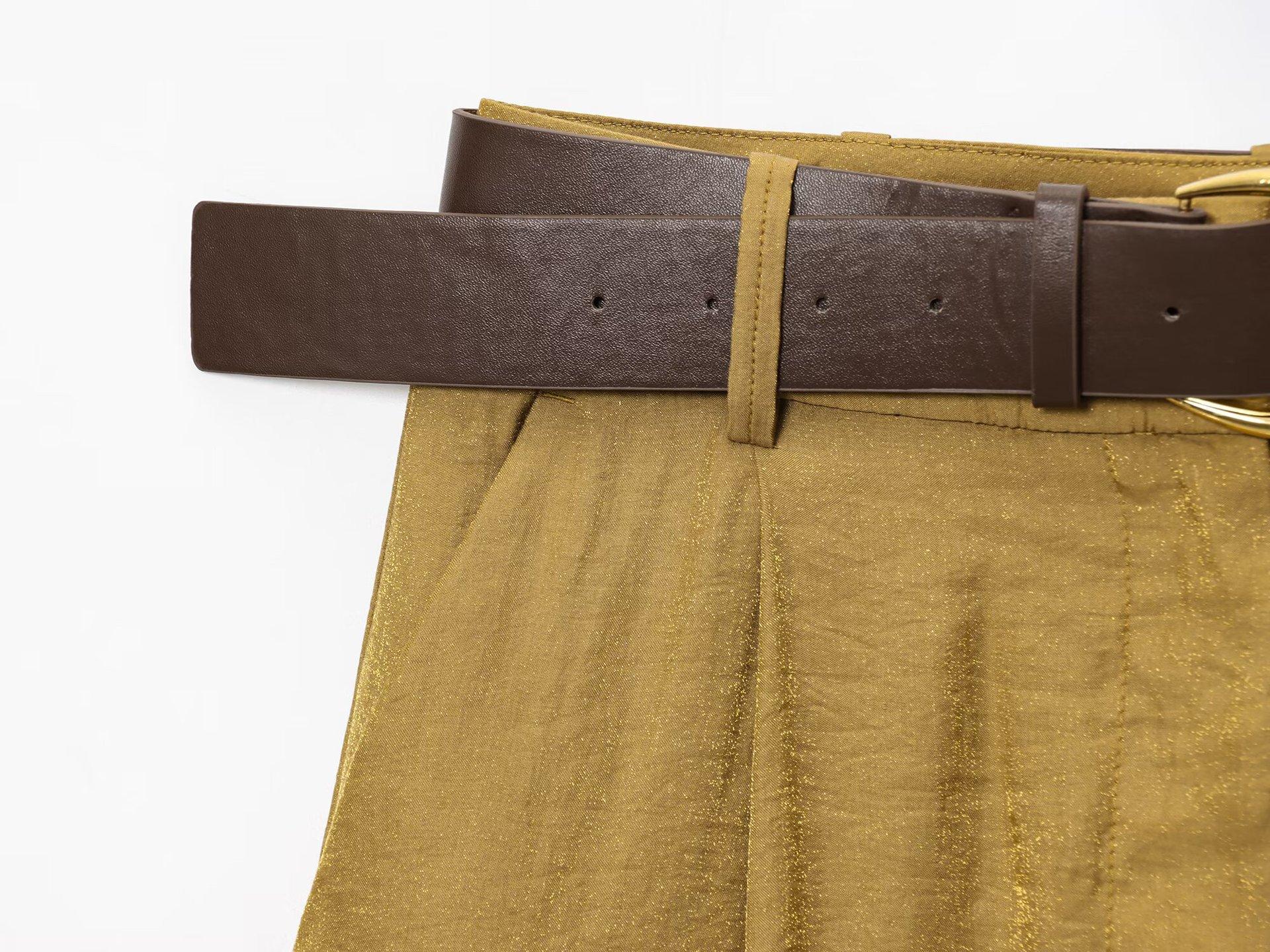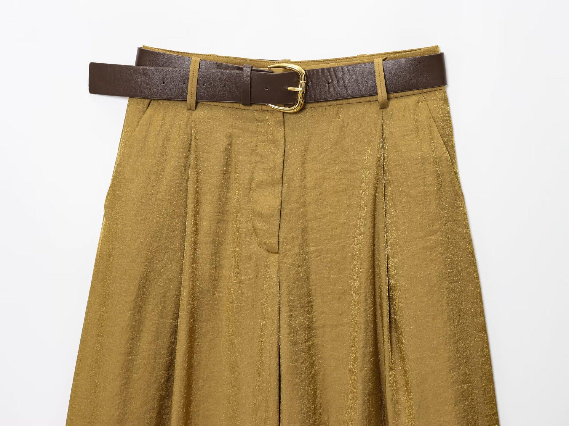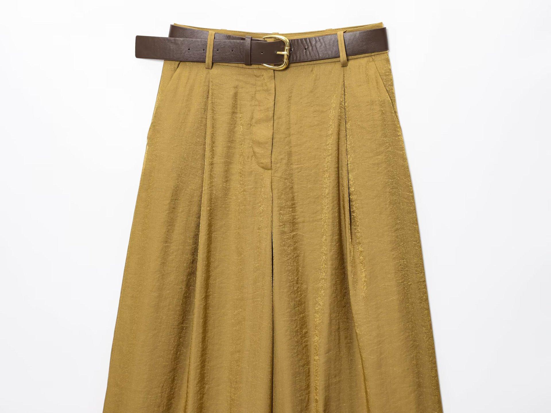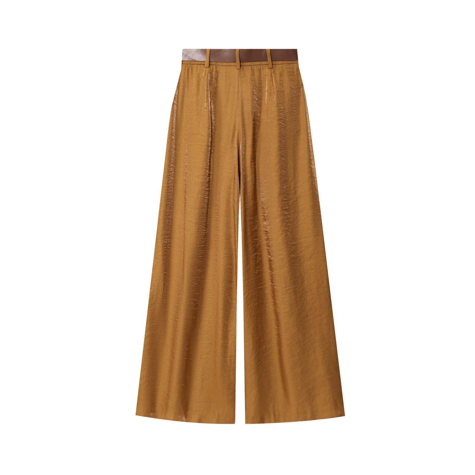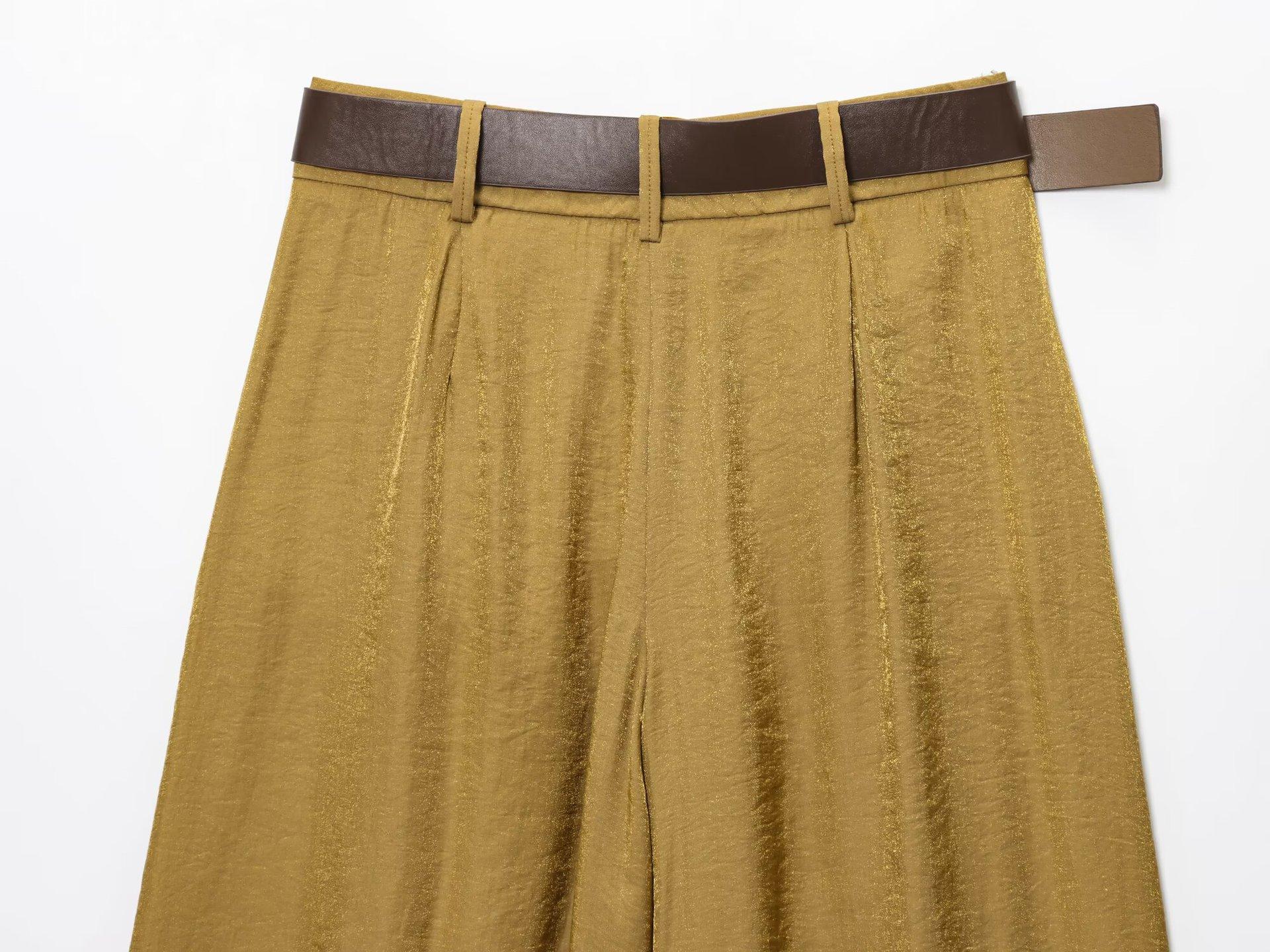 2025 Otoño Nuevo Europeo y Americano Transfronterizo Moda para Mujer Pantalones de Pierna Ancha de Satén de Seda con Cinturón W063 9286