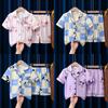 Pijamas de verano 2023 para niños y niñas, pantalones cortos de manga corta, cárdigan con solapa y dibujos animados, conjunto de ropa de hogar para niños medianos y grandes