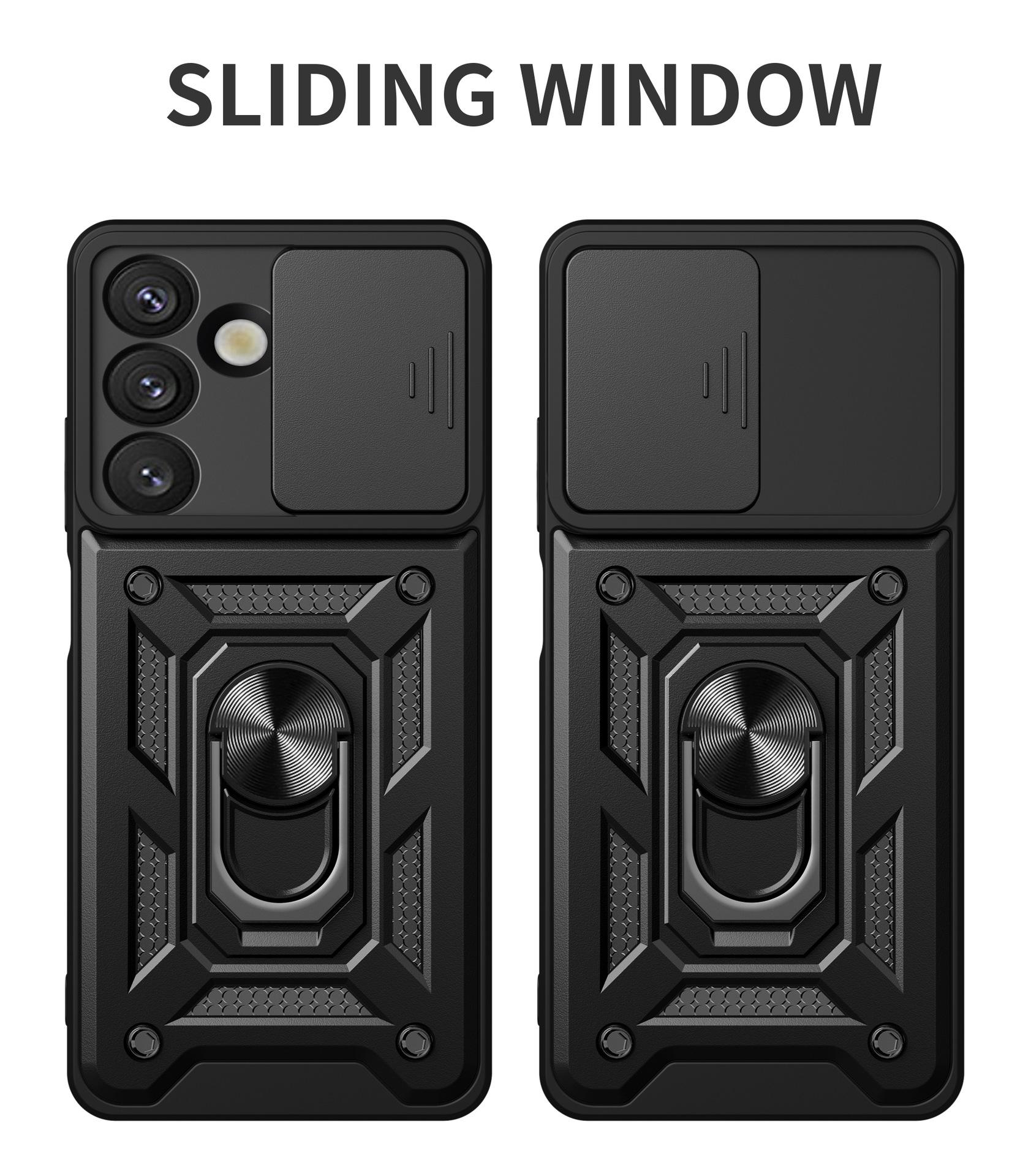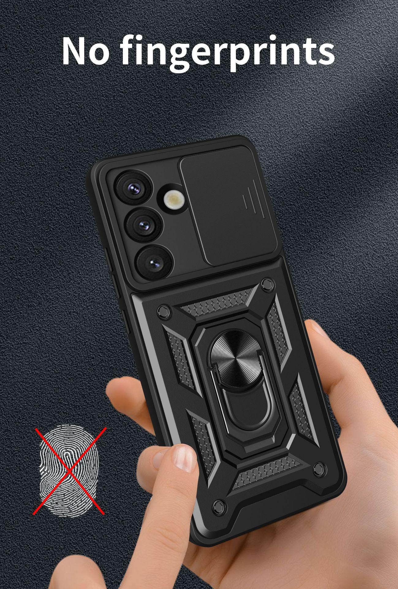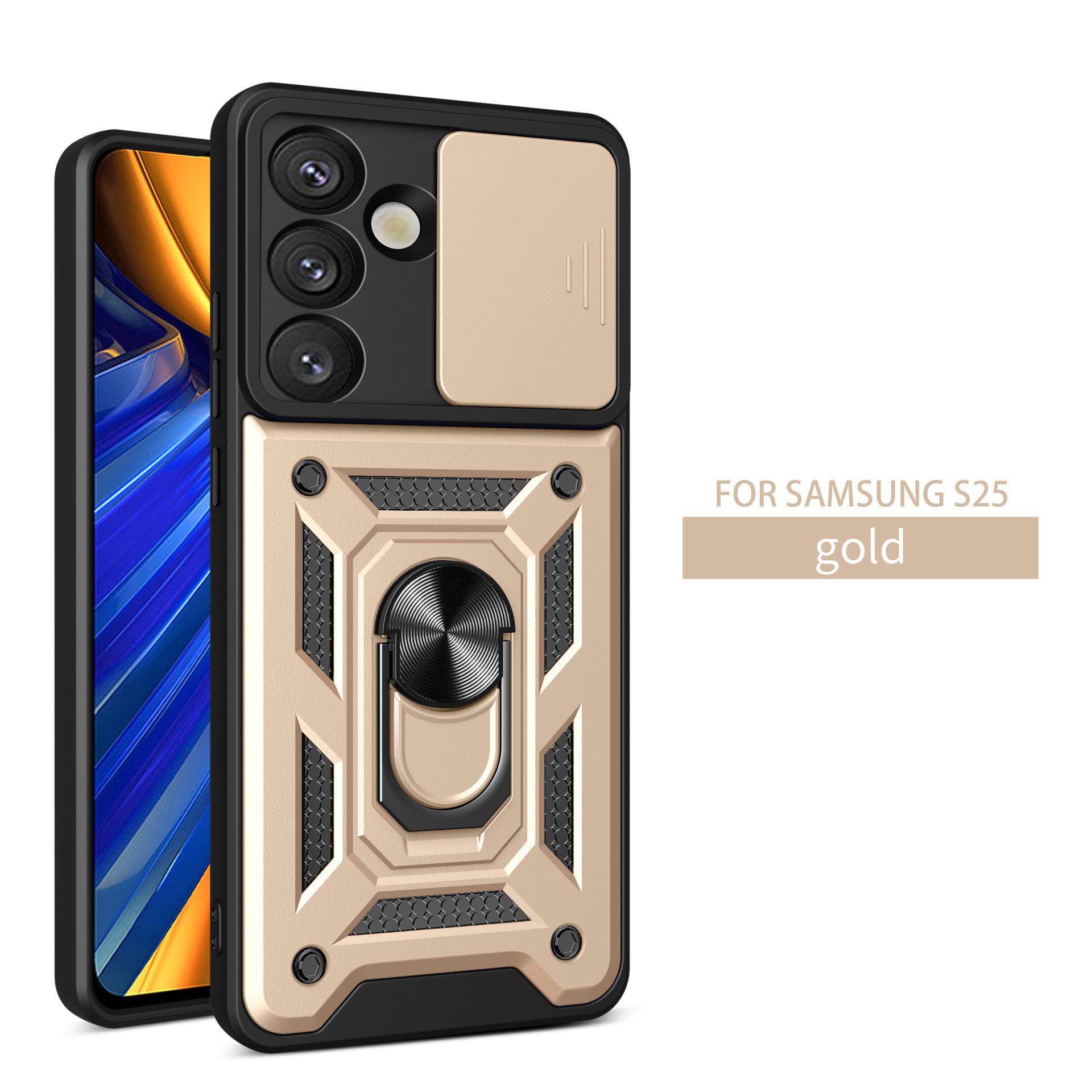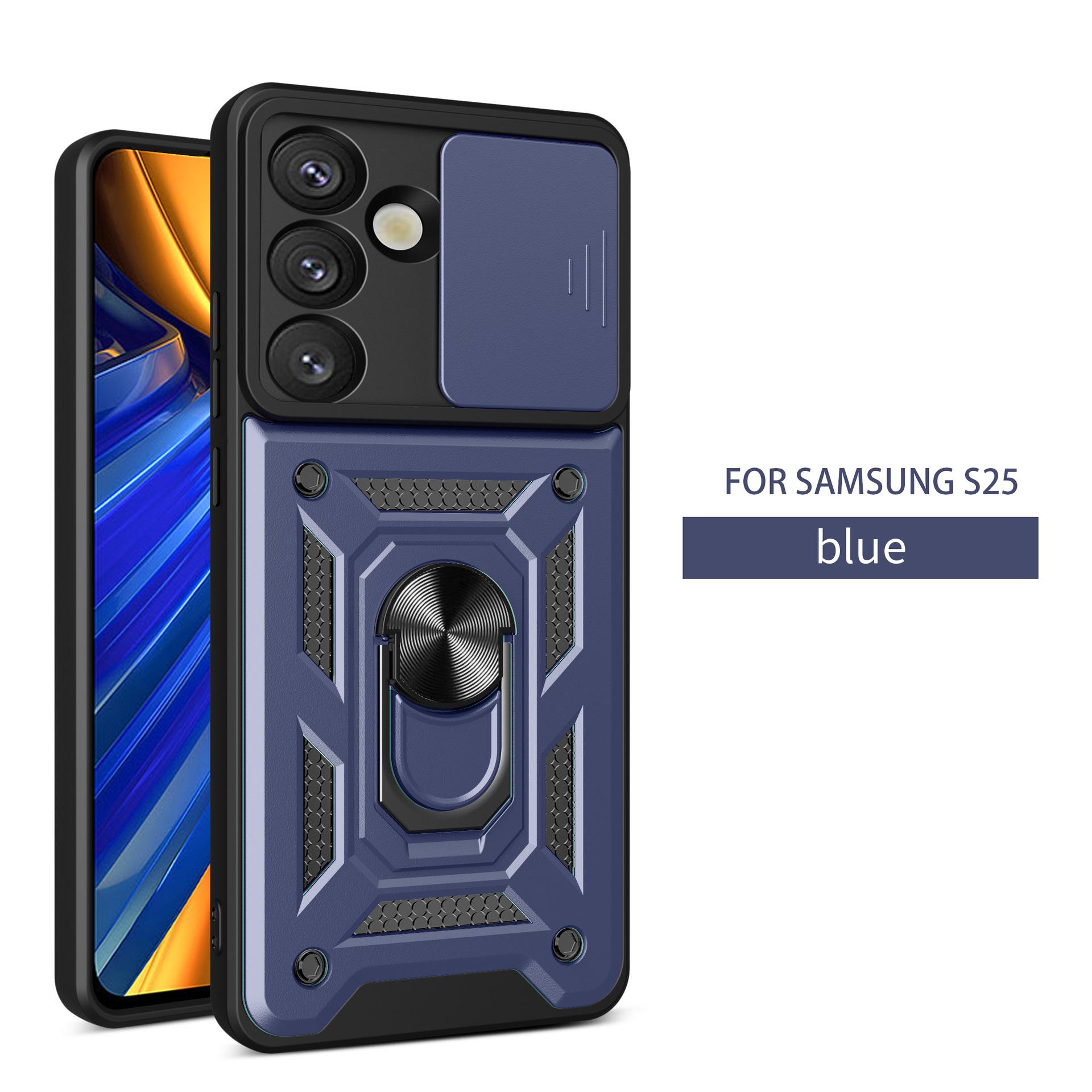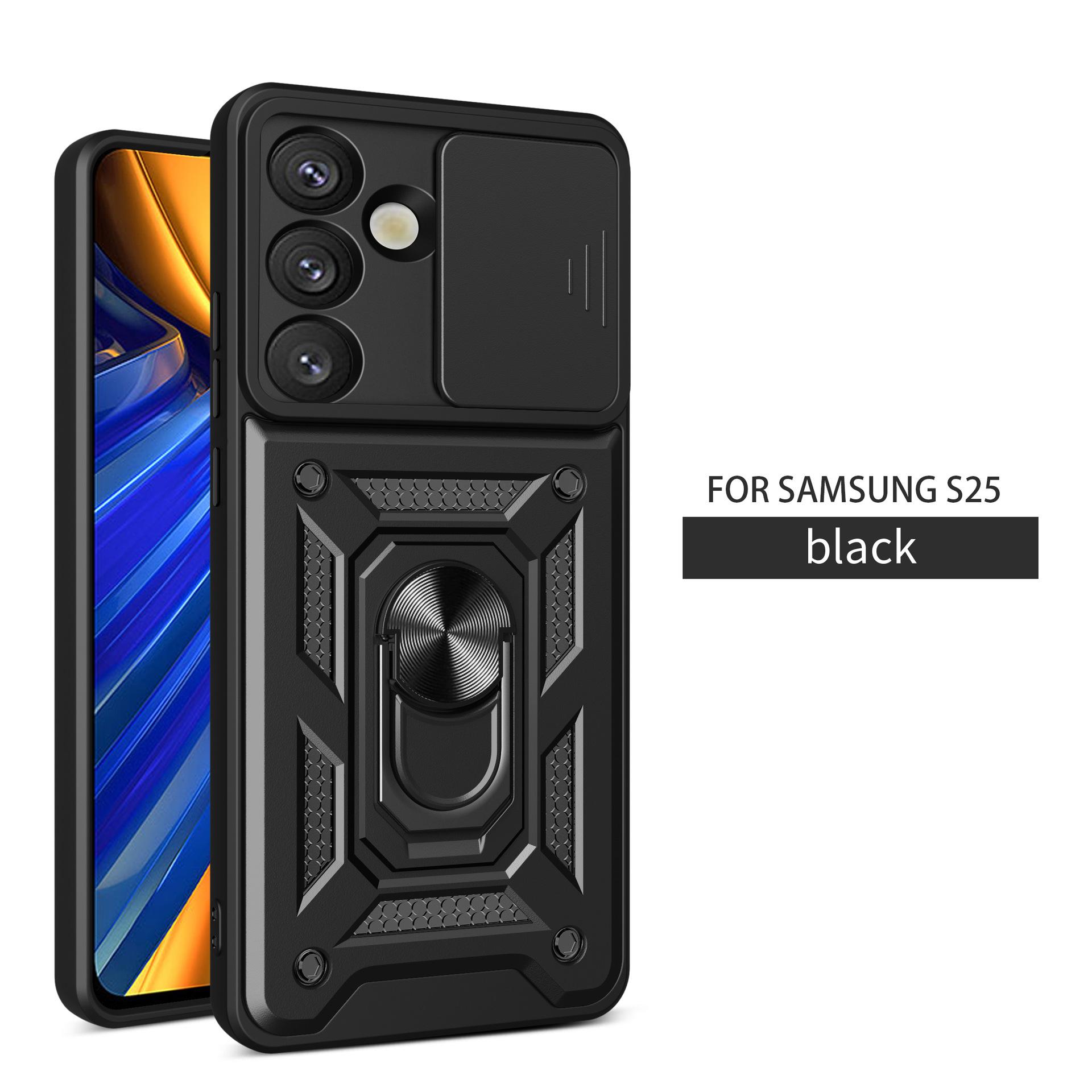 Adecuado para funda de teléfono móvil SAM S25 con ventana abatible, funda de teléfono móvil anticaída de TPU PC, carga por atracción magnética, soporte de anillo para dedo