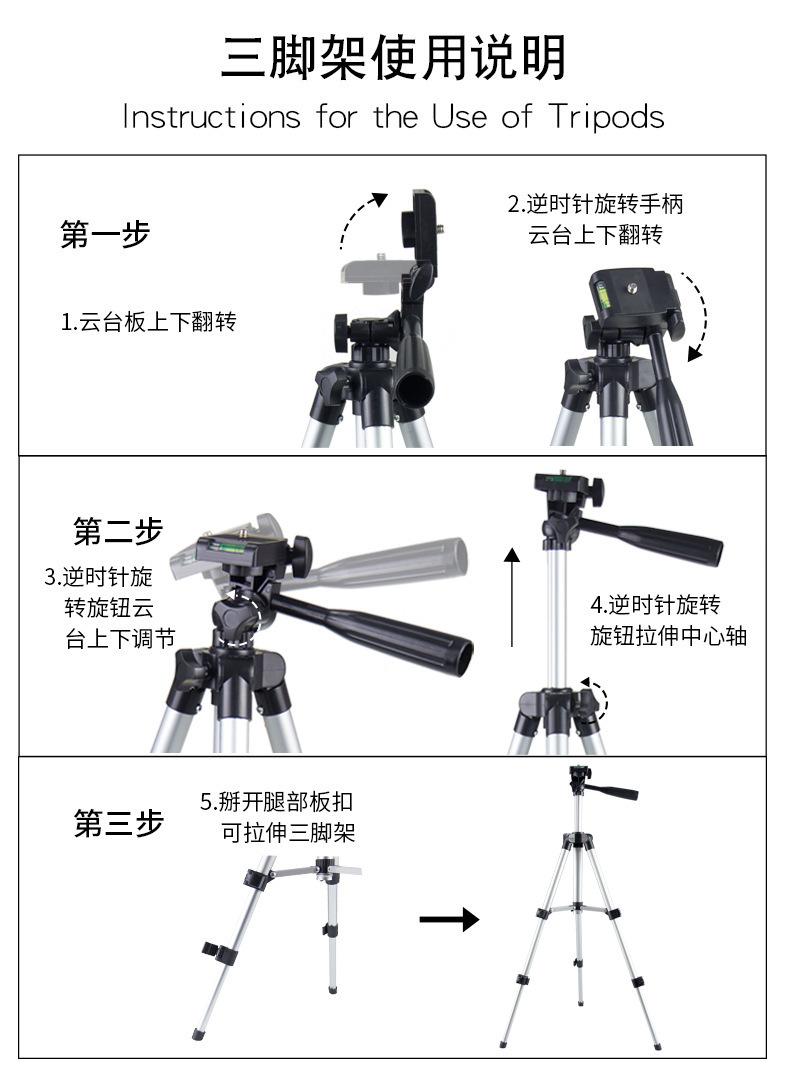 Trípode de aleación de aluminio 3110 cámara teléfono móvil soporte para fotografía en vivo lámpara de pesca soporte para proyector