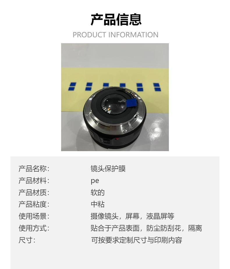 Película transparente de PE para lente de cámara con mango azul cámara digital autoadhesiva adsorción transporte película protectora resistente a los arañazos
