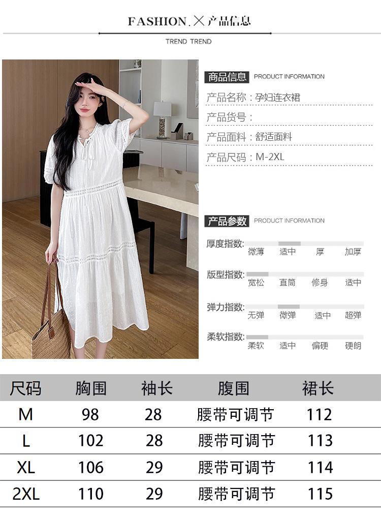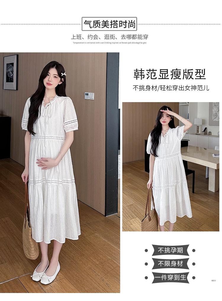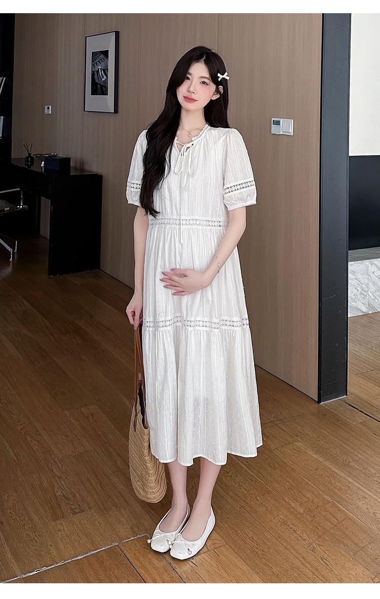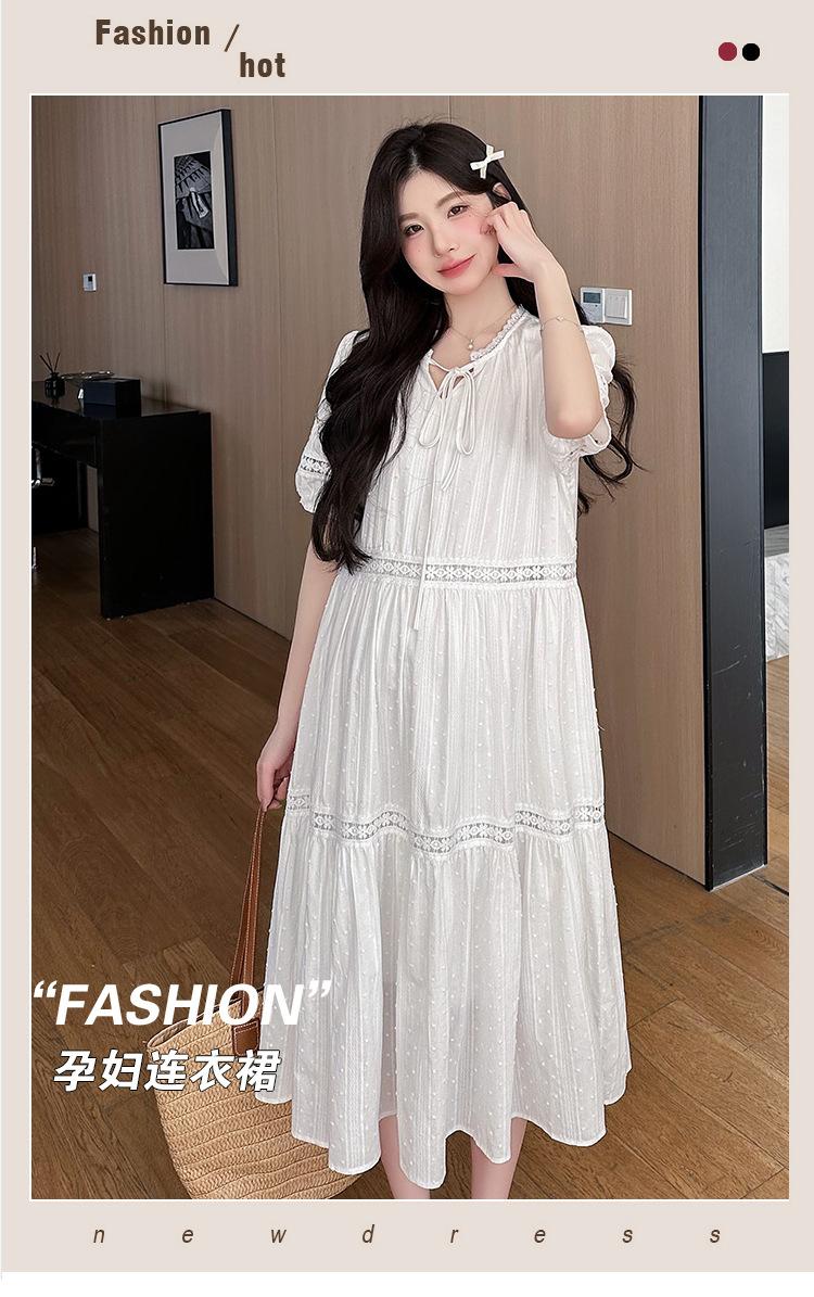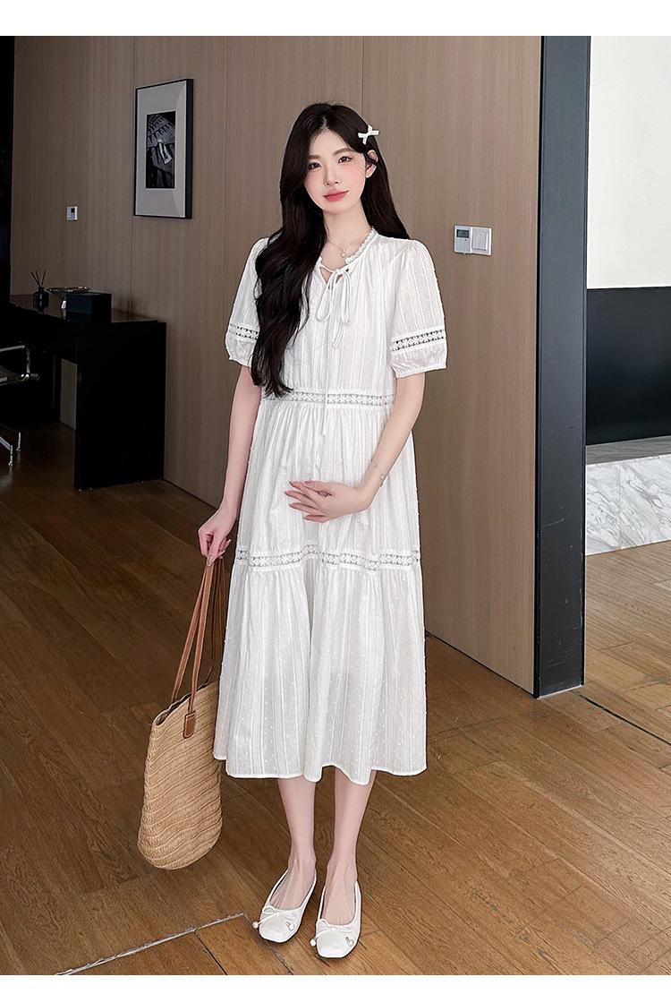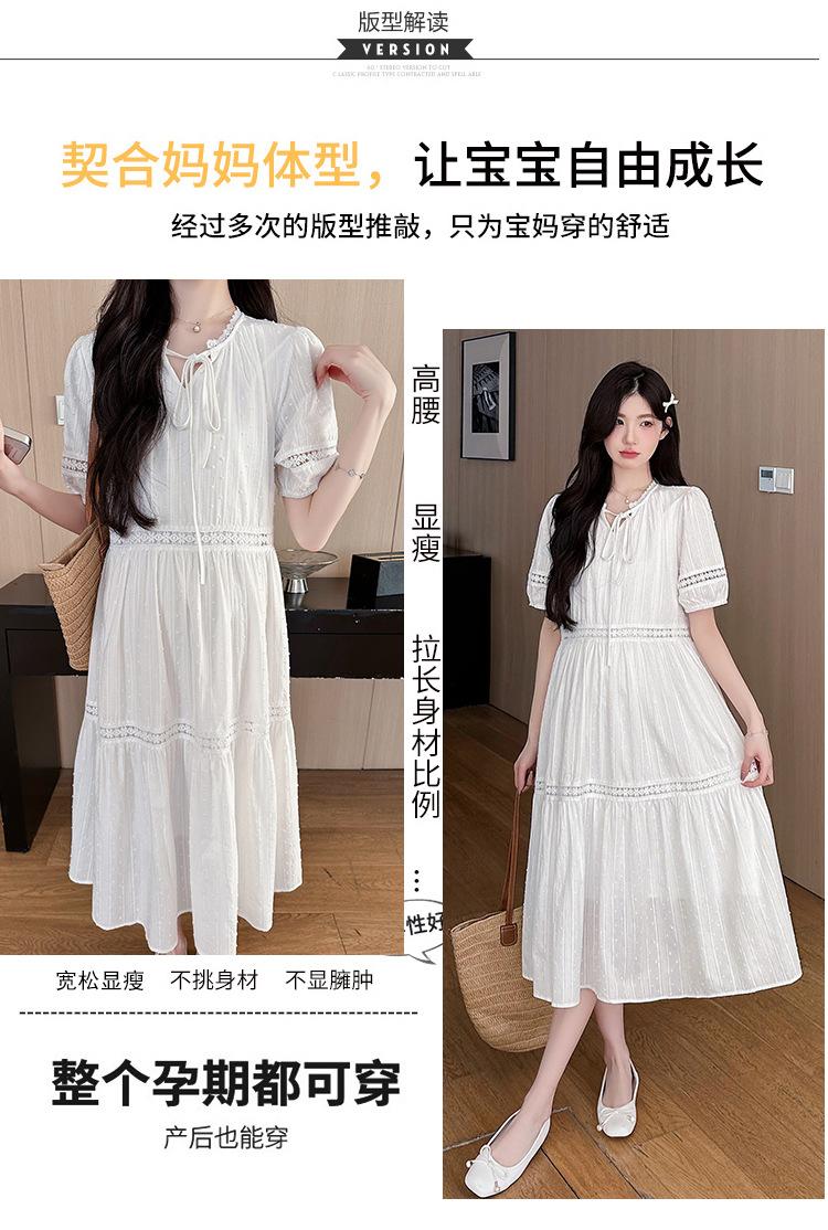 Ropa de Maternidad 2025 Verano Nuevo Dulce Francés Cuello en V Bordado Puntadas Encaje Vestido de Maternidad Holgado