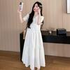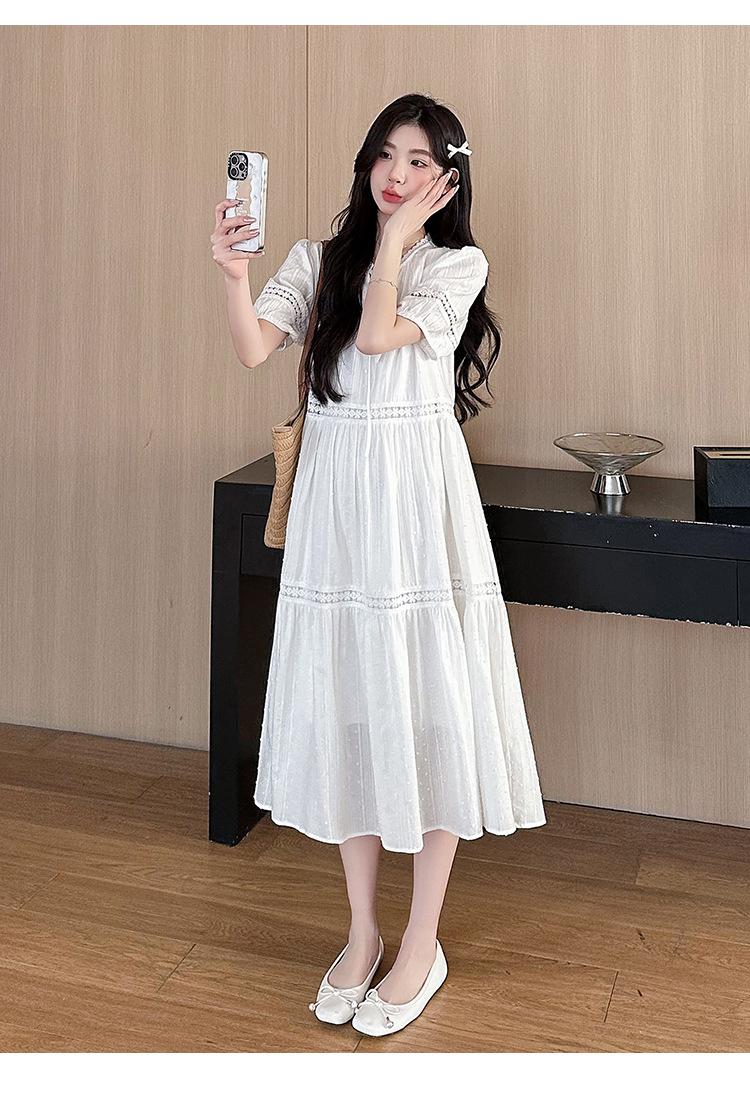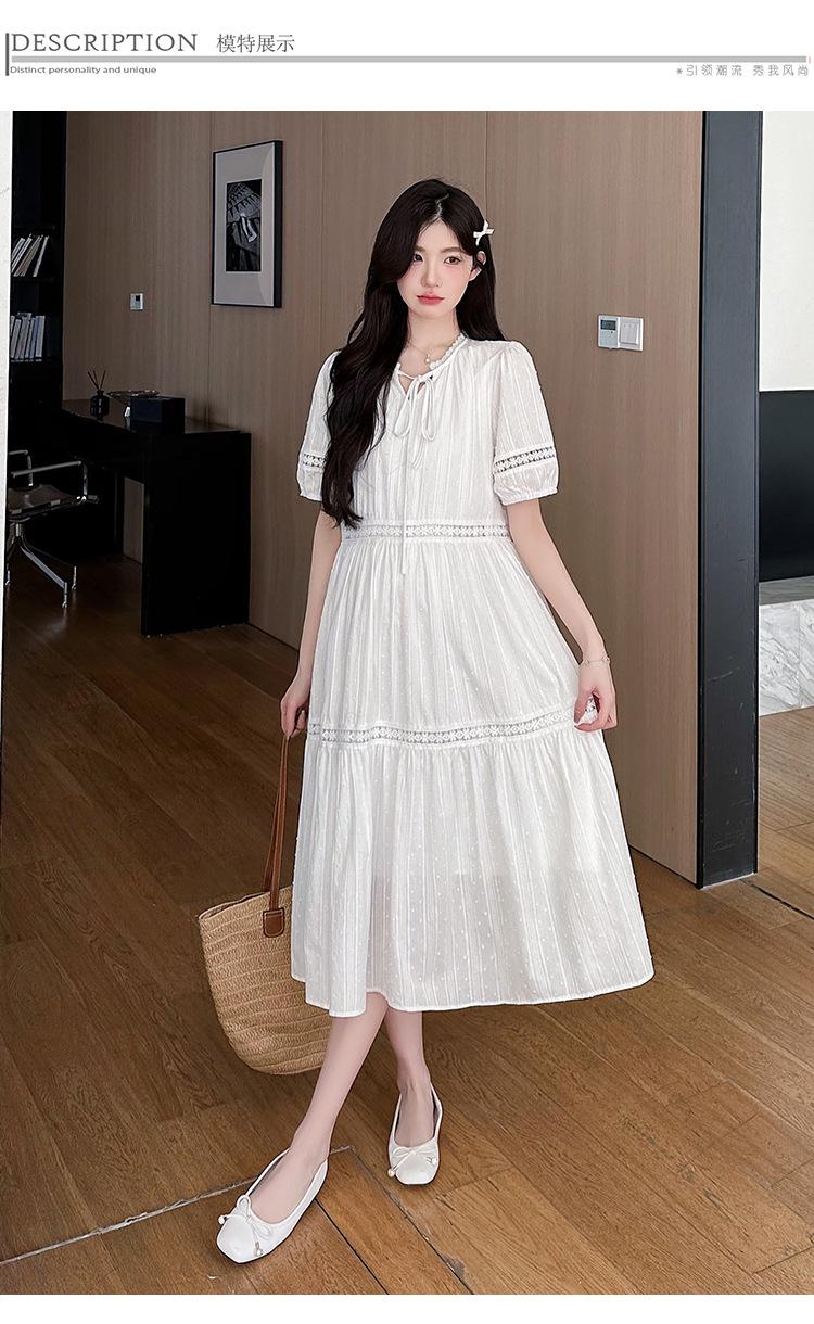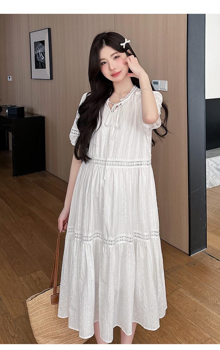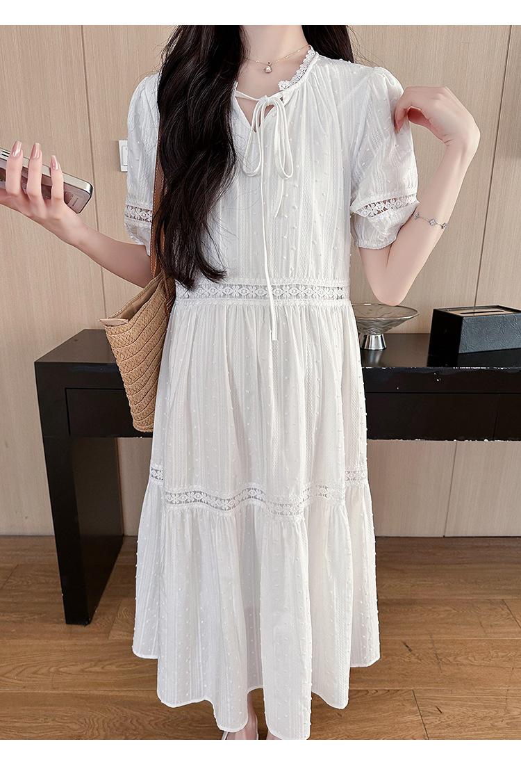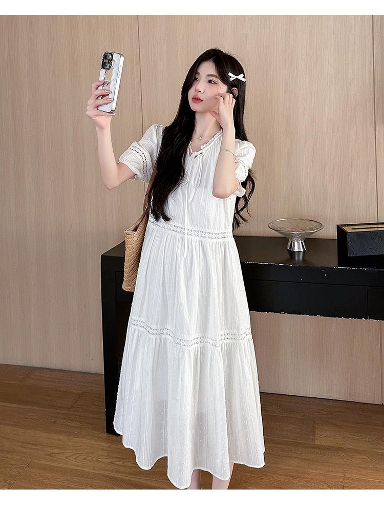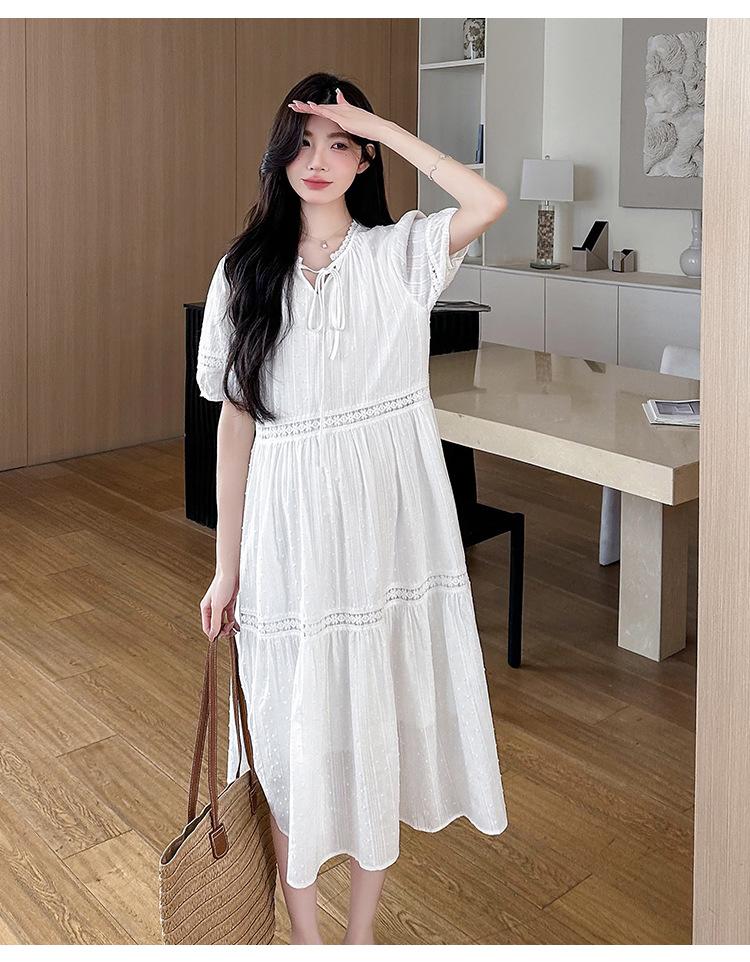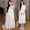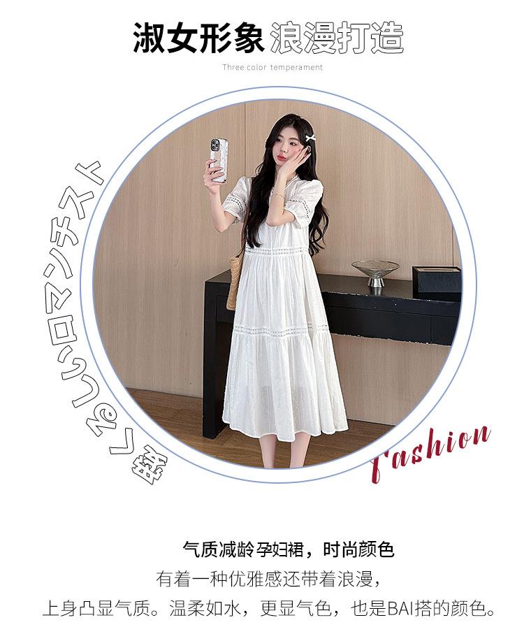 Ropa de Maternidad 2025 Verano Nuevo Dulce Francés Cuello en V Bordado Puntadas Encaje Vestido de Maternidad Holgado