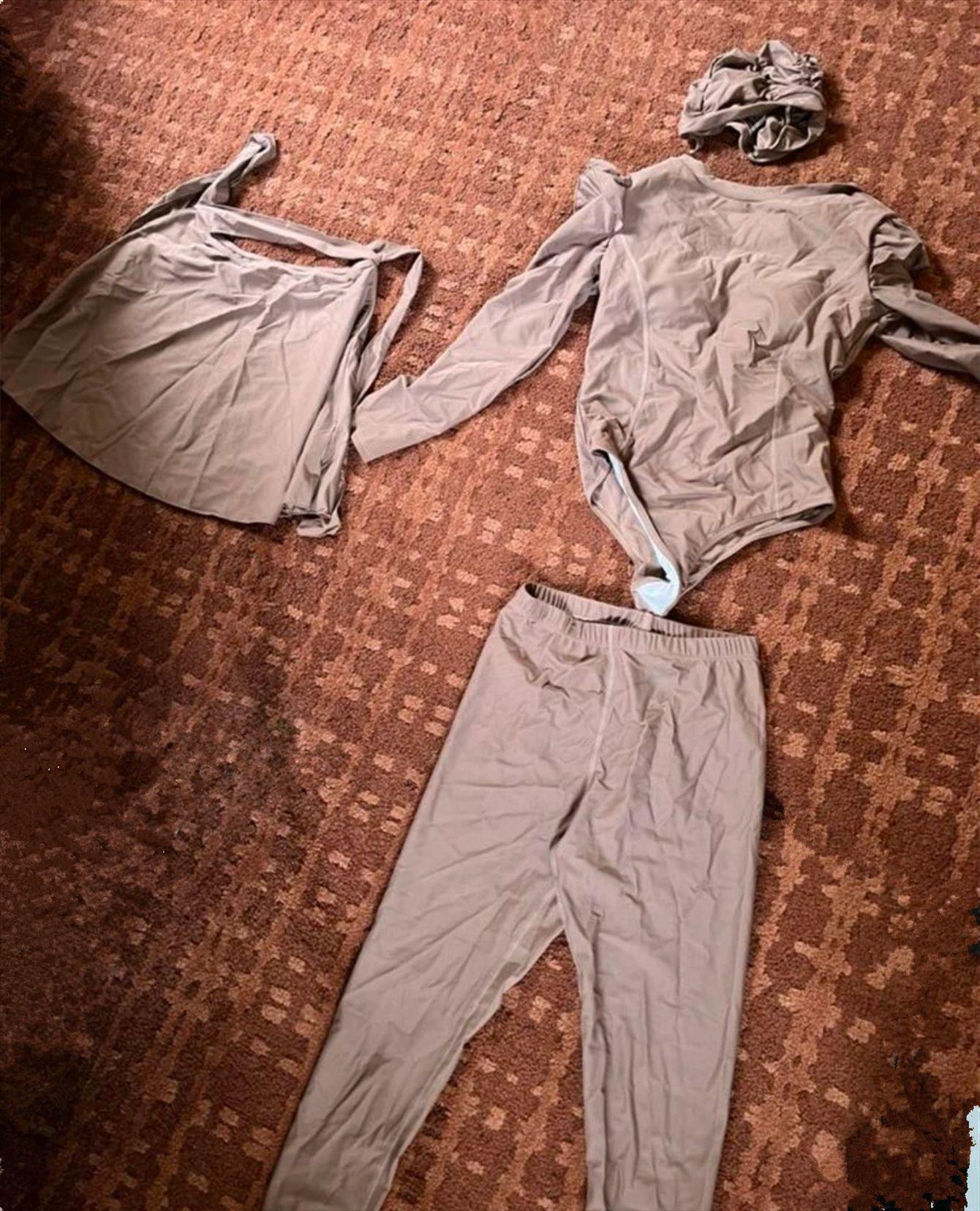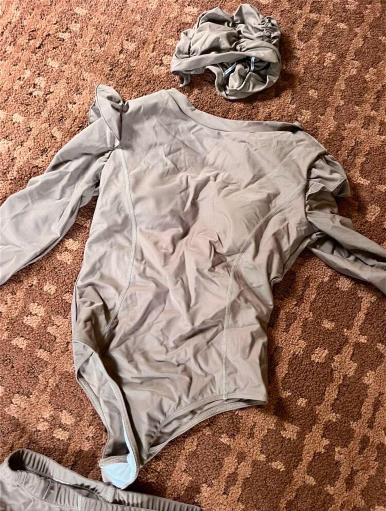 Conjunto de cuatro piezas: traje de baño de una pieza + pantalones + falda corta + gorro de natación