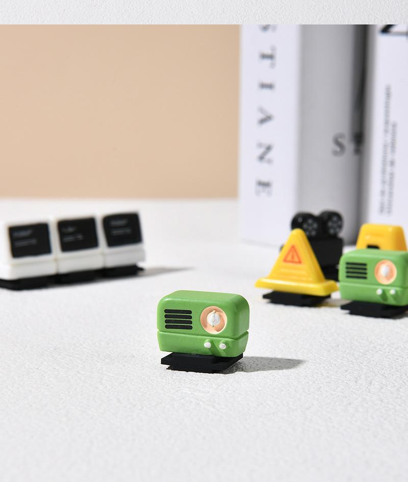 Radio, Computer, Projector, Stop sign, Yellow warning, Road cone